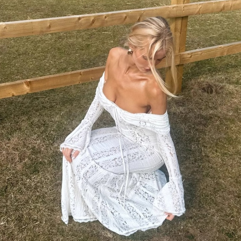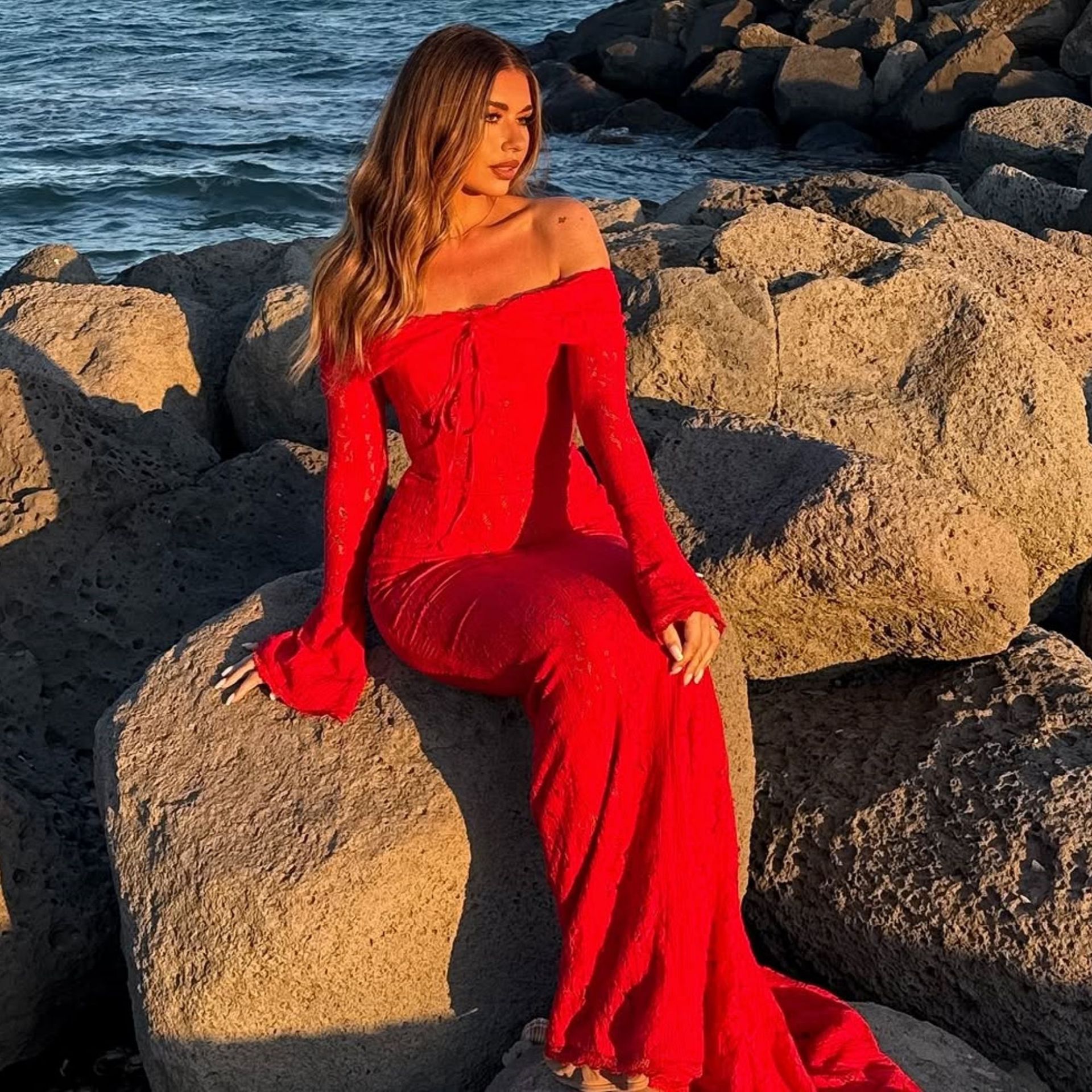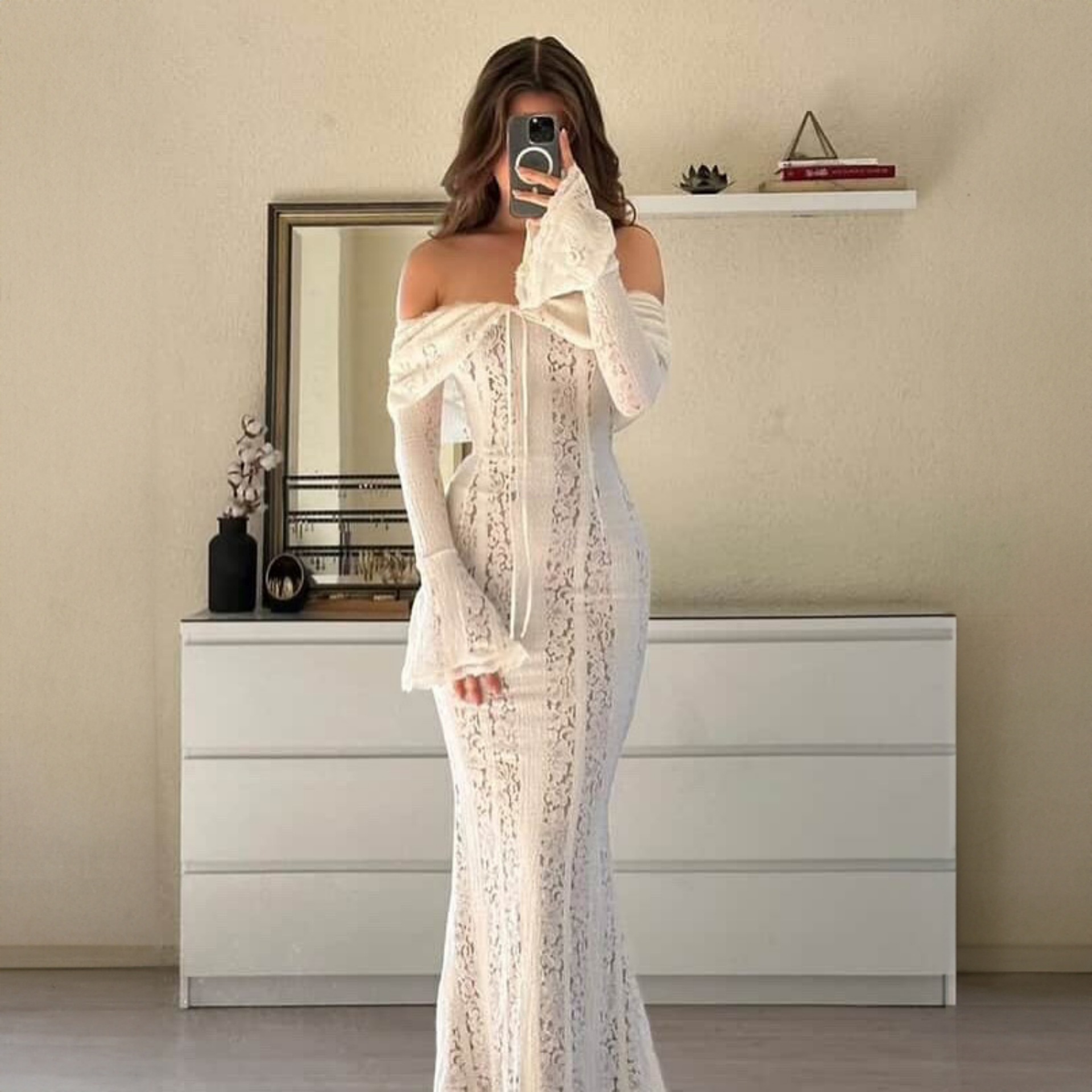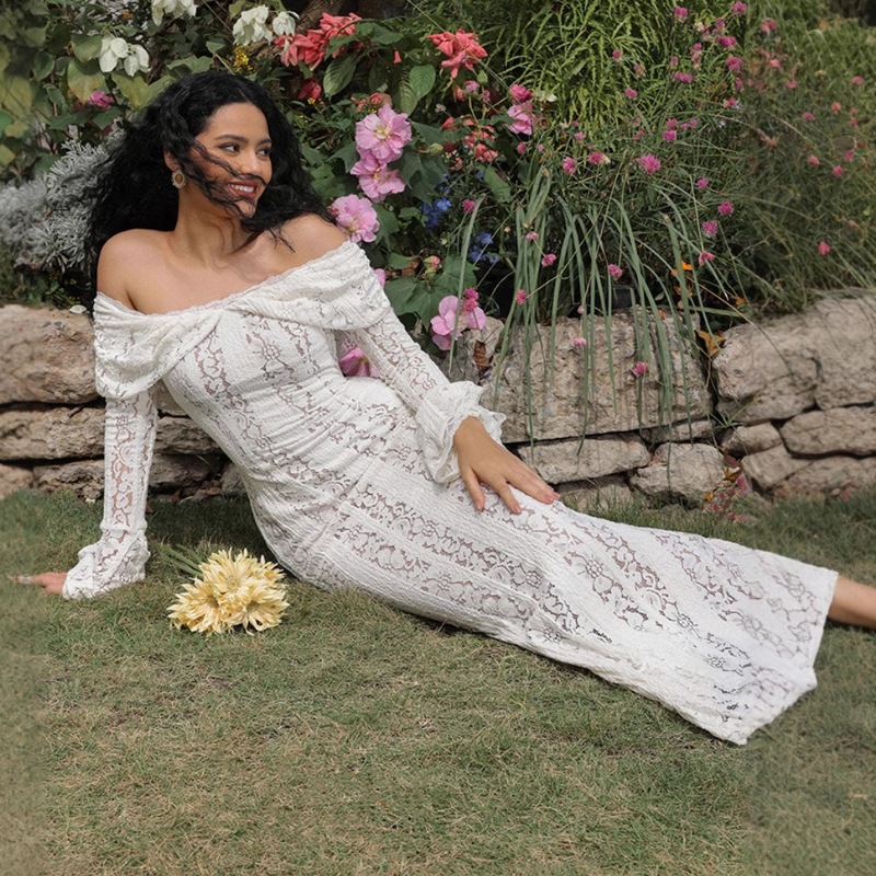 Copy| Product Name | Women Autumn Lace Off Shoulder Long-Sleeved Strapless Bodycon Dress |