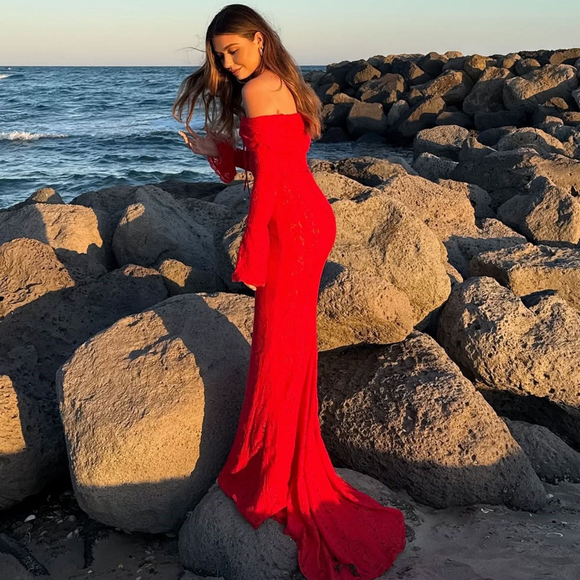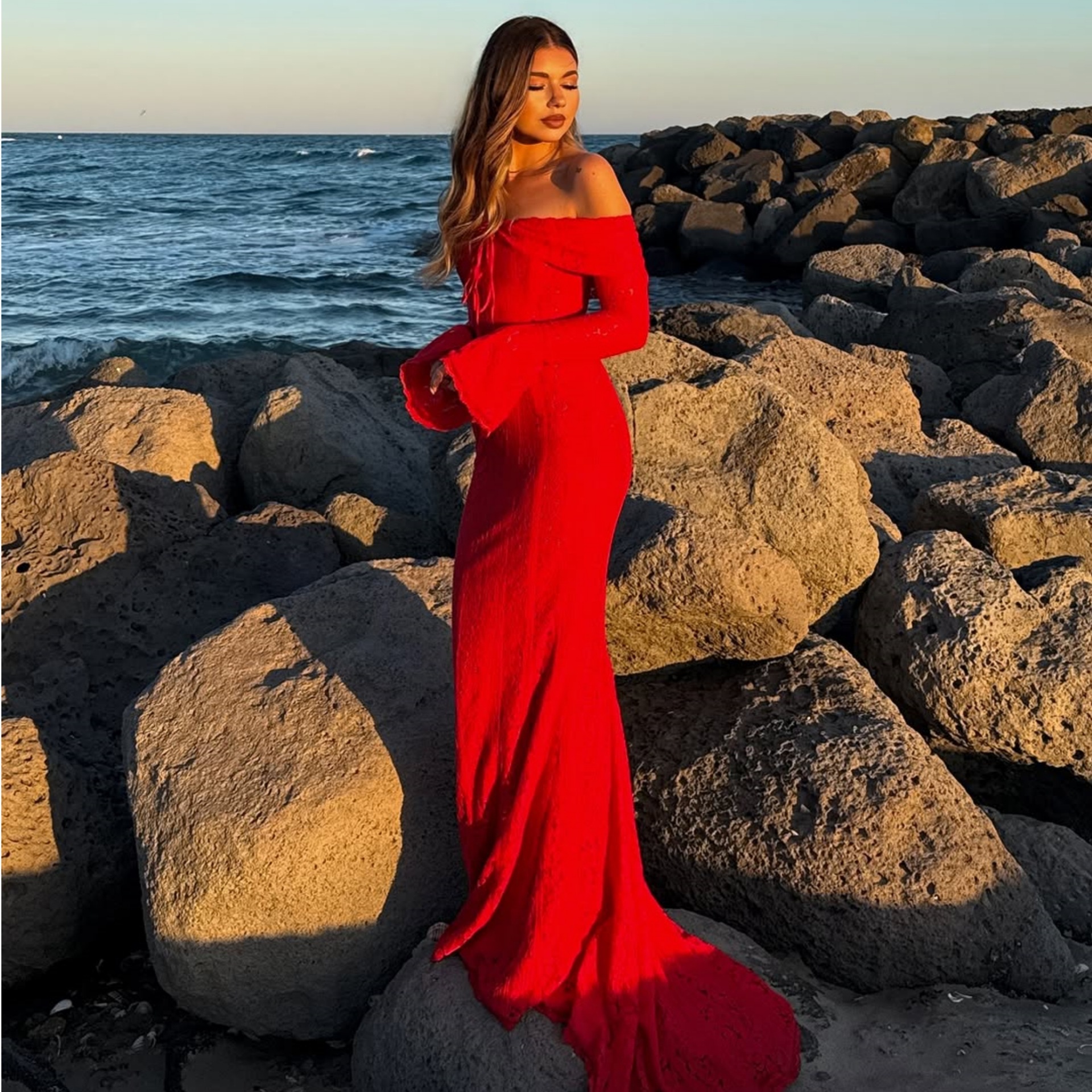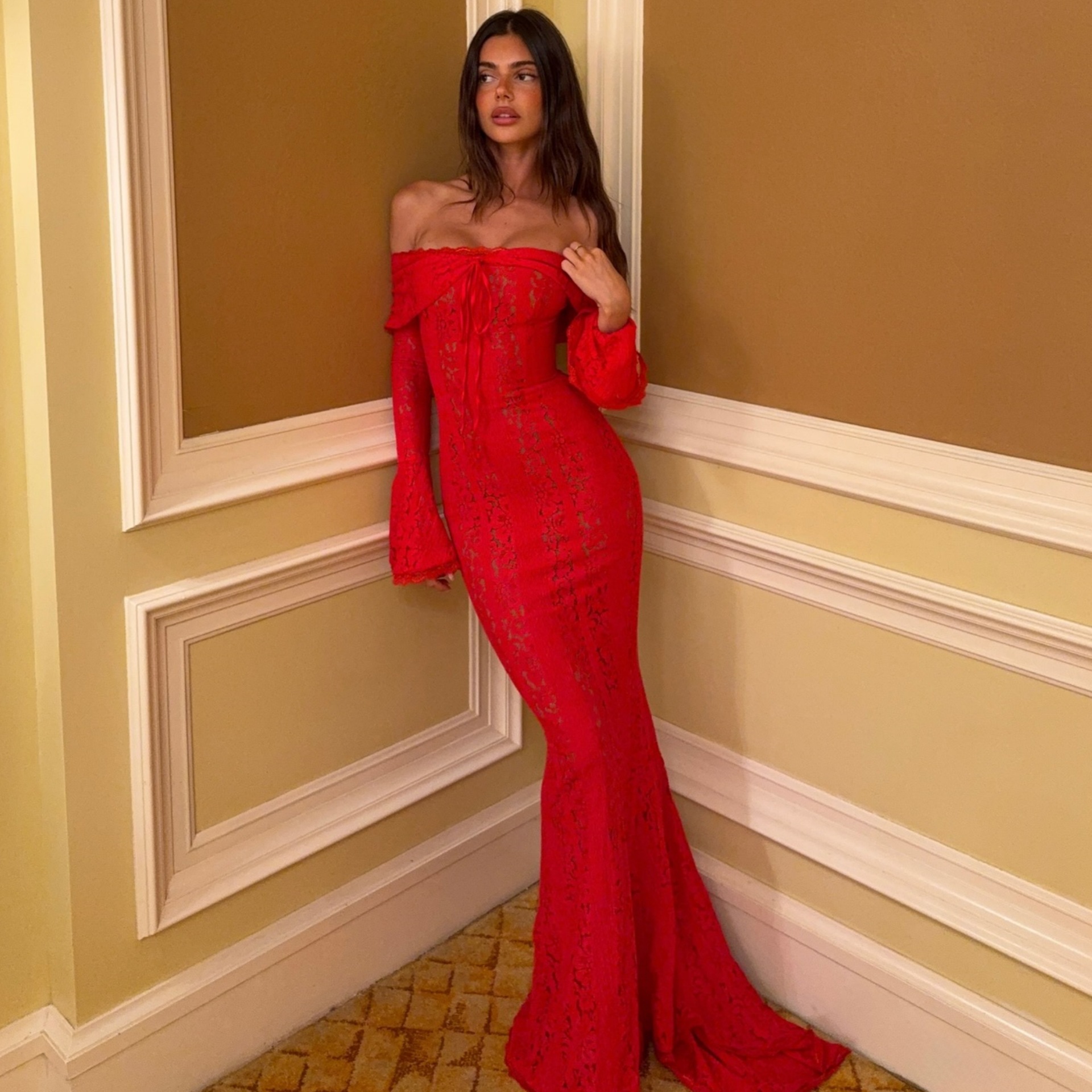 This Women Autumn Lace Off Shoulder Long-Sleeved Strapless Bodycon Dress Design Made Of Good Quality Polyster And Spandex Material, Which Is Stretchy, Durable And Comfortable. The Long Evening Dresses And Gowns Is Always The Mainly Choice For All Kinds Of Parties, Cocktail, Prom, Events, And Dating Occasions. Evening Gowns At Global Lover Comes With Huge Selections - Sequins, Beaded, Satin, Velvet, Lace.... When You Need Wholesale Evening Dresses, Global Lover Wholesale Women Garment Online Shop Is Your One-Stop Online Shopping Choice.