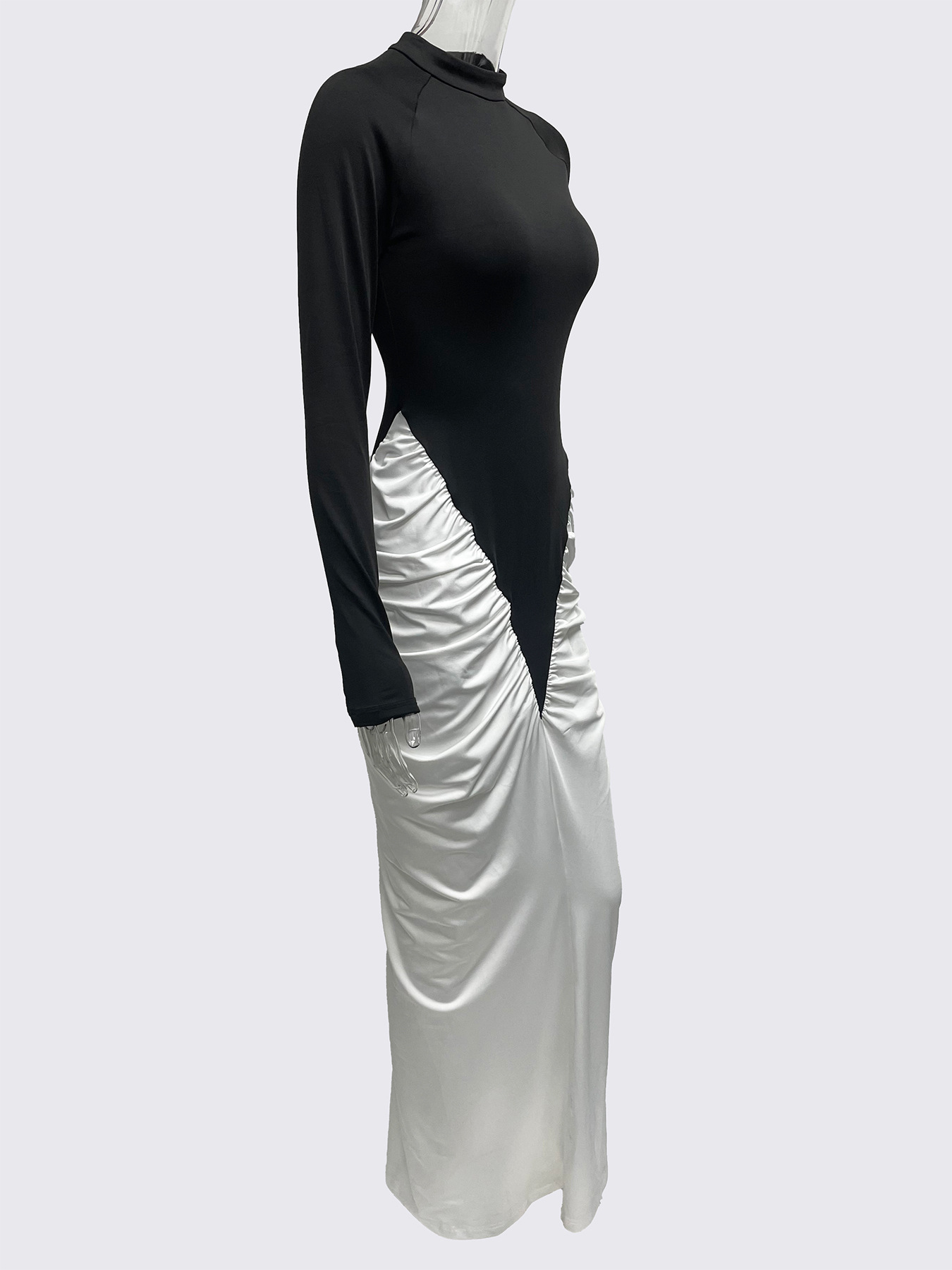 Copy| Product Name | Women Autumn Pleated Color-Blocked Long-Sleeved Bodycon Dress |