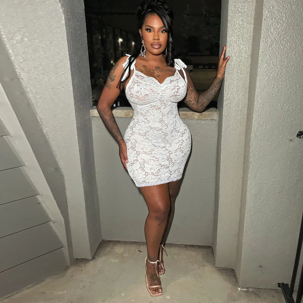 Copy| Product Name | Women Autumn Sexy See-Through Lace-Up Strap Tight-Fitting Bodycon Dress |