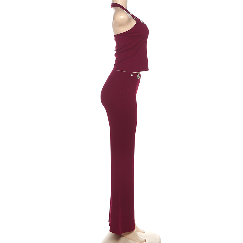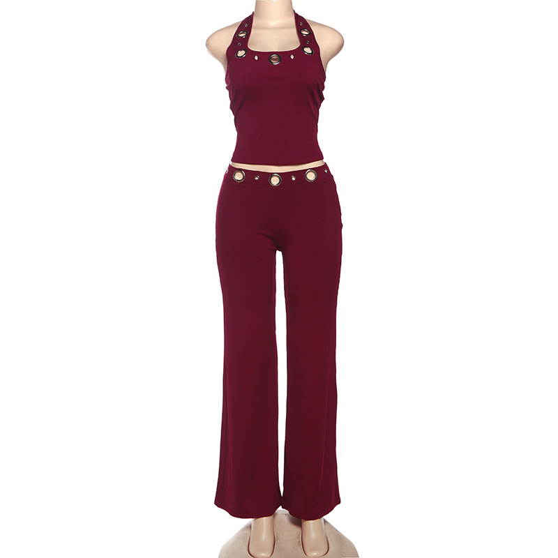 Copy| Product Name | Women Autumn Sleeveless Halter Neck Top and Pants Two-Piece Set |