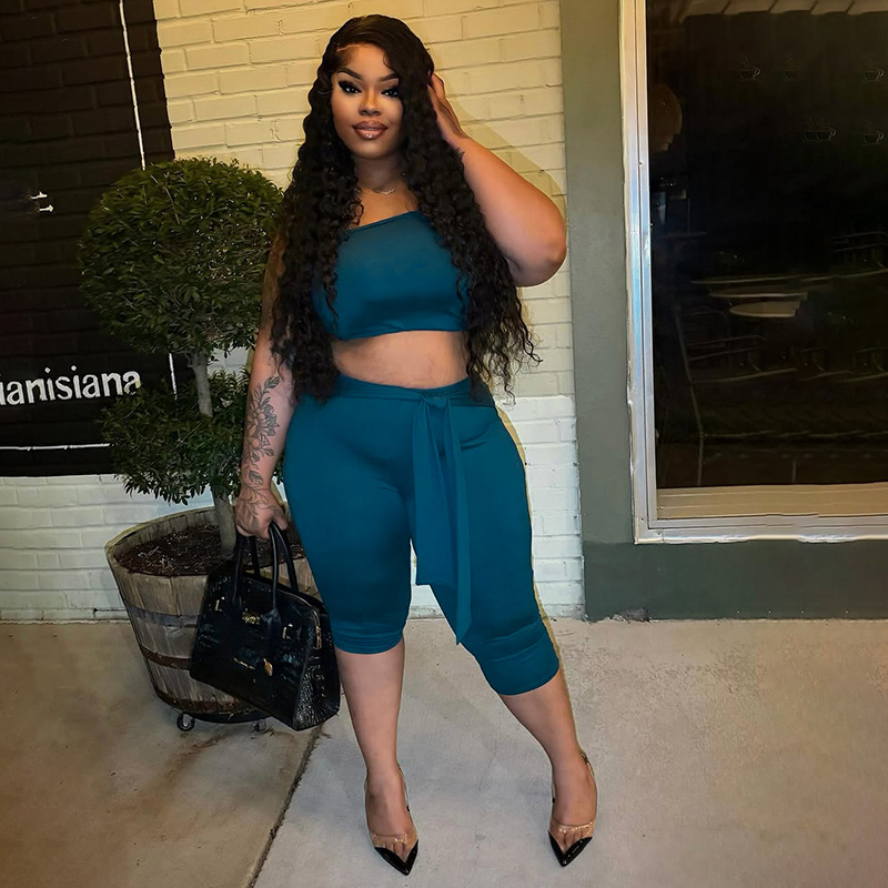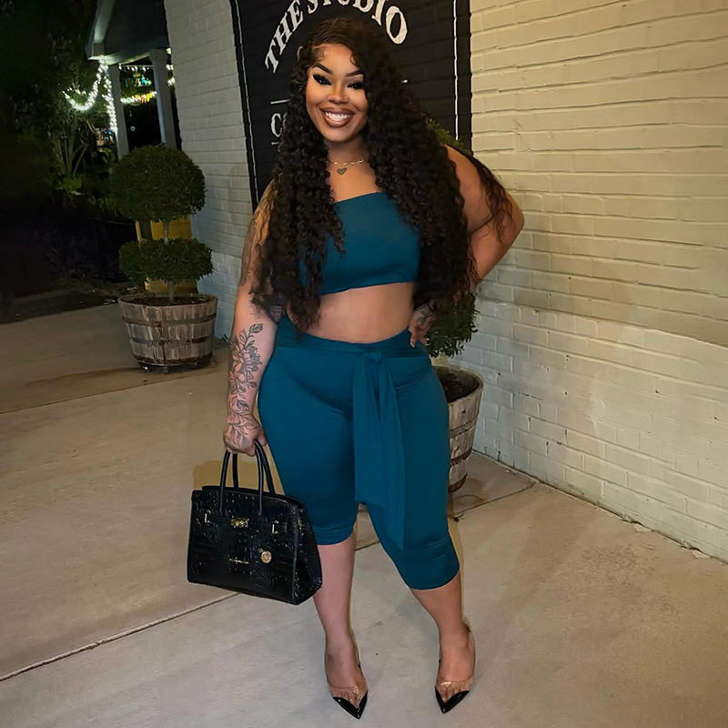 This Women Autumn Strapless Crop Top Solid Tie-Up Ribbon Capri Pants Two-Piece Set Design Made Of High Quality Polyster And Spandex Material. It Is Stretchy, Durable And Comfortable. It Come With The Top And Shorts. Wholesale Short Sets Saves Some People From The Trouble Of Matching. And For Matchmakers It Is More Flexible Than One-Piece Outfit. Two Piece Short Set Can Be Worn Together Or Individually, Ladies Can Match Them According To Different Occasions. Grab Different Two Piece Short Sets For This Spring And Summer.