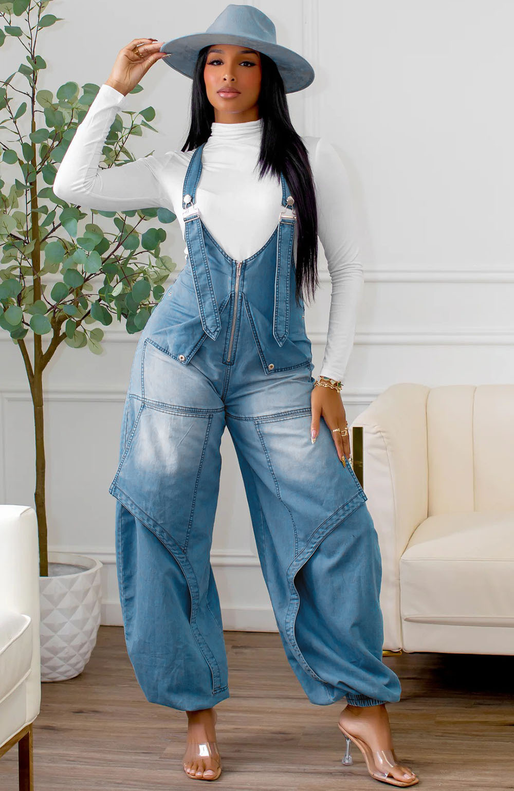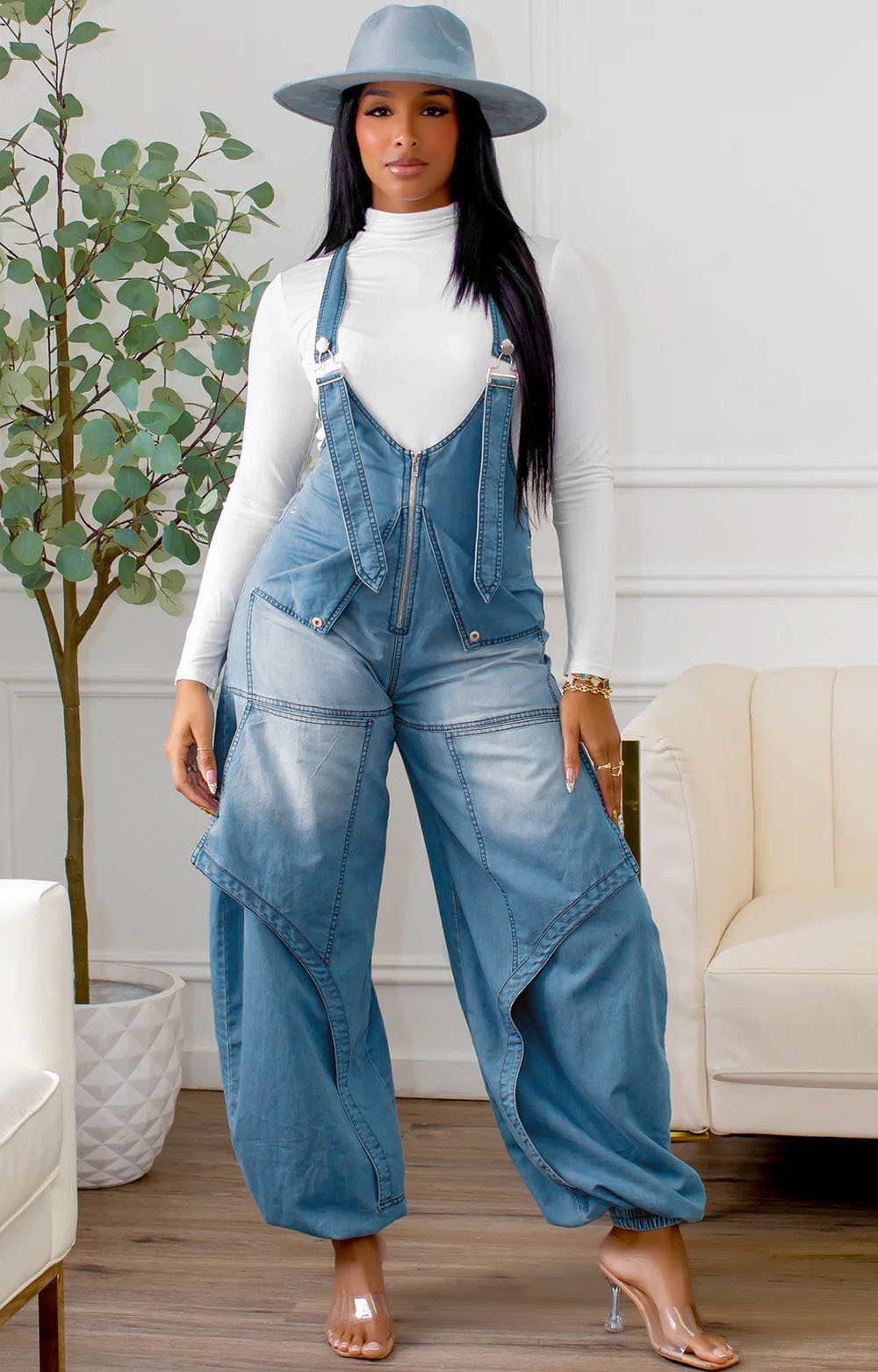 This Women Autumn/Winter Casual Zipper Wide-Leg Denim Overalls Design Made Of High Quality Polyster And Spandex Material. It Is Stretchy, Durable And Comfortable. Cheap Sexy Jumpsuits For Women Has Long Been a Party Favorite. Global Lover Provide a Rich Selction Of Sequin, Beaded, See Through Mesh, Leopard, Floral Lace, Leather, Velvet, Tight And Fitted Wholesale Jumpsuit Without Moq Limit.