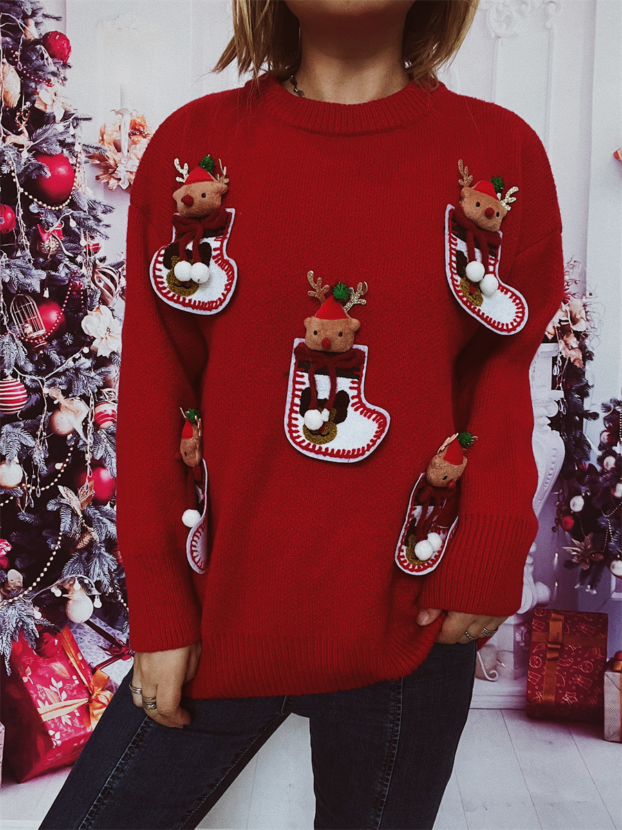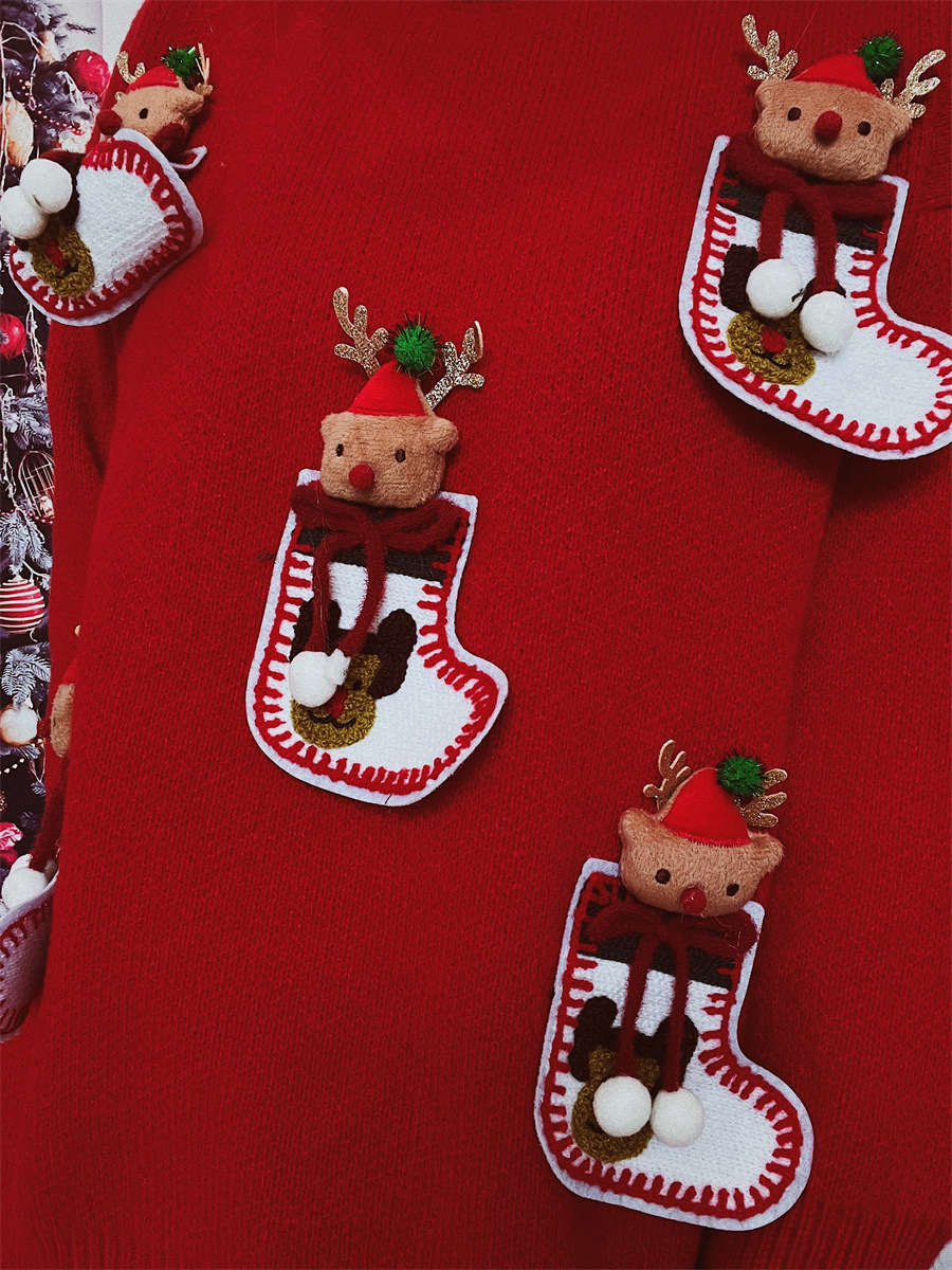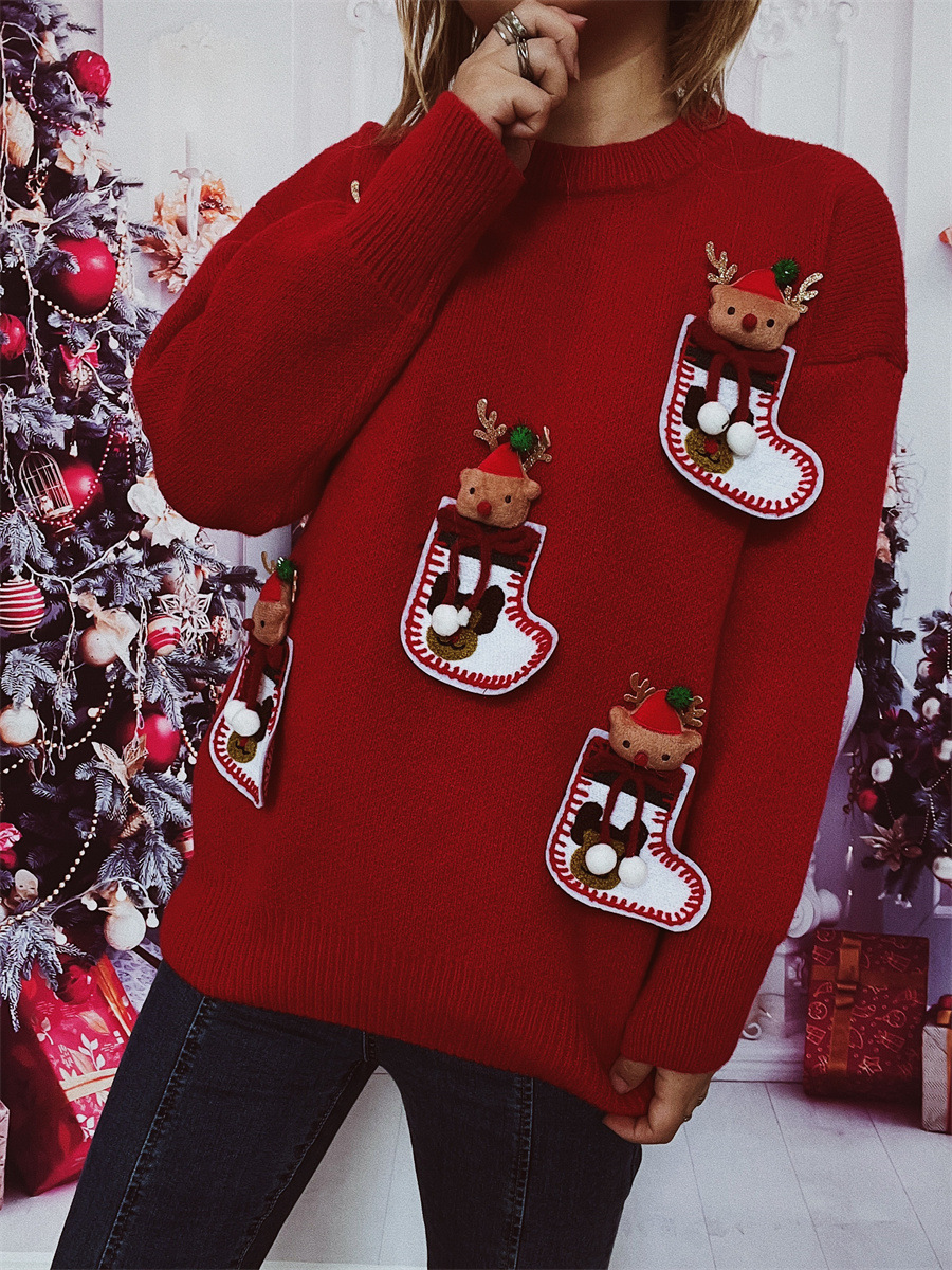 Copy| Product Name | Women Autumn/Winter Elk Christmas Stocking Sweaters |