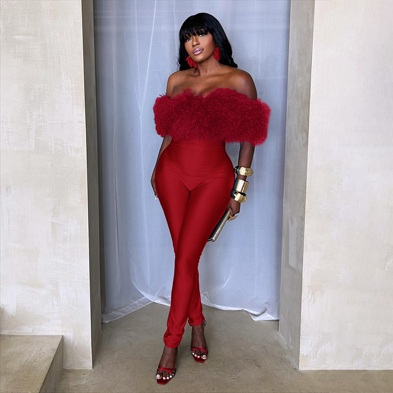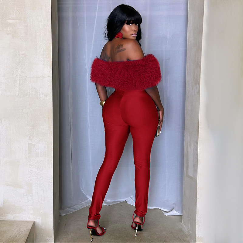 This Women Autumn/Winter Off-Shoulder Furry Collar Patchwork Sleeveless Stretchy Cropped Jumpsuit Design Made Of High Quality Polyster And Spandex Material. It Is Stretchy, Durable And Comfortable. Cheap Sexy Jumpsuits For Women Has Long Been a Party Favorite. Global Lover Provide a Rich Selction Of Sequin, Beaded, See Through Mesh, Leopard, Floral Lace, Leather, Velvet, Tight And Fitted Wholesale Jumpsuit Without Moq Limit.