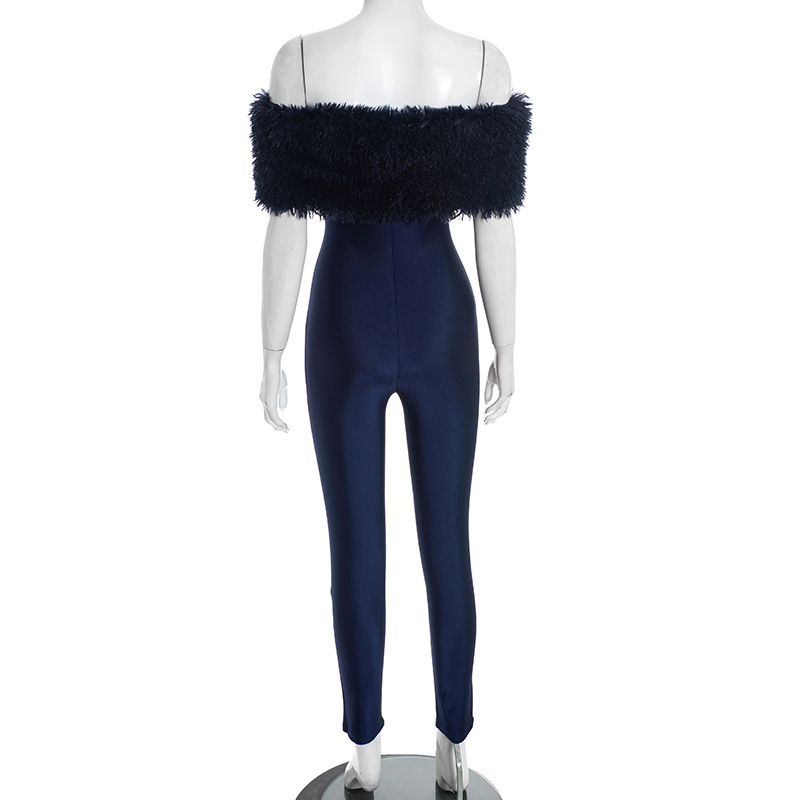 Copy| Product Name | Women Autumn/Winter Off-Shoulder Furry Collar Patchwork Sleeveless Stretchy Cropped Jumpsuit |