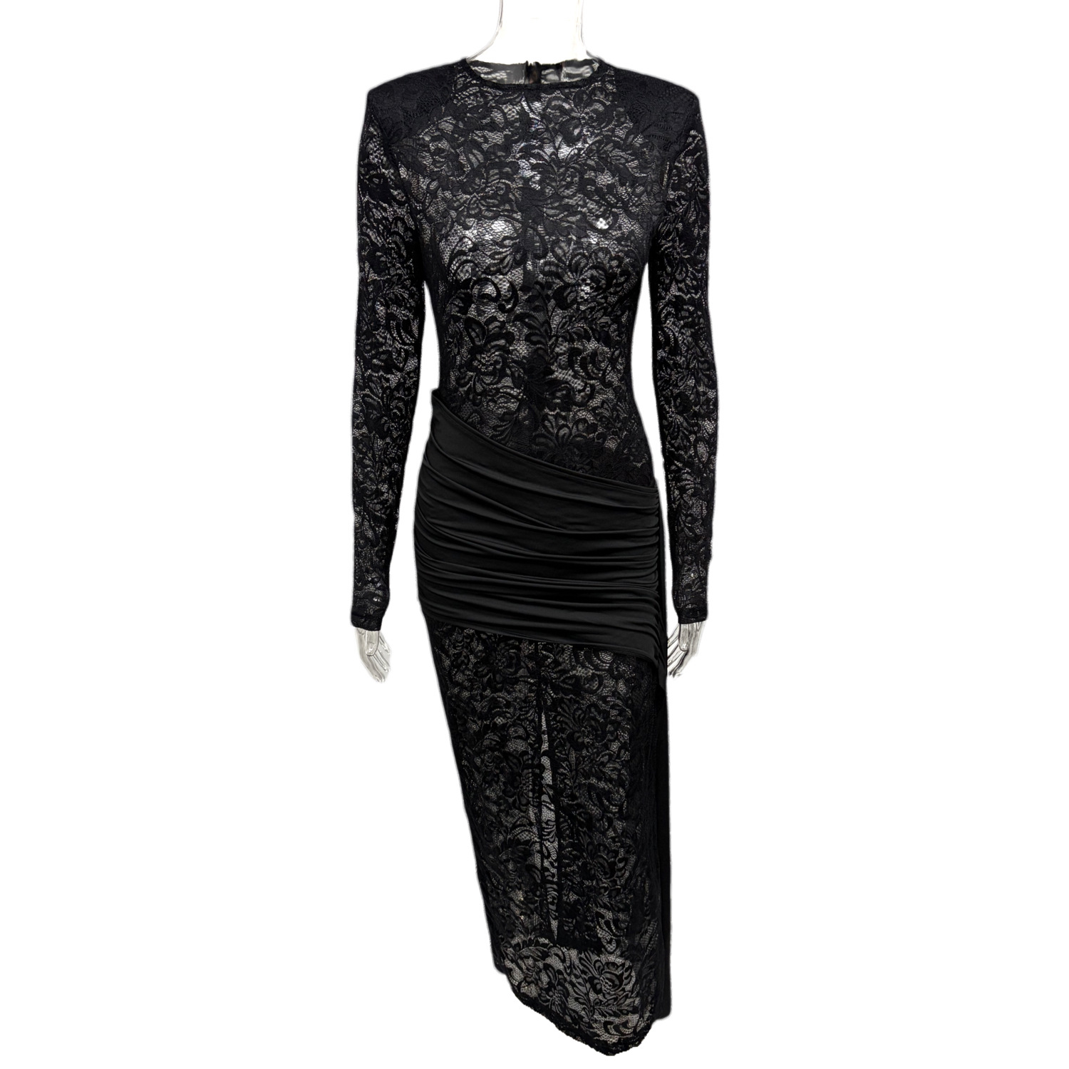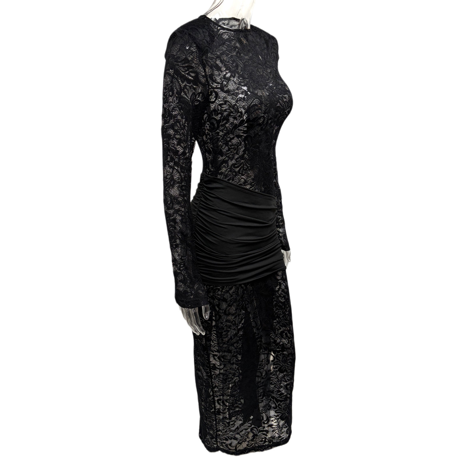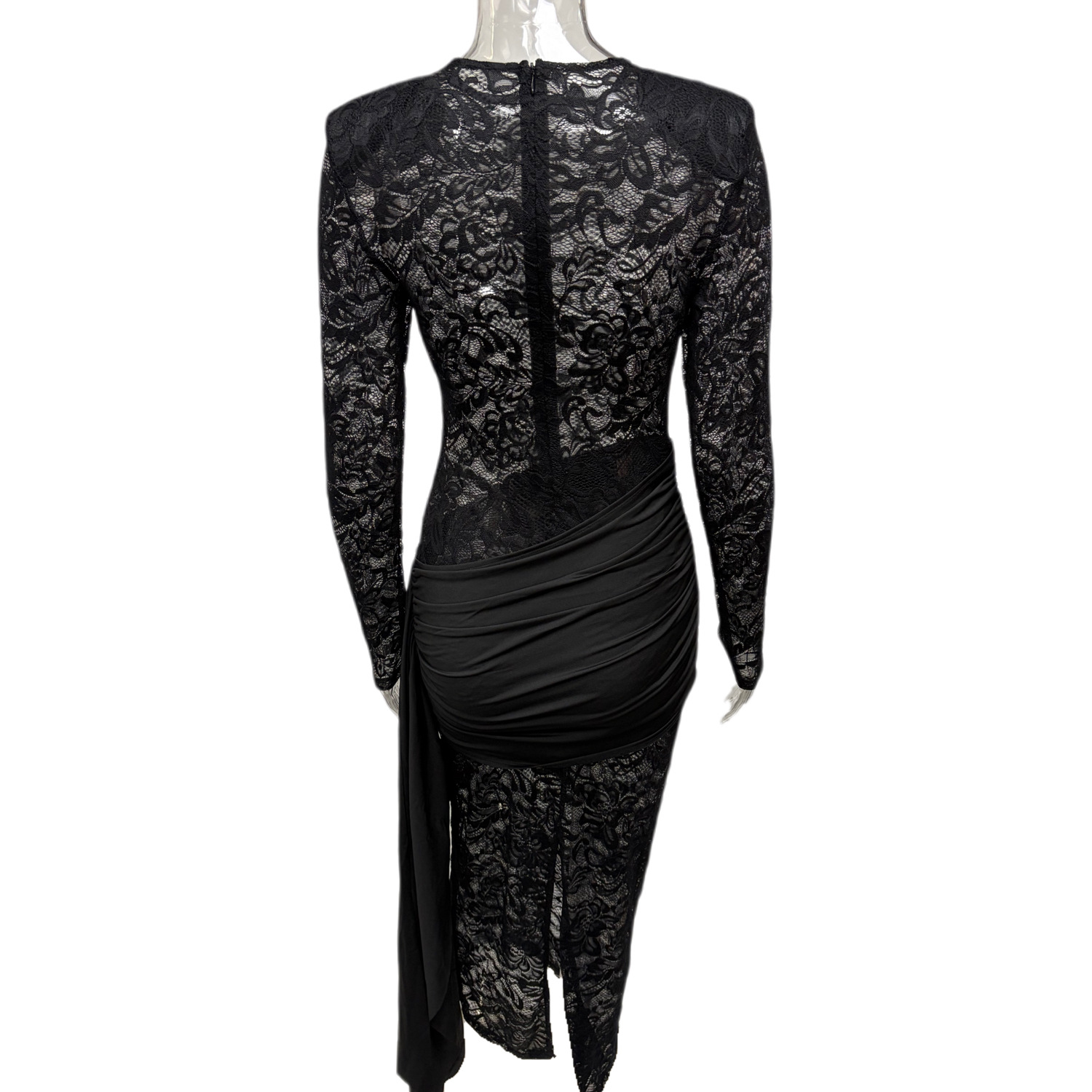 Copy| Product Name | Women Autumn/Winter Sexy Solid Round Neck Lace See-Through Long-Sleeved Bodycon Dress |