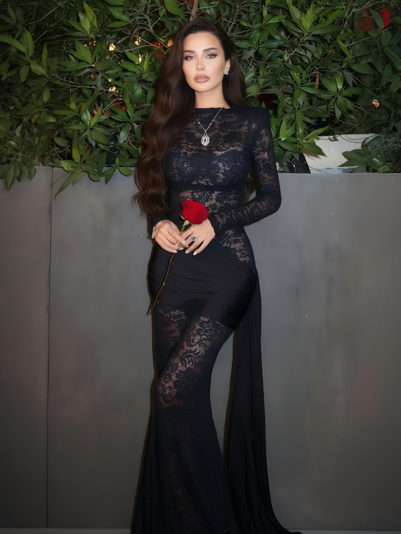 This Women Autumn/Winter Sexy Solid Round Neck Lace See-Through Long-Sleeved Bodycon Dress Design Made Of Good Quality Polyster And Spandex Material, Which Is Stretchy, Durable And Comfortable. The Long Evening Dresses And Gowns Is Always The Mainly Choice For All Kinds Of Parties, Cocktail, Prom, Events, And Dating Occasions. Evening Gowns At Global Lover Comes With Huge Selections - Sequins, Beaded, Satin, Velvet, Lace.... When You Need Wholesale Evening Dresses, Global Lover Wholesale Women Garment Online Shop Is Your One-Stop Online Shopping Choice.
