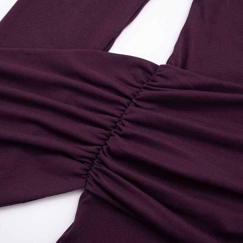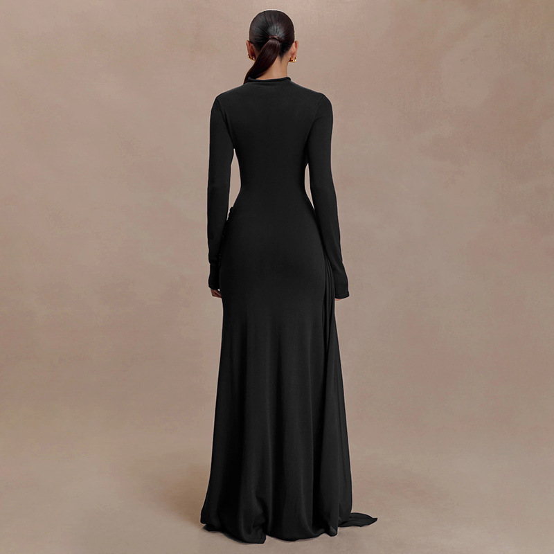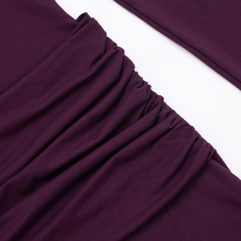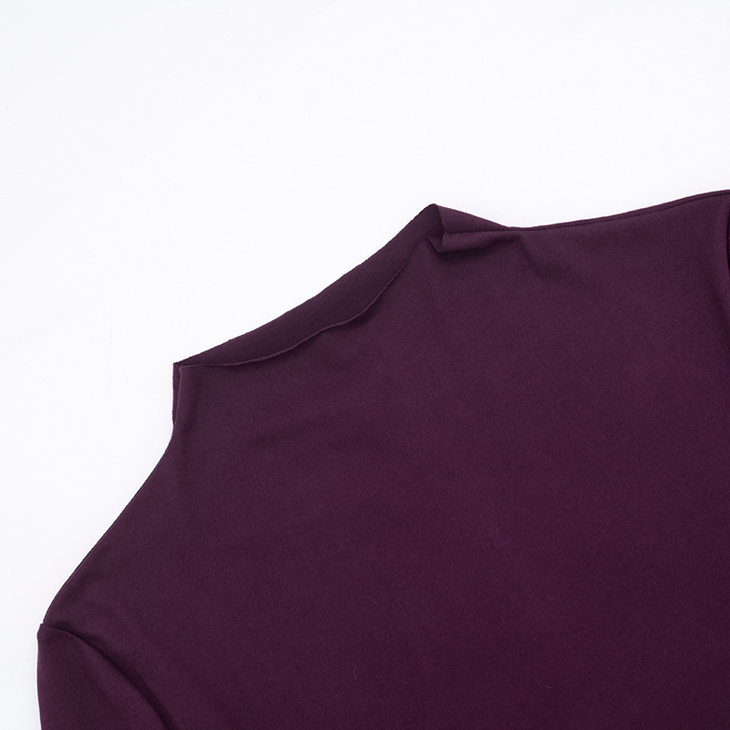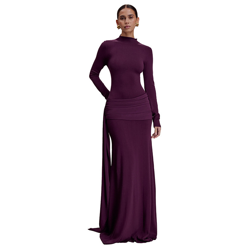 Copy| Product Name | Women Autumn/Winter Solid High-Neck Long-Sleeve Ribbon Gathered Bodycon Skirt |