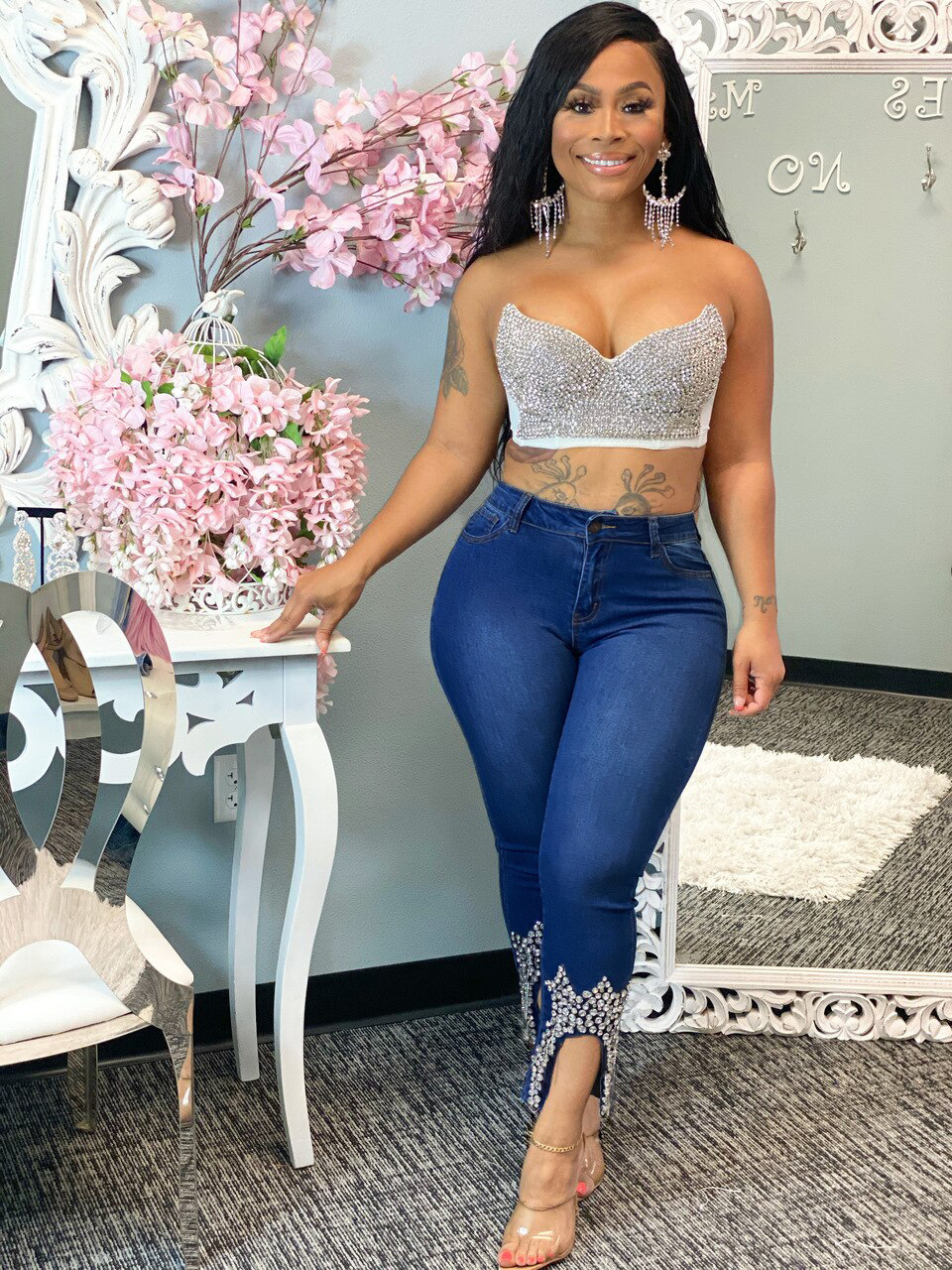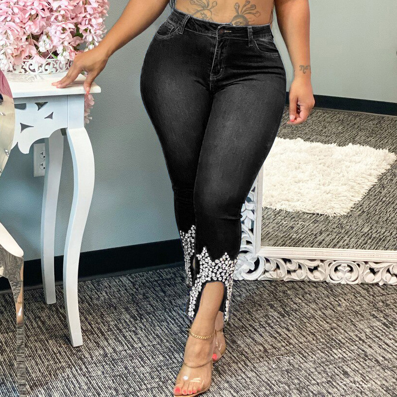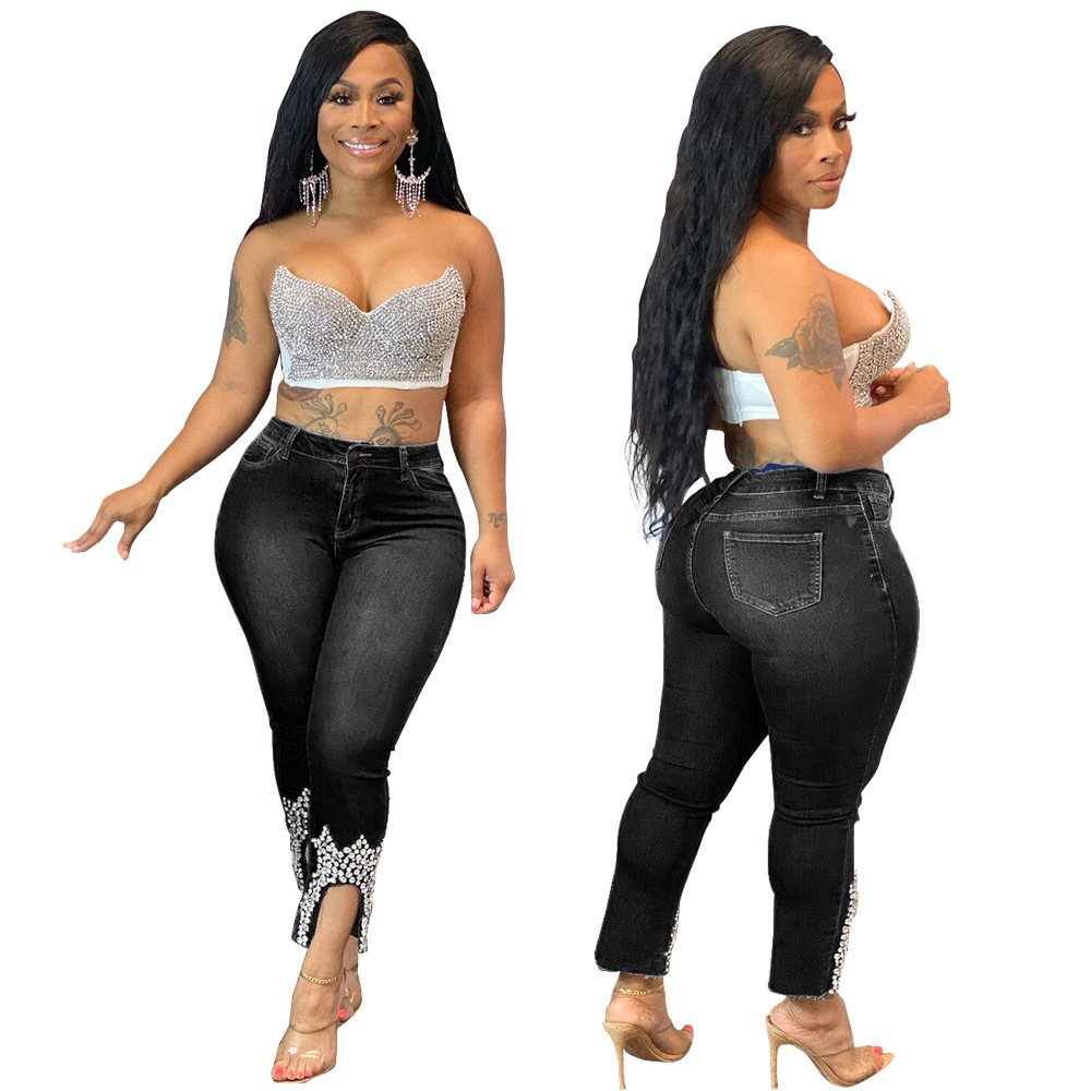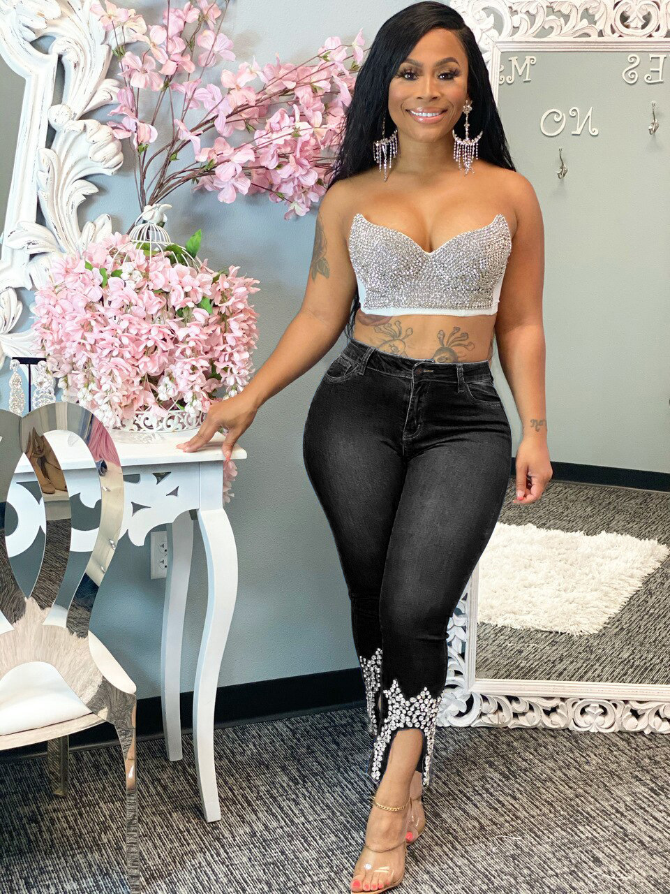 This Women Beaded Crown Denim Pants Design Made Of Durable And Stretchy Jeans Fabric. It Is a Must-Have Item For Daily Life. Trendy Wholesale Jeans Is a Indispensable Item For Everyday Fashion. Women’s Jeans With High Waist Is a Must Have Trousers That Lengthening Your Leg Lines And Tightening The Excess Flesh Of Your Waist. Grab a Must Have High Waist Jeans Wholesale For Your Closet, Just Choose Different Matching Tops To Control Every Occasion Easily.