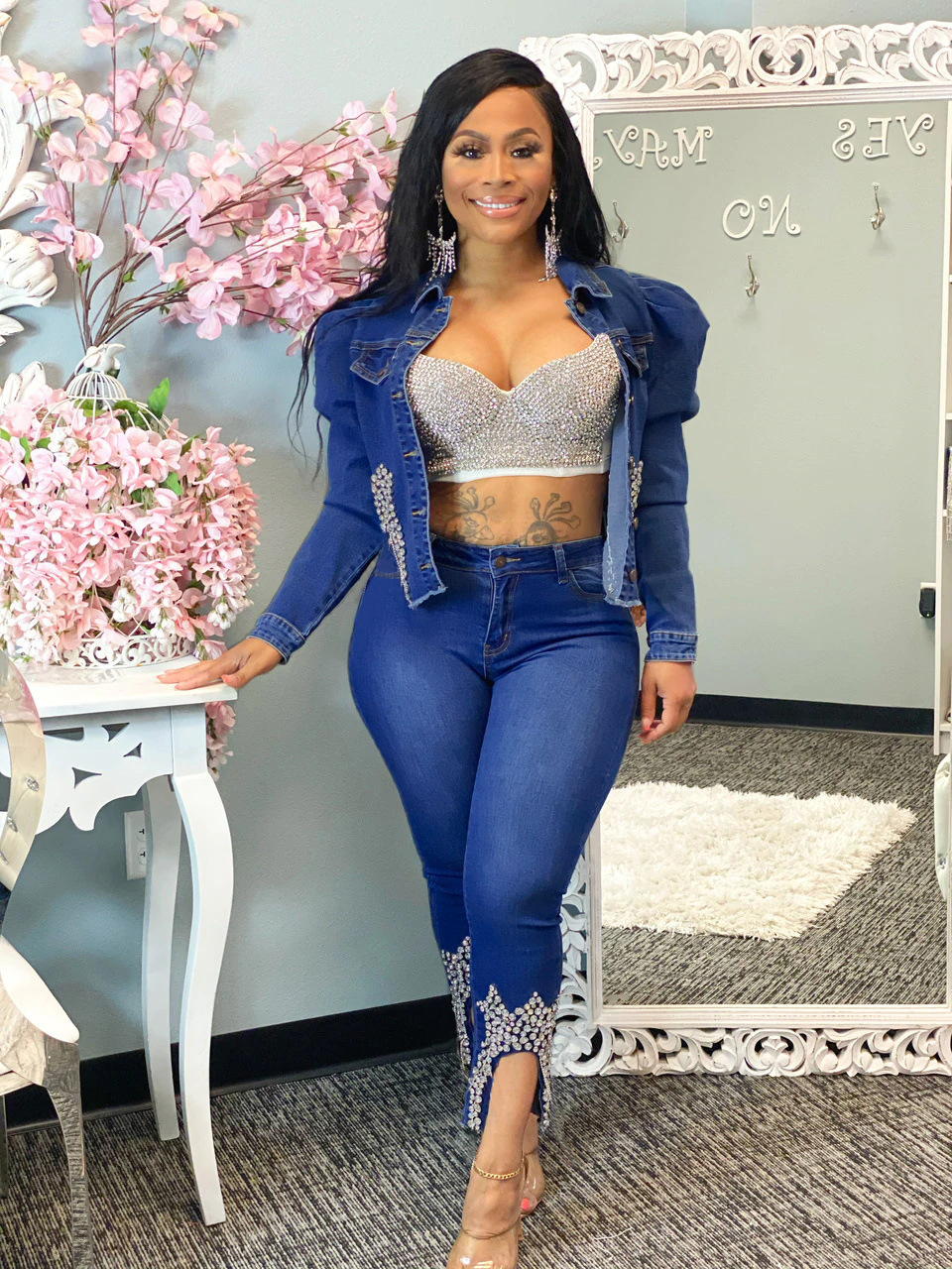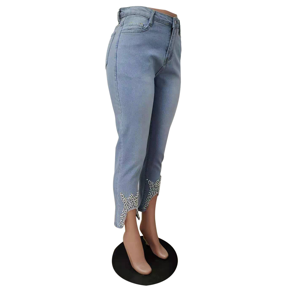 Copy| Product Name | Women Beaded Crown Denim Pants |