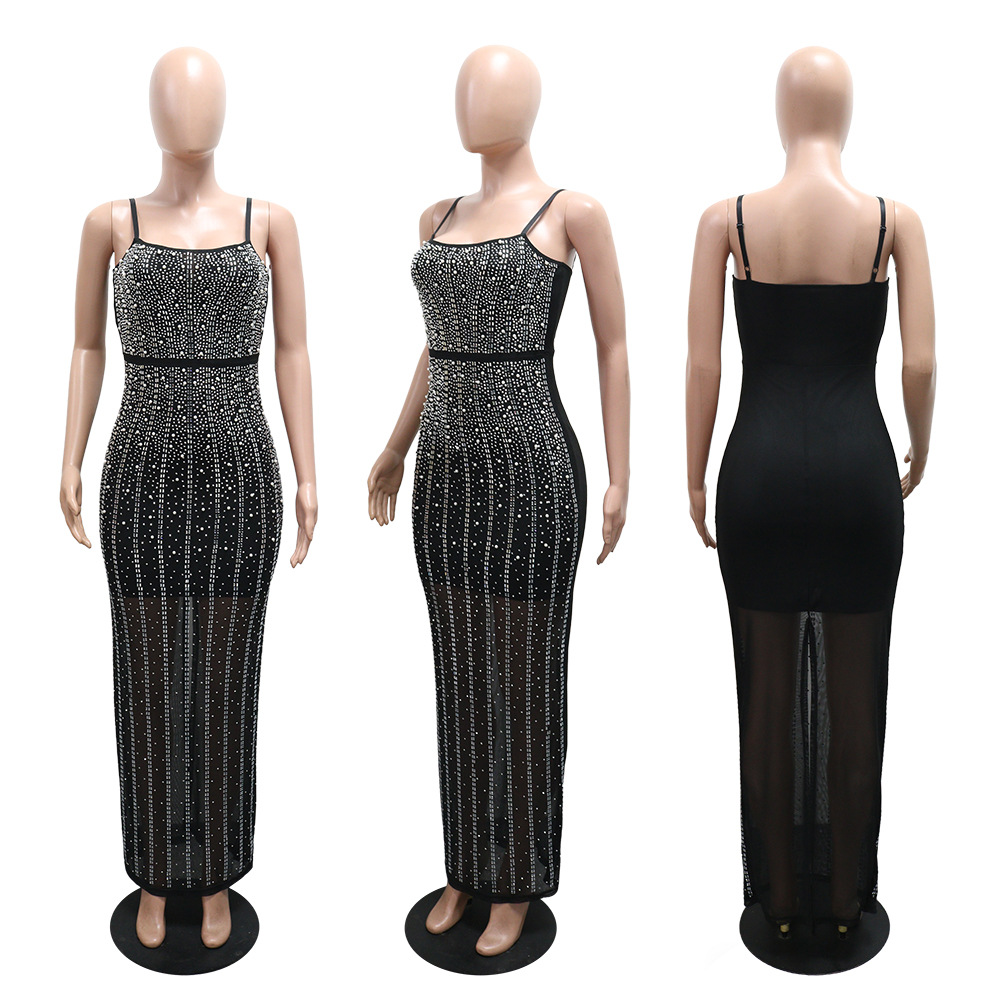 Copy| Product Name | Women Beaded Strap Sexy Party Long Dress |