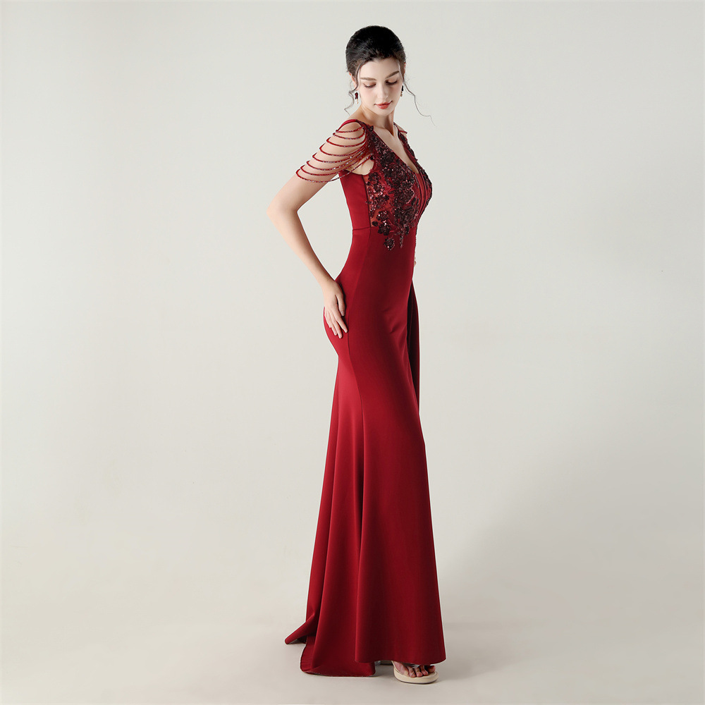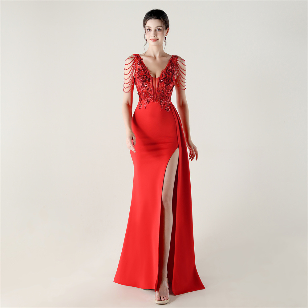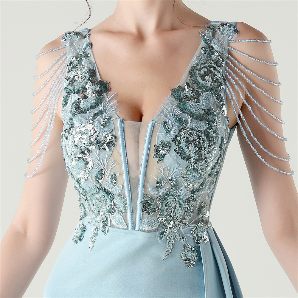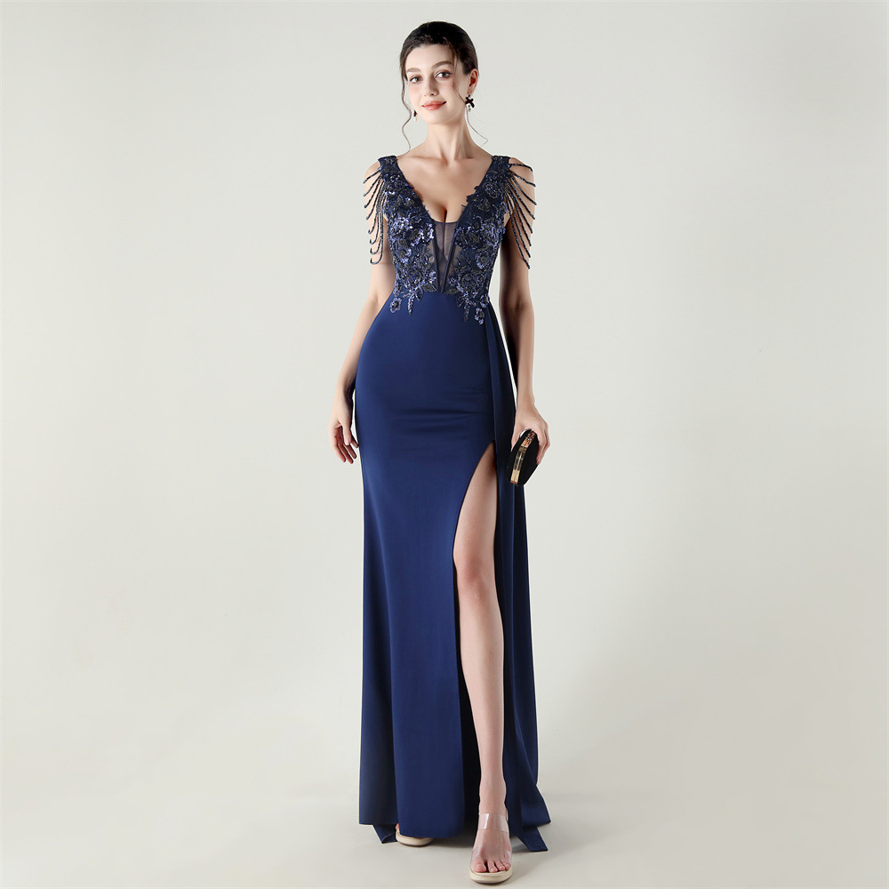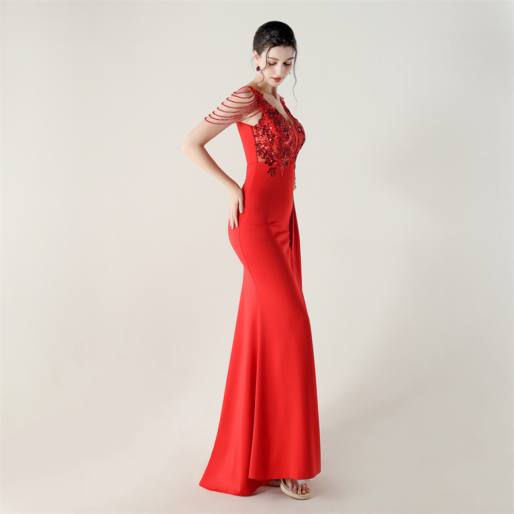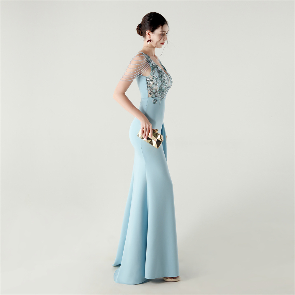 Copy| Product Name | Women Beaded Tube Embroidery Beaded Fishbone Waist Formal Party Evening Dress |