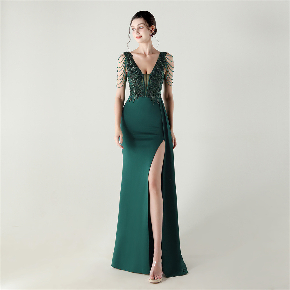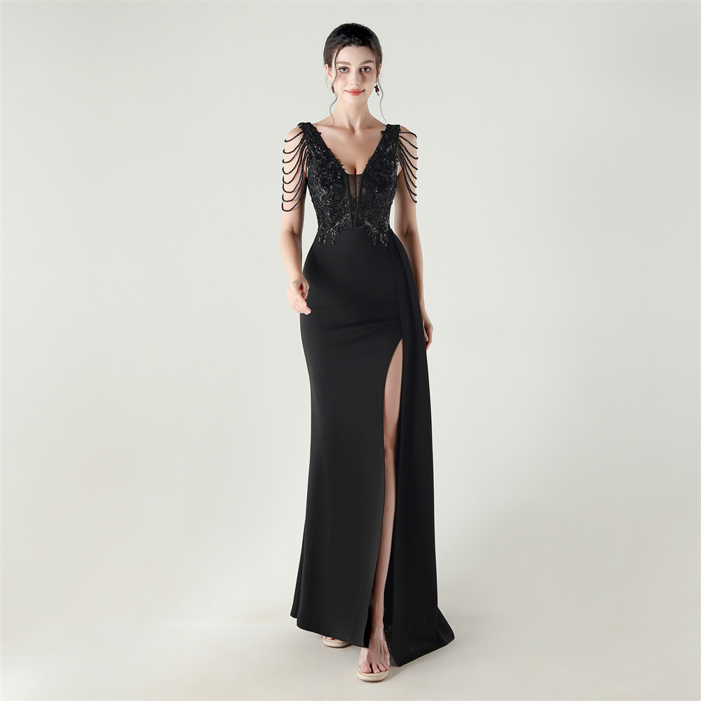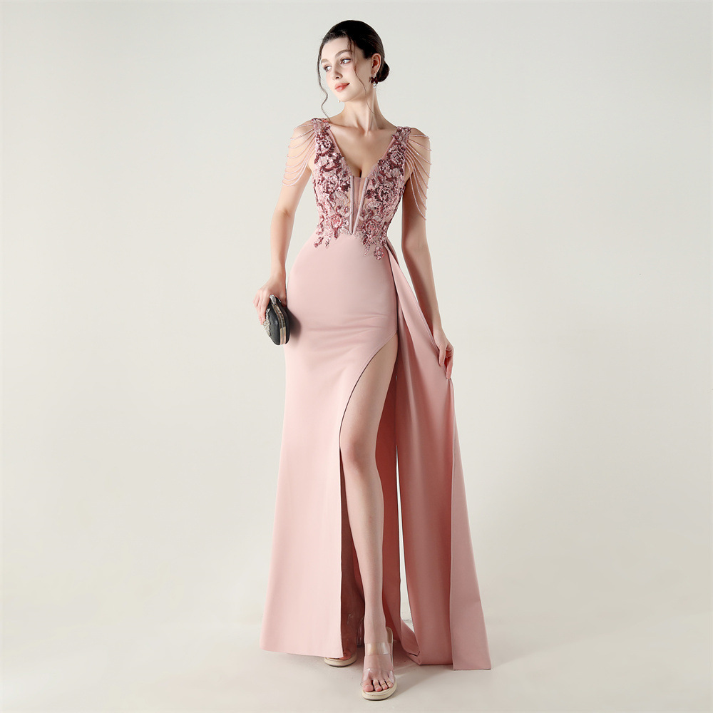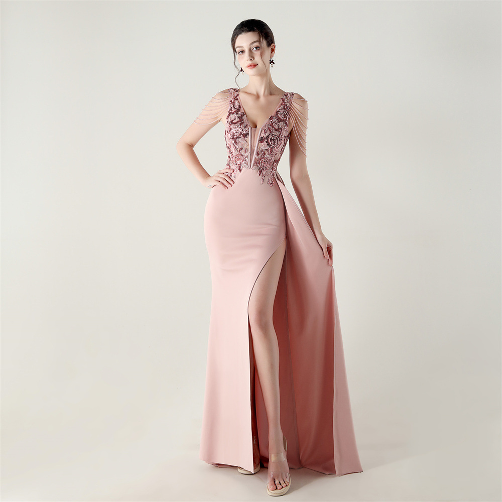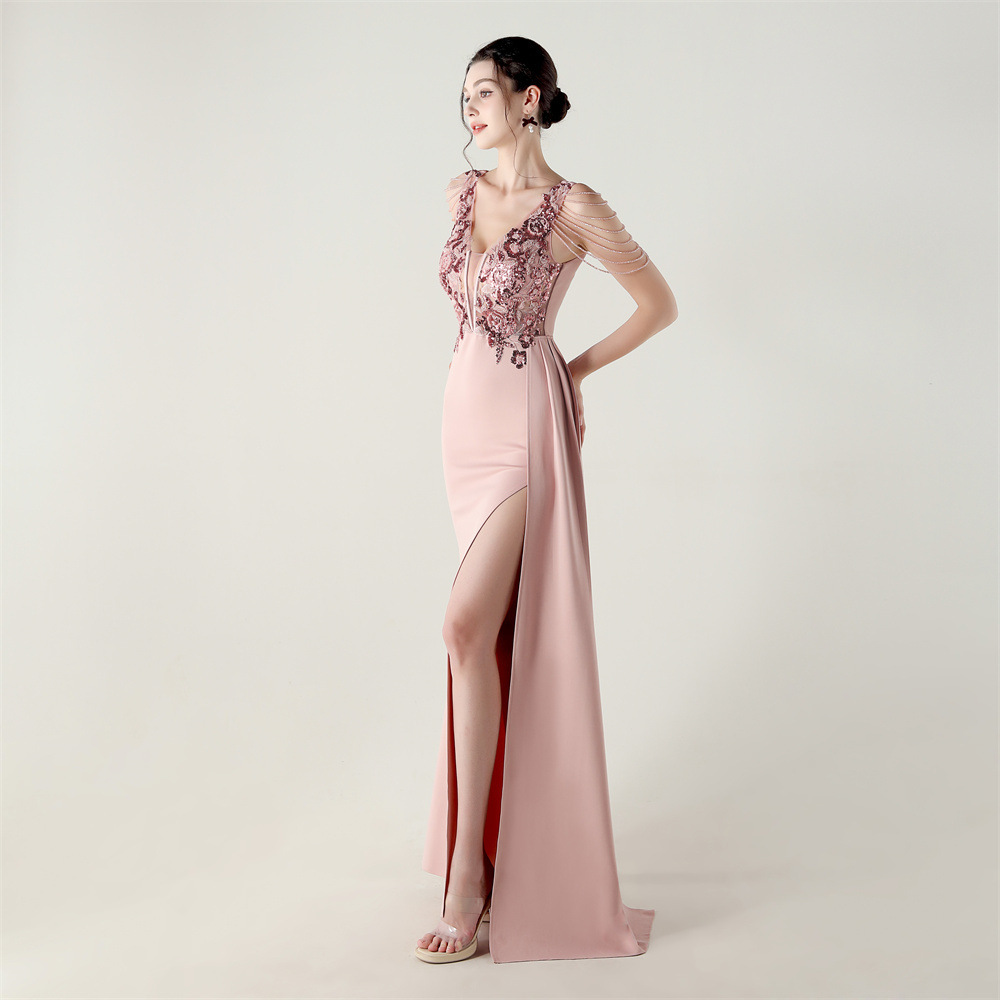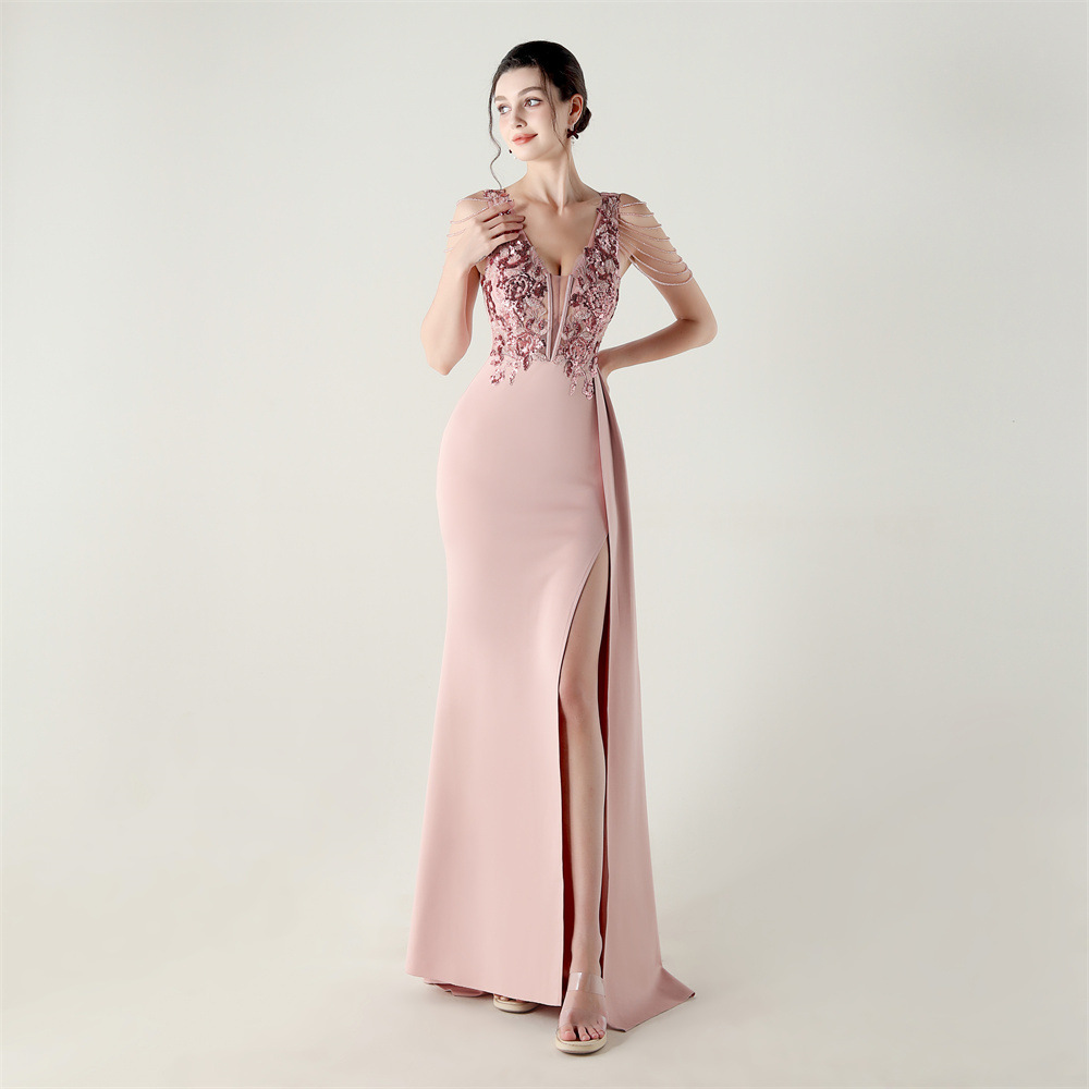 Copy| Product Name | Women Beaded Tube Embroidery Beaded Fishbone Waist Formal Party Evening Dress |