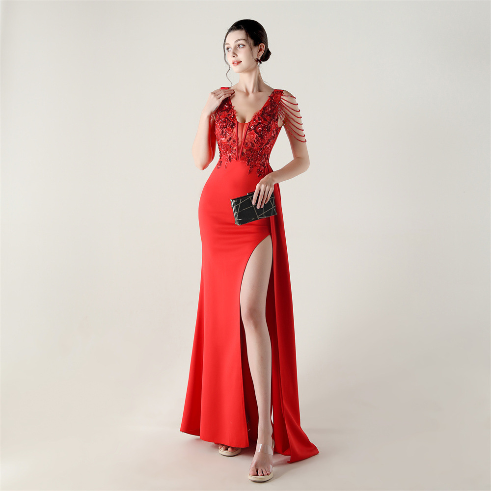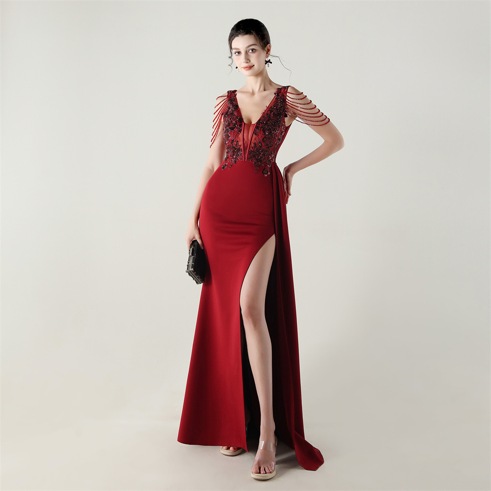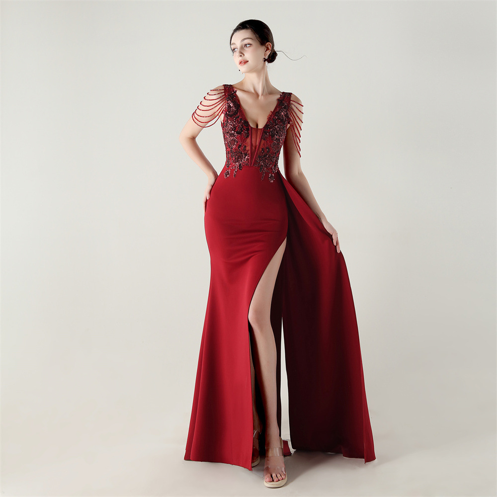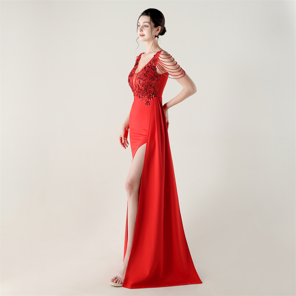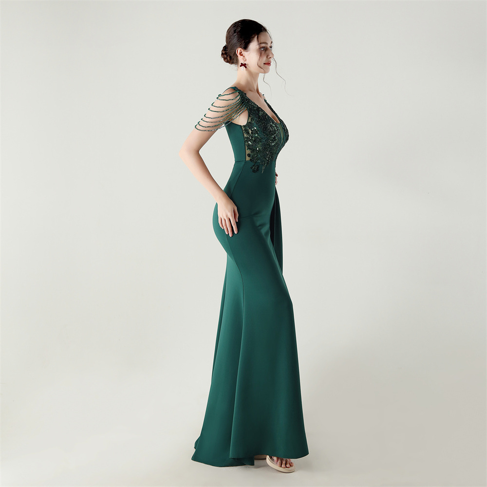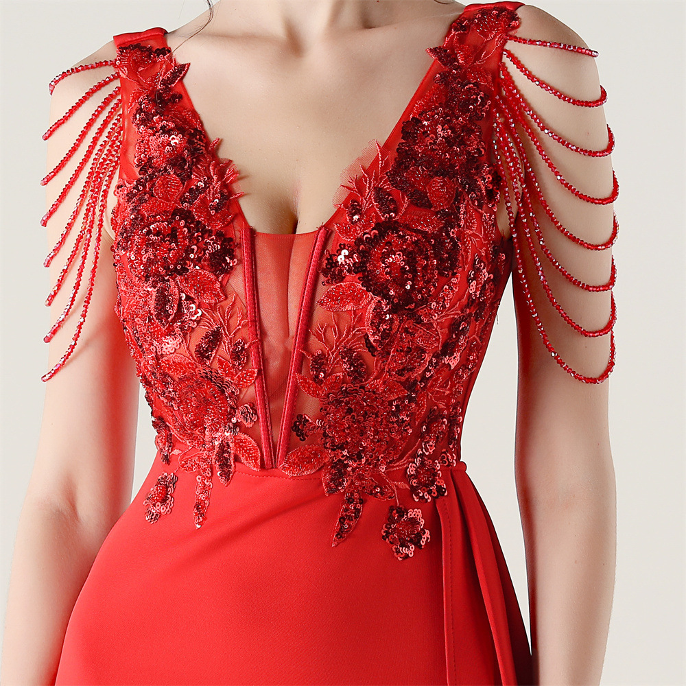 Copy| Product Name | Women Beaded Tube Embroidery Beaded Fishbone Waist Formal Party Evening Dress |