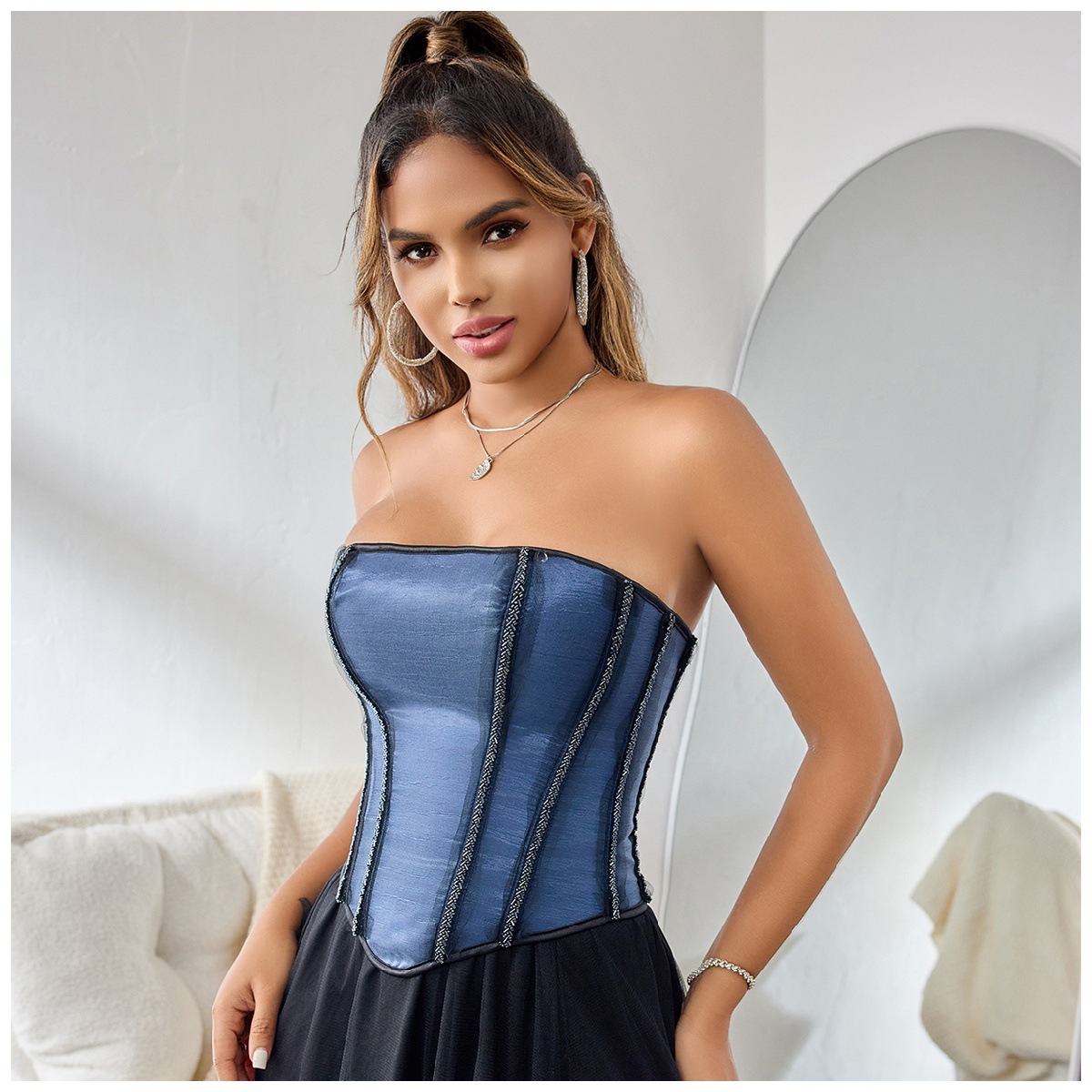 Copy| Product Name | Women Blue Trimmed Strapless corset |