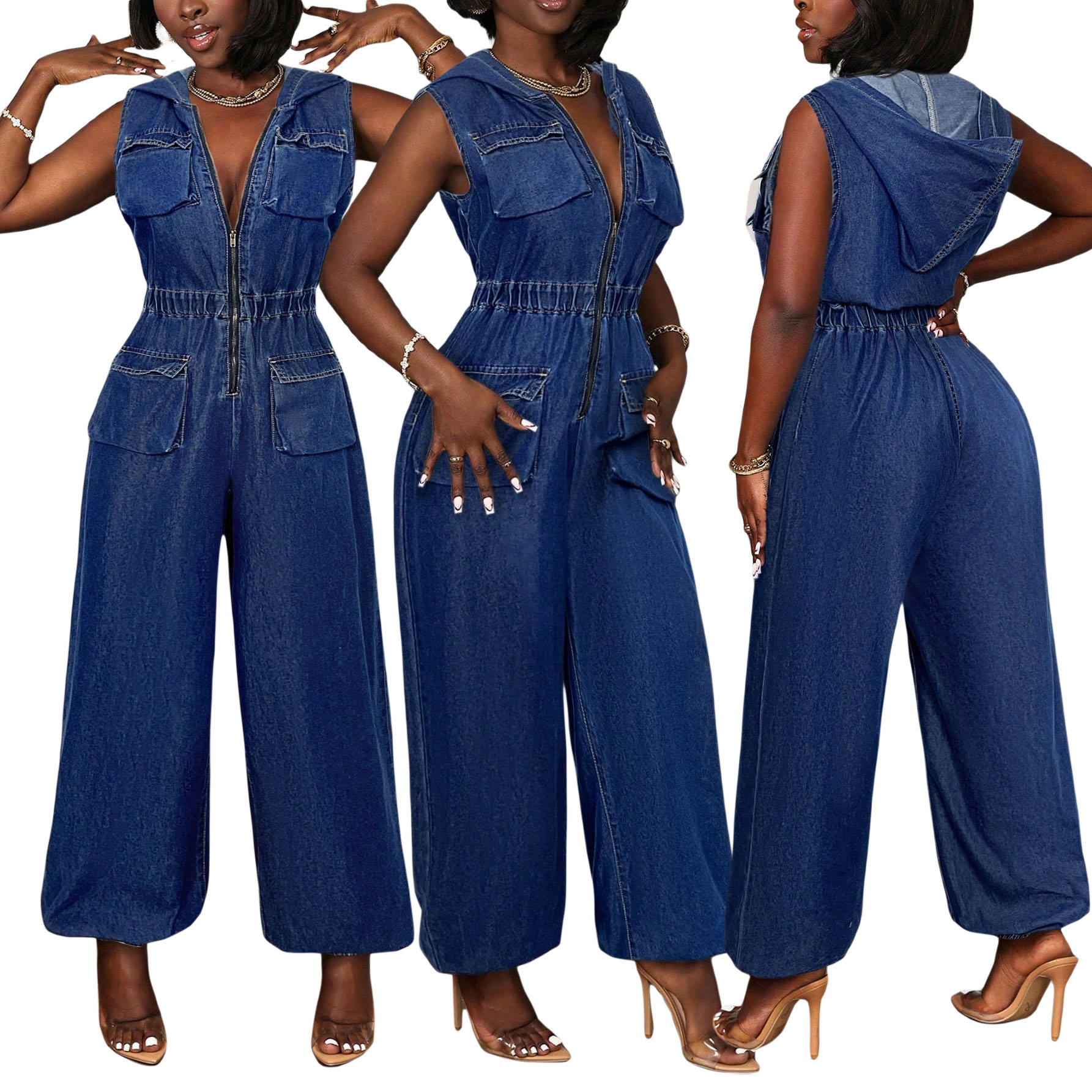 This Women Cargo Denim Jumpsuit Design Made Of High Quality Polyster And Spandex Material. It Is Stretchy, Durable And Comfortable. Cheap Sexy Jumpsuits For Women Has Long Been a Party Favorite. Global Lover Provide a Rich Selction Of Sequin, Beaded, See Through Mesh, Leopard, Floral Lace, Leather, Velvet, Tight And Fitted Wholesale Jumpsuit Without Moq Limit.