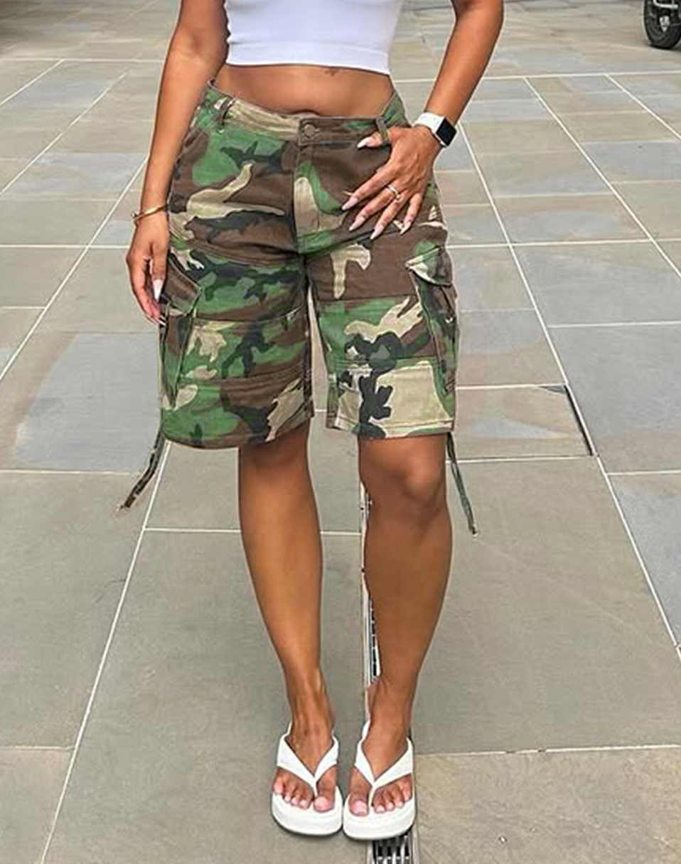 Copy| Product Name | Women Casual Pocket Camouflage Cargo Shorts |
