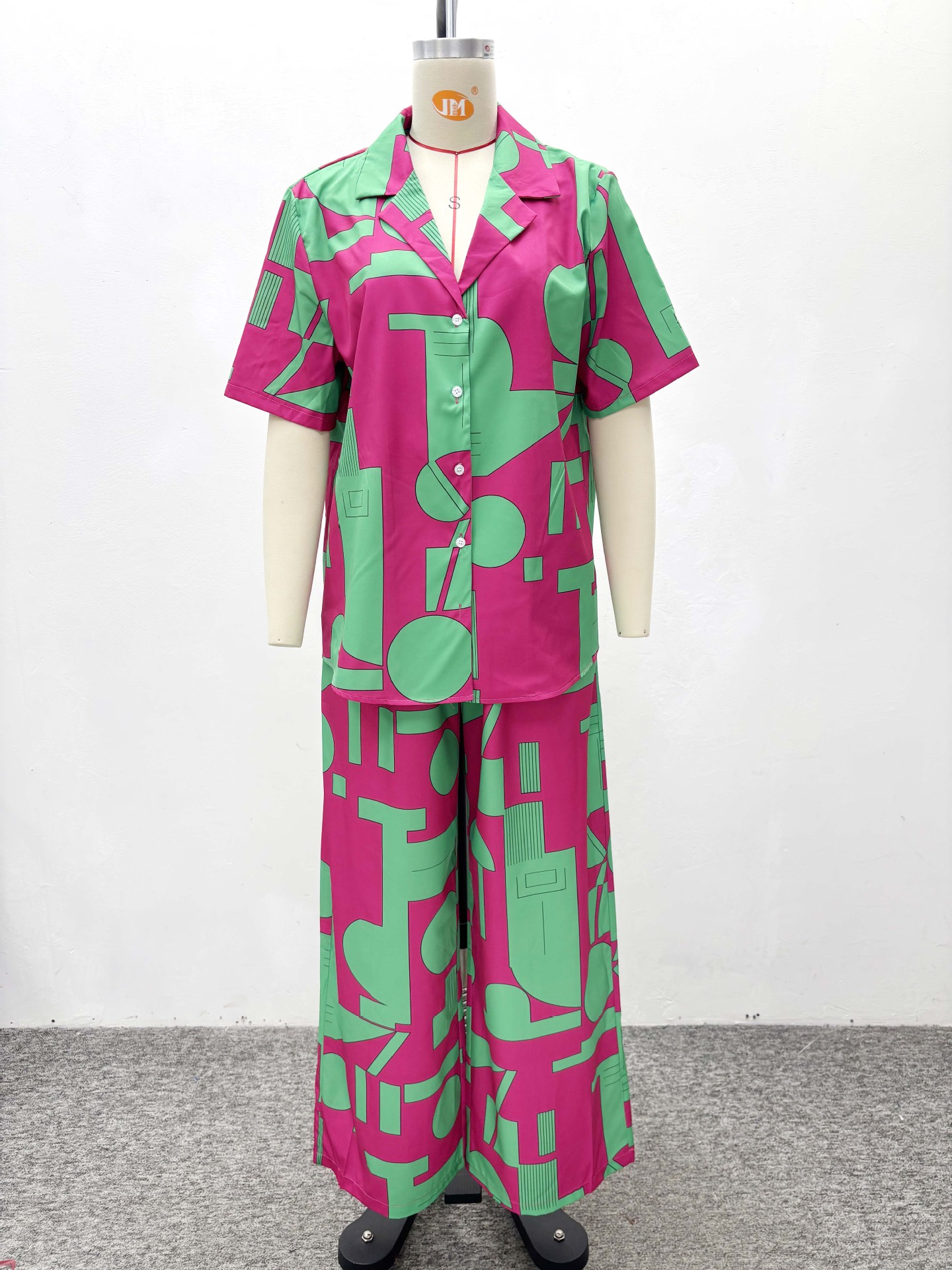Copy| Product Name | Women Casual Printed Short-Sleeve Shirt and Wide-Leg Trousers Two-Piece Set |