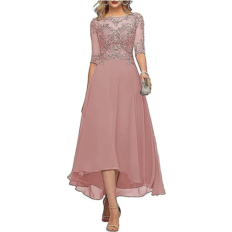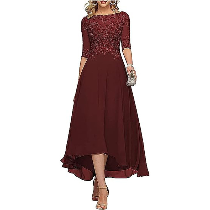 Copy| Product Name | Women Chiffon Lace Elegant Half-Sleeve Dress |