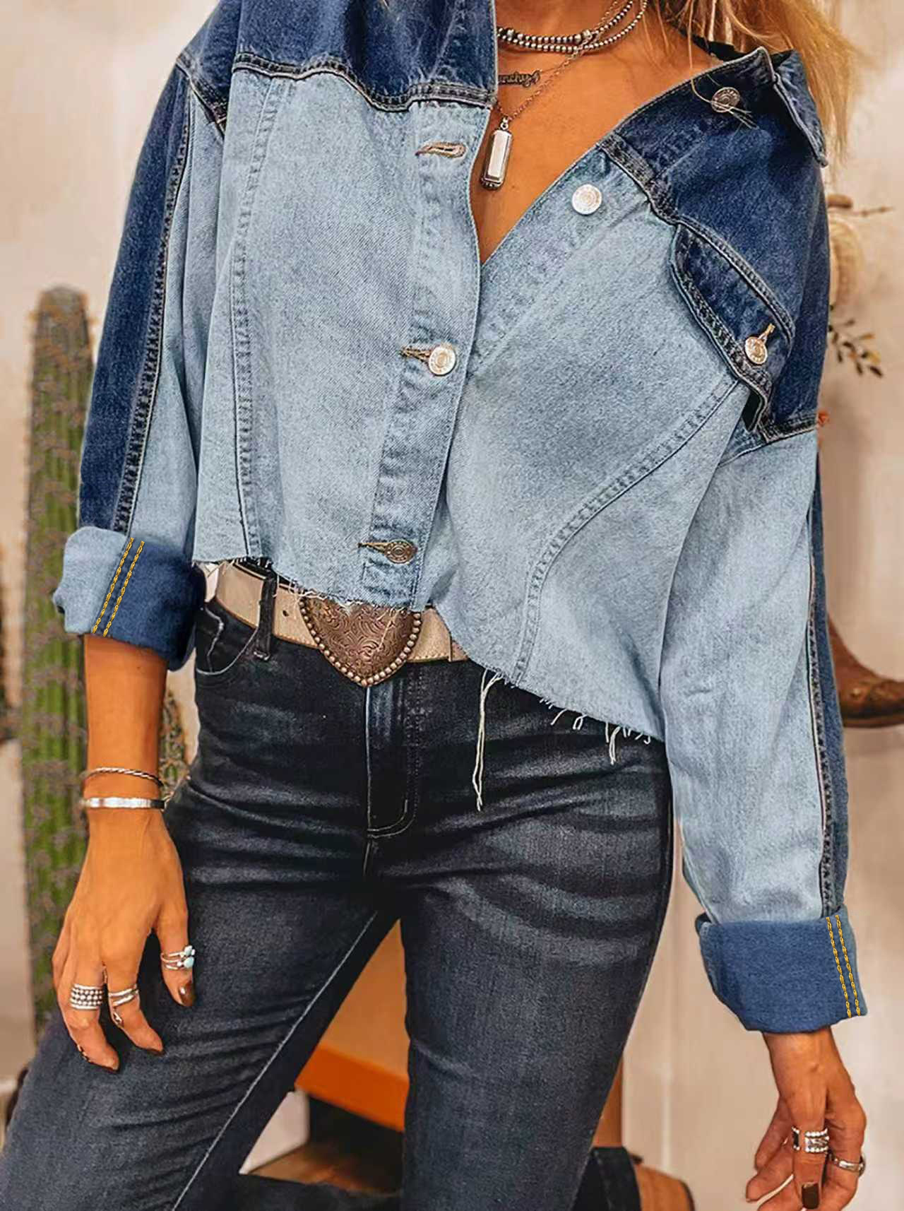 Copy| Product Name | Women Colorblock Long-Sleeved Patchwork Denim Jacket |