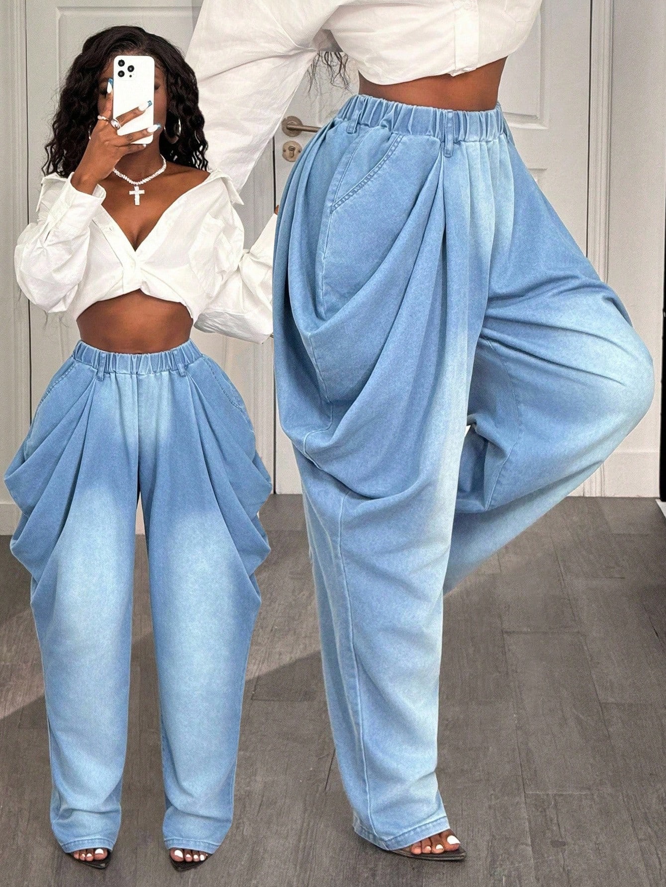 Copy| Product Name | Women Denim Wide-Leg Trousers |