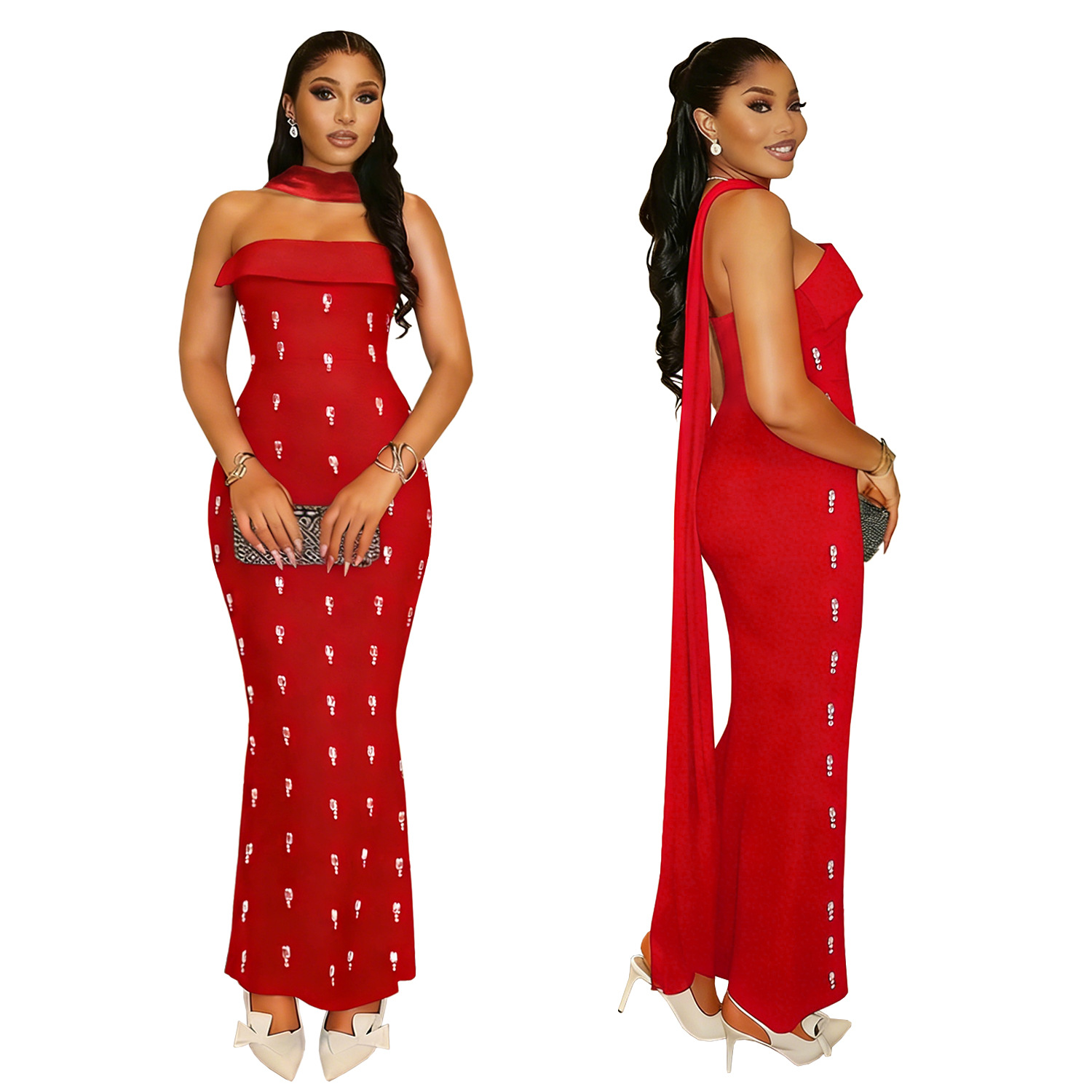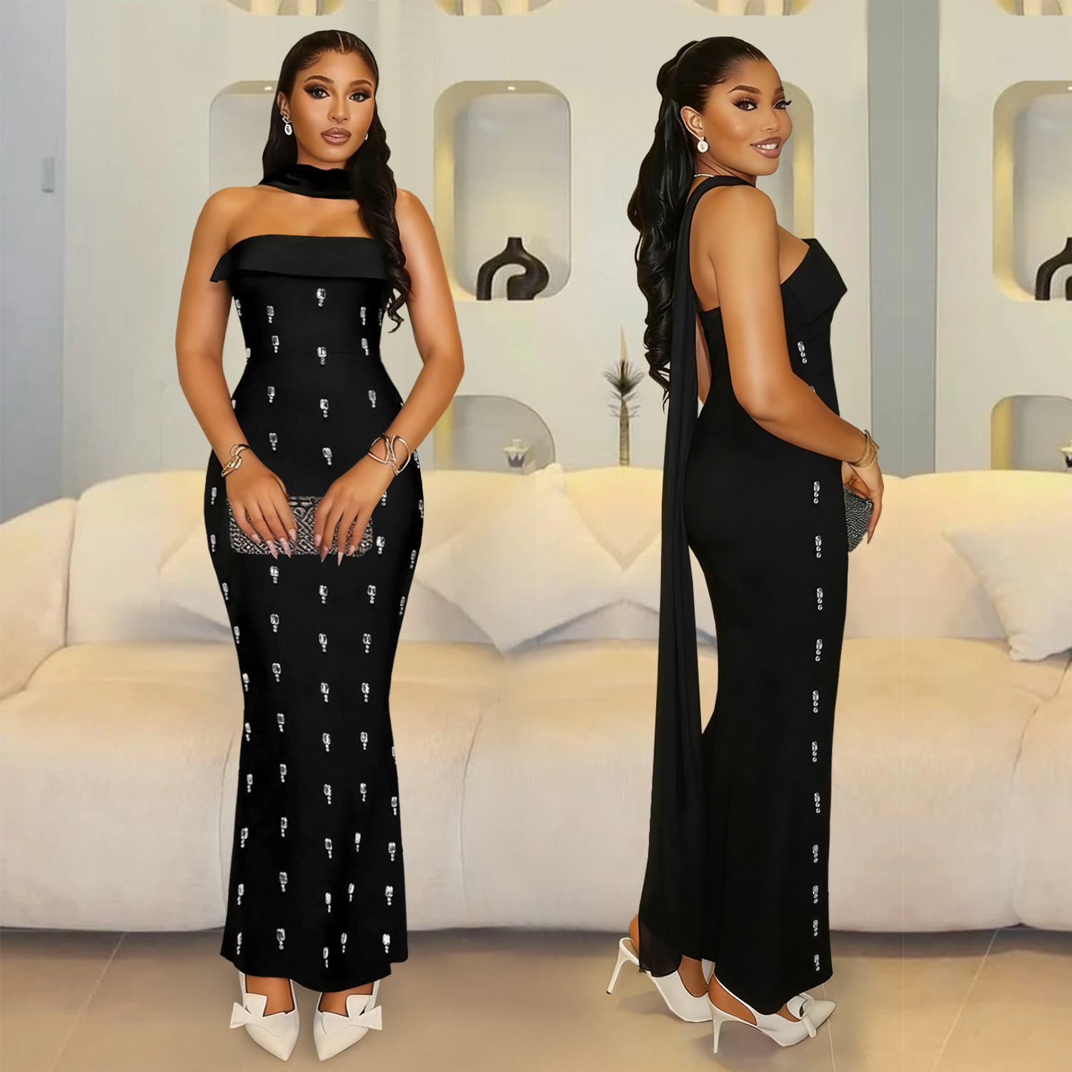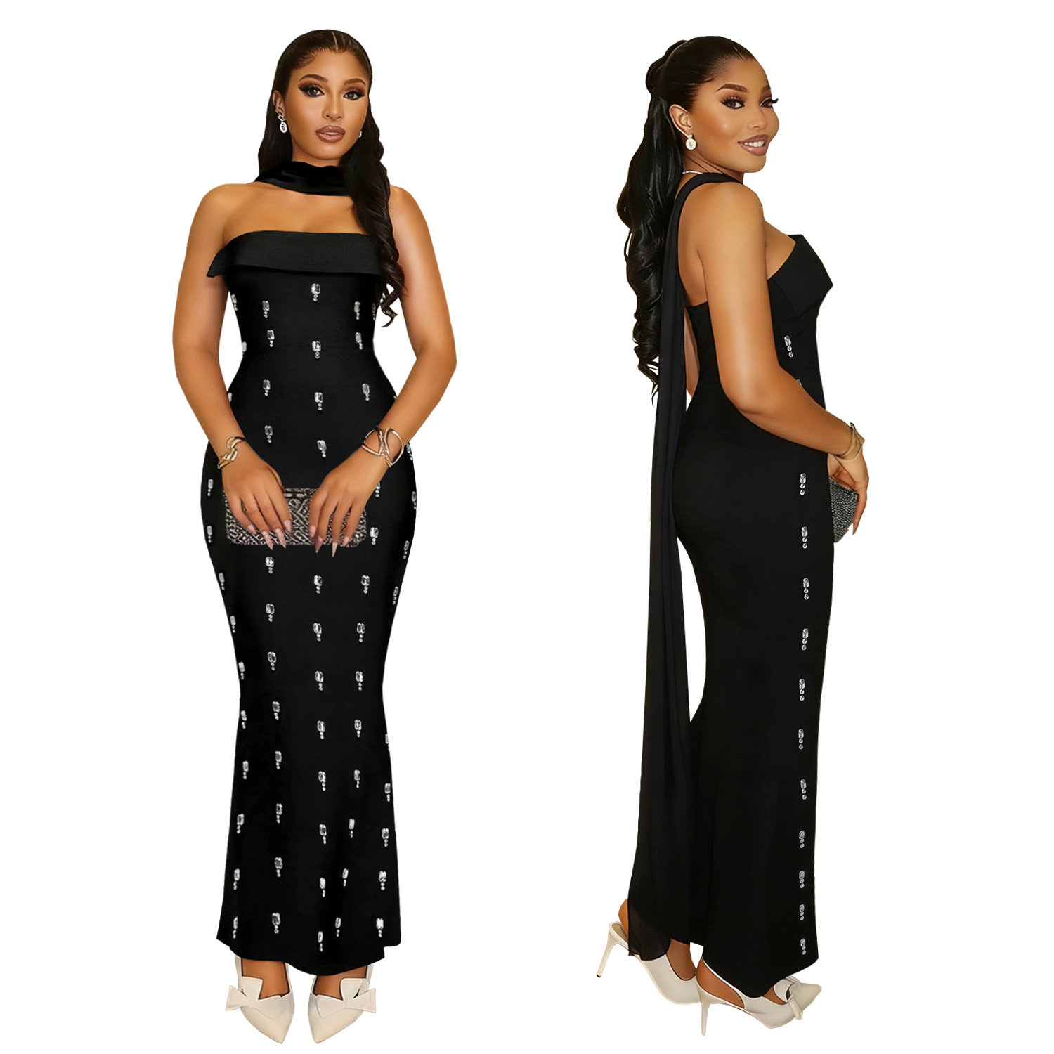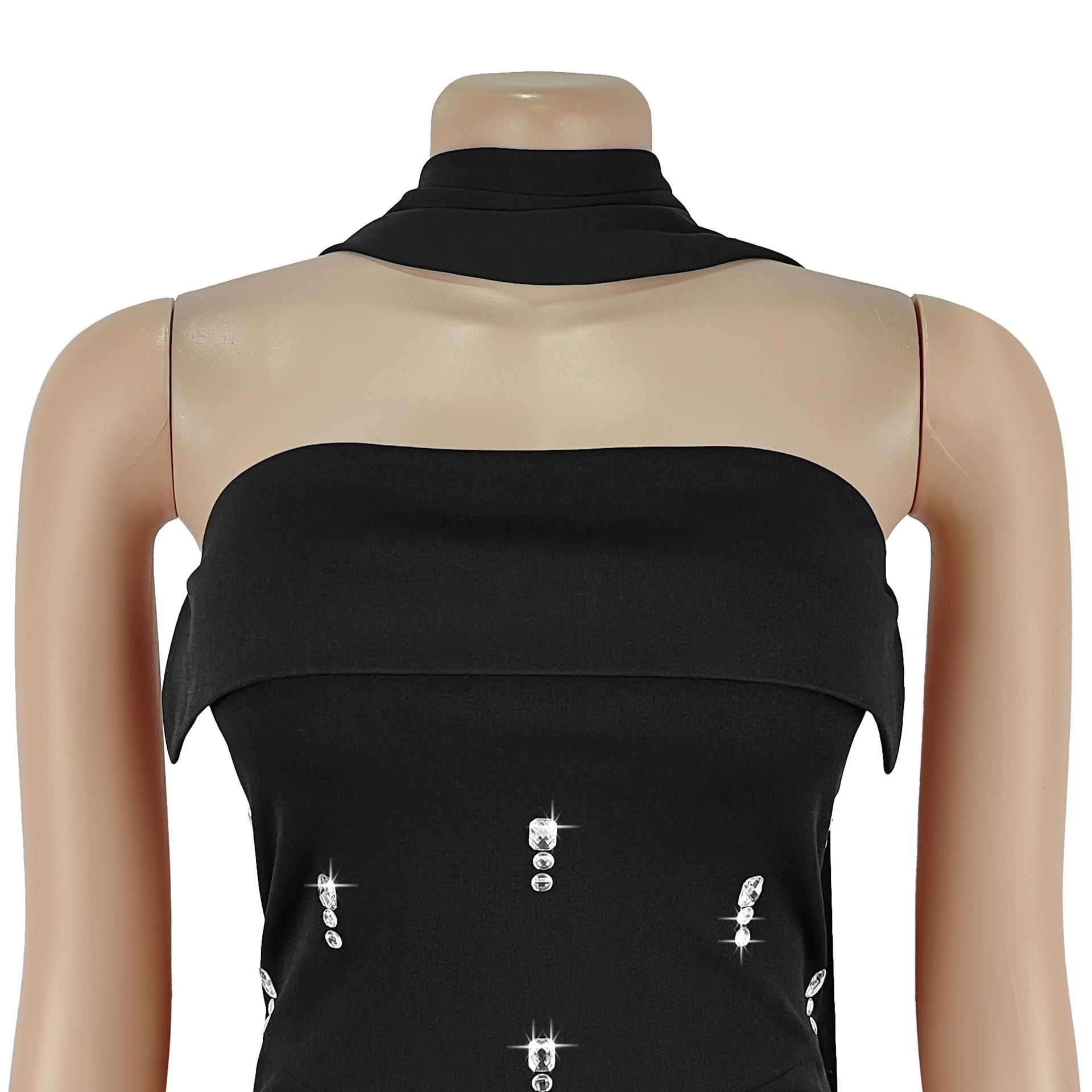Copy| Product Name | Women Elegant Strapless Beaded Ribbon Dress Two-Piece Set |