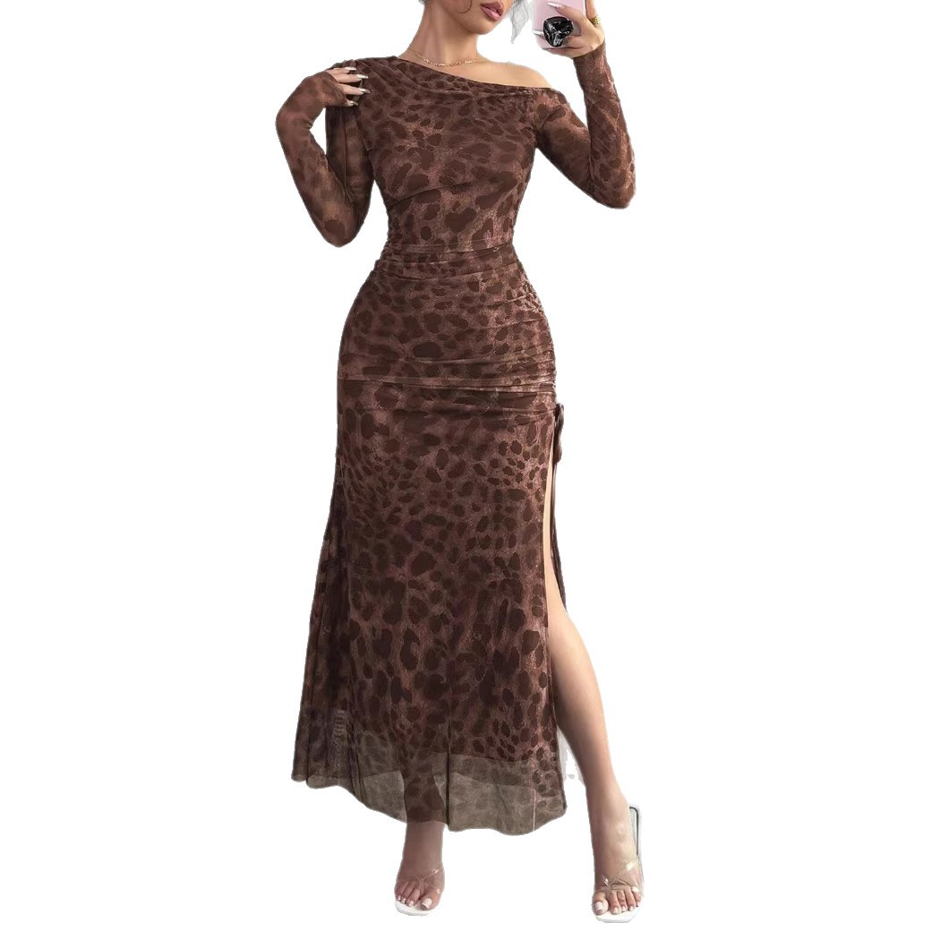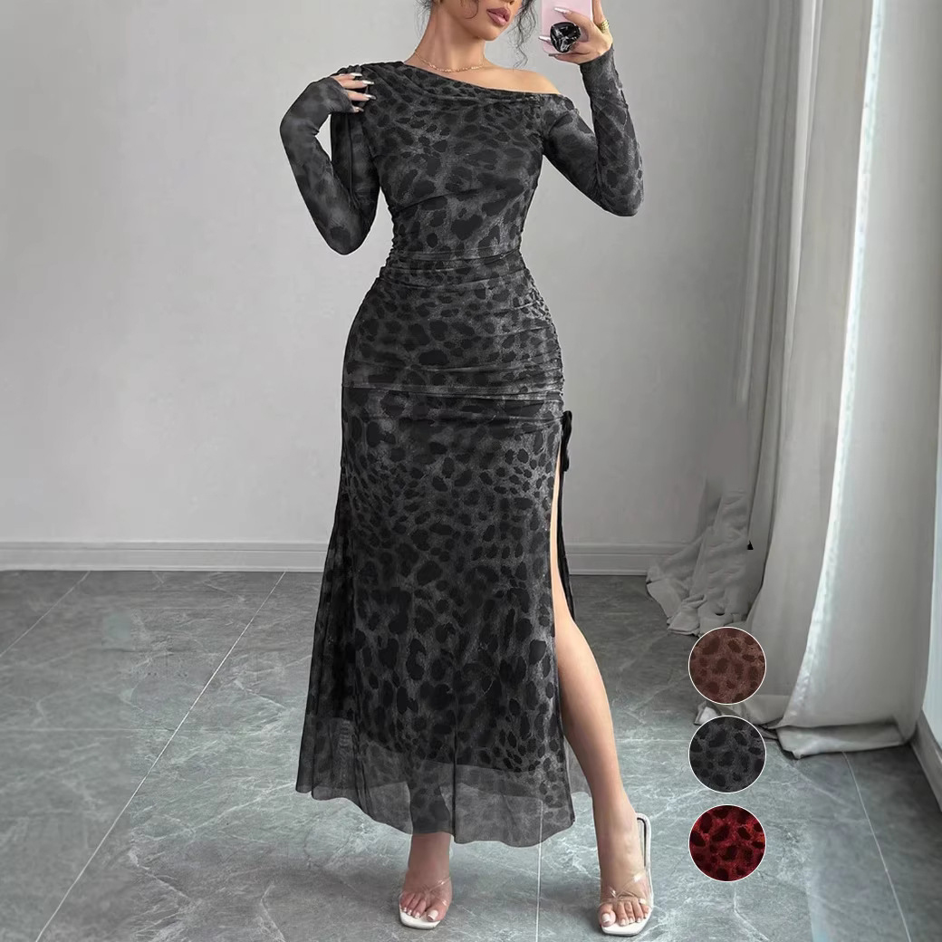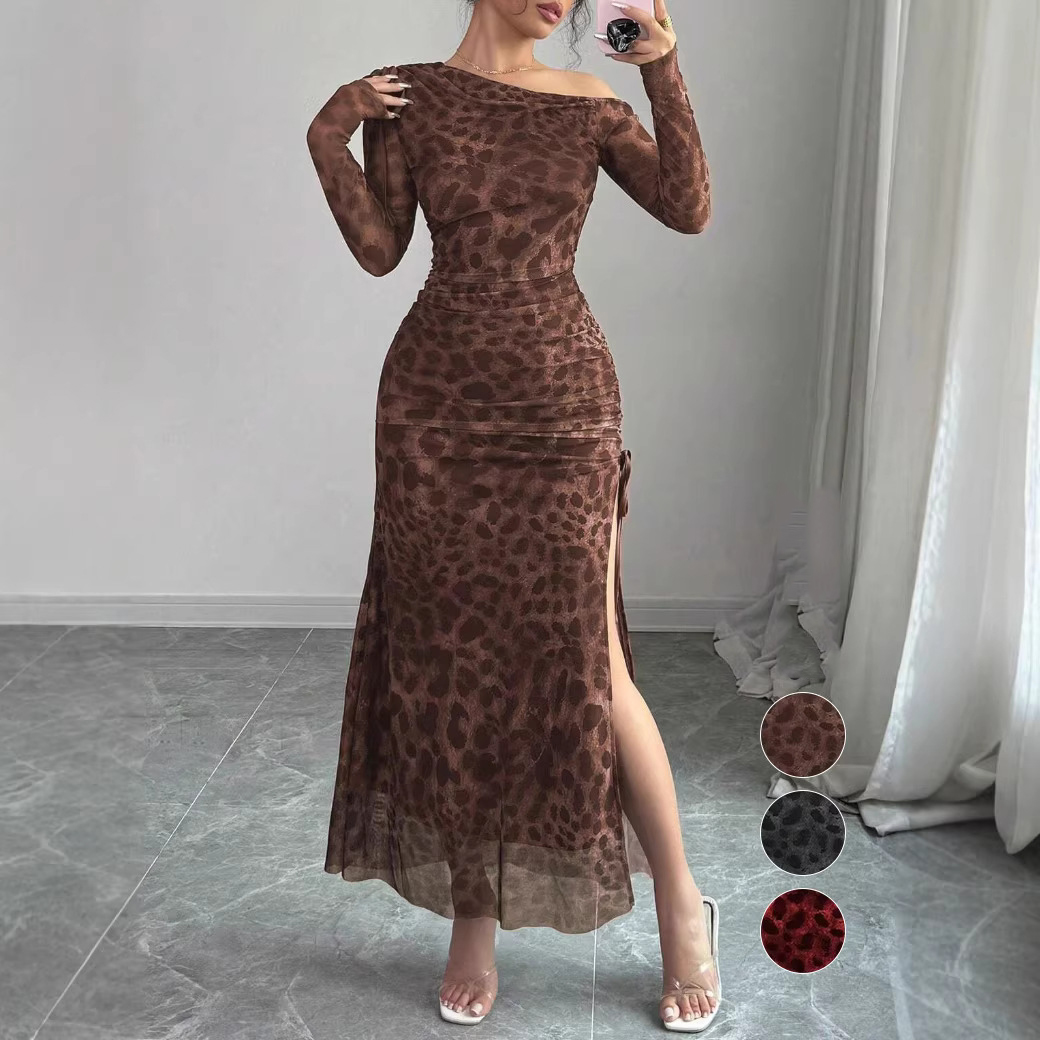 Copy| Product Name | Women Fashion Leopard Print Slim-Fit Split Dress |