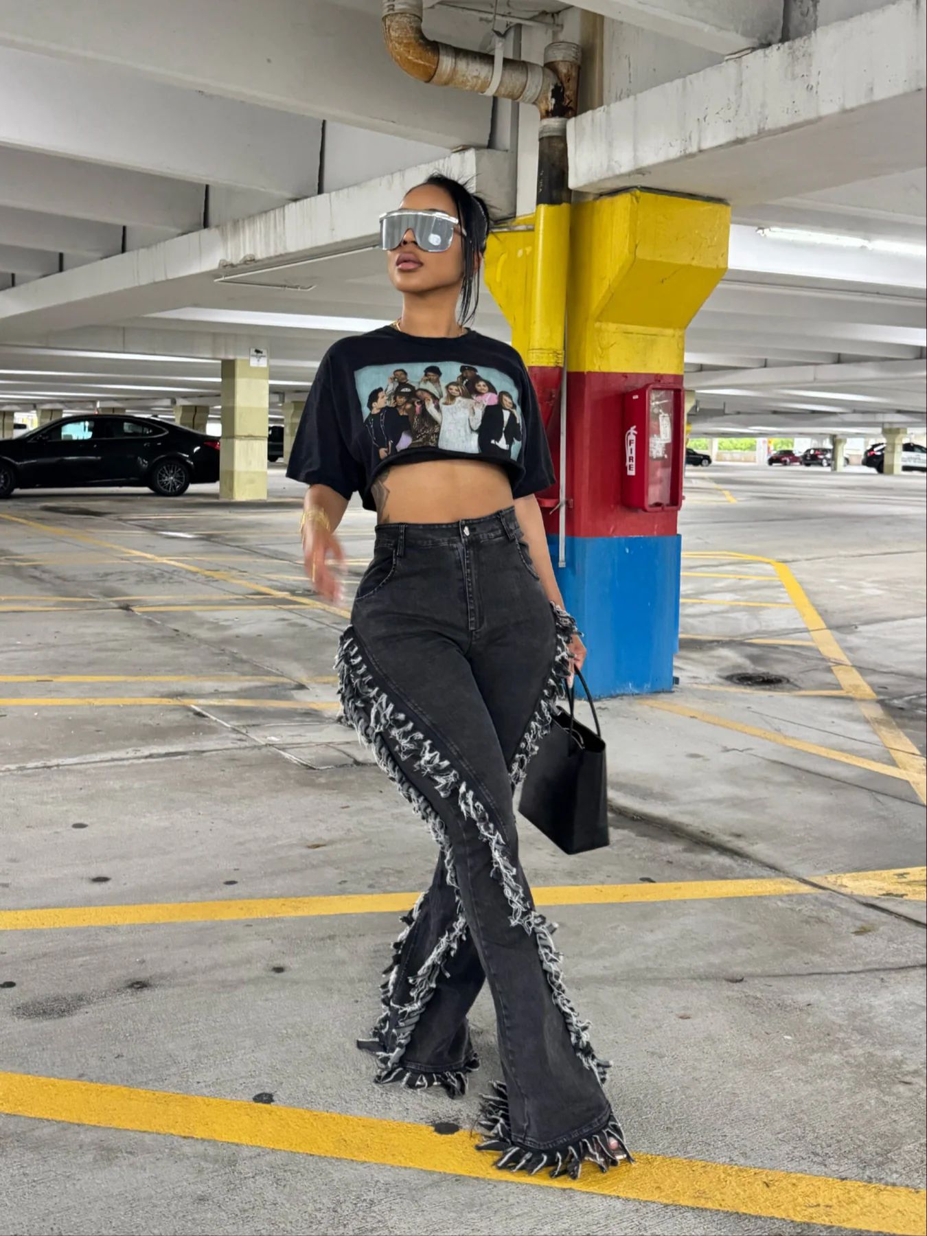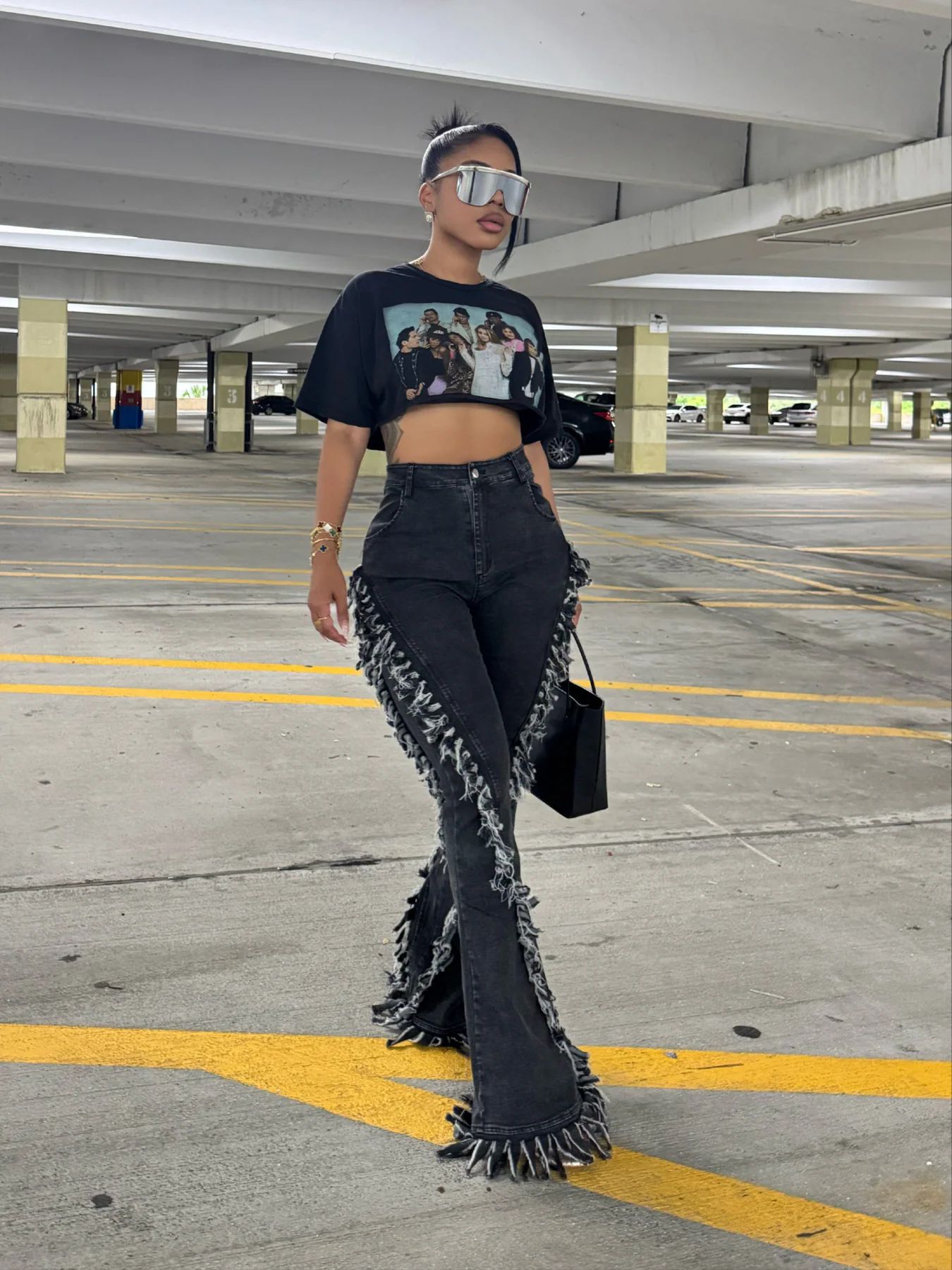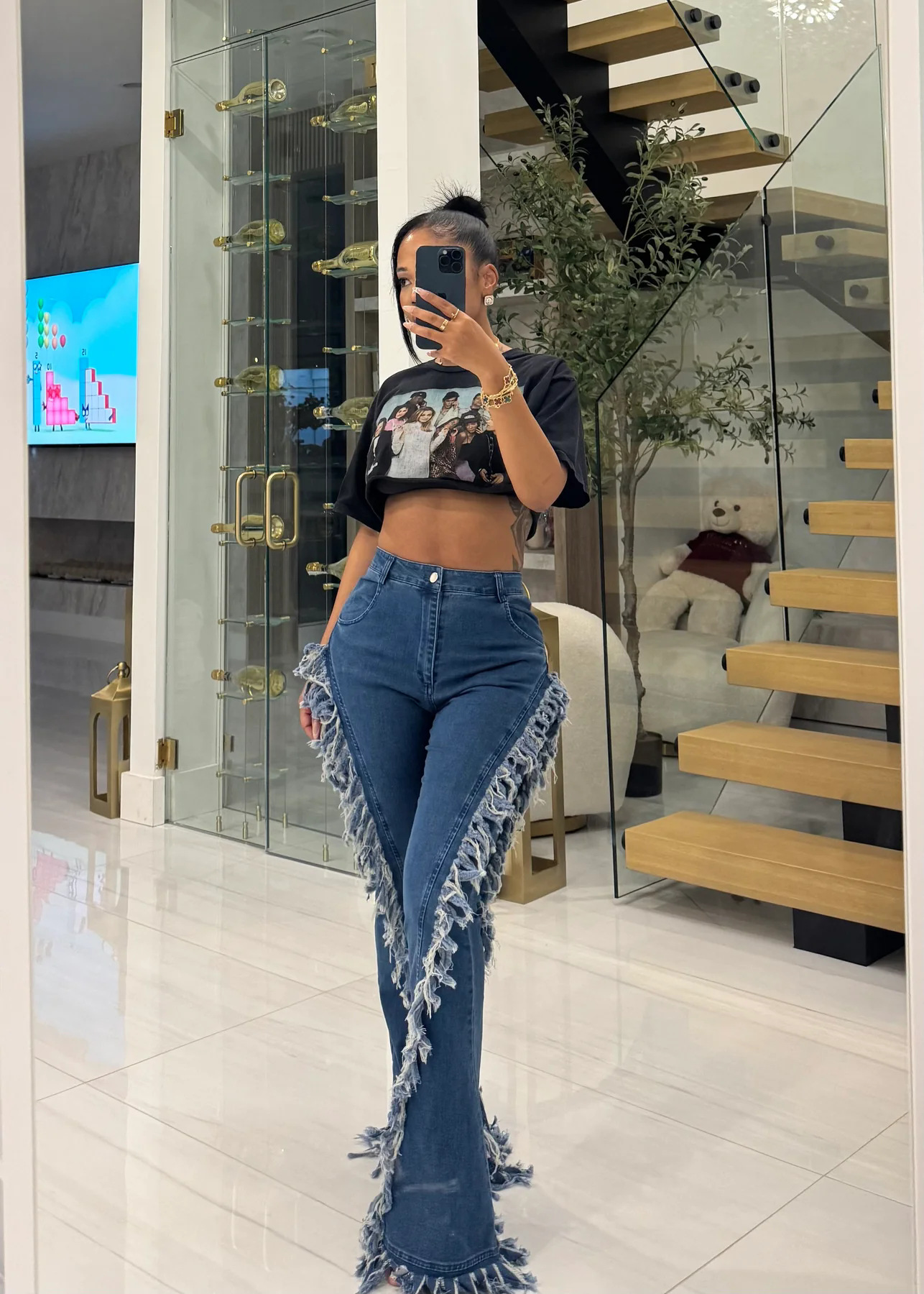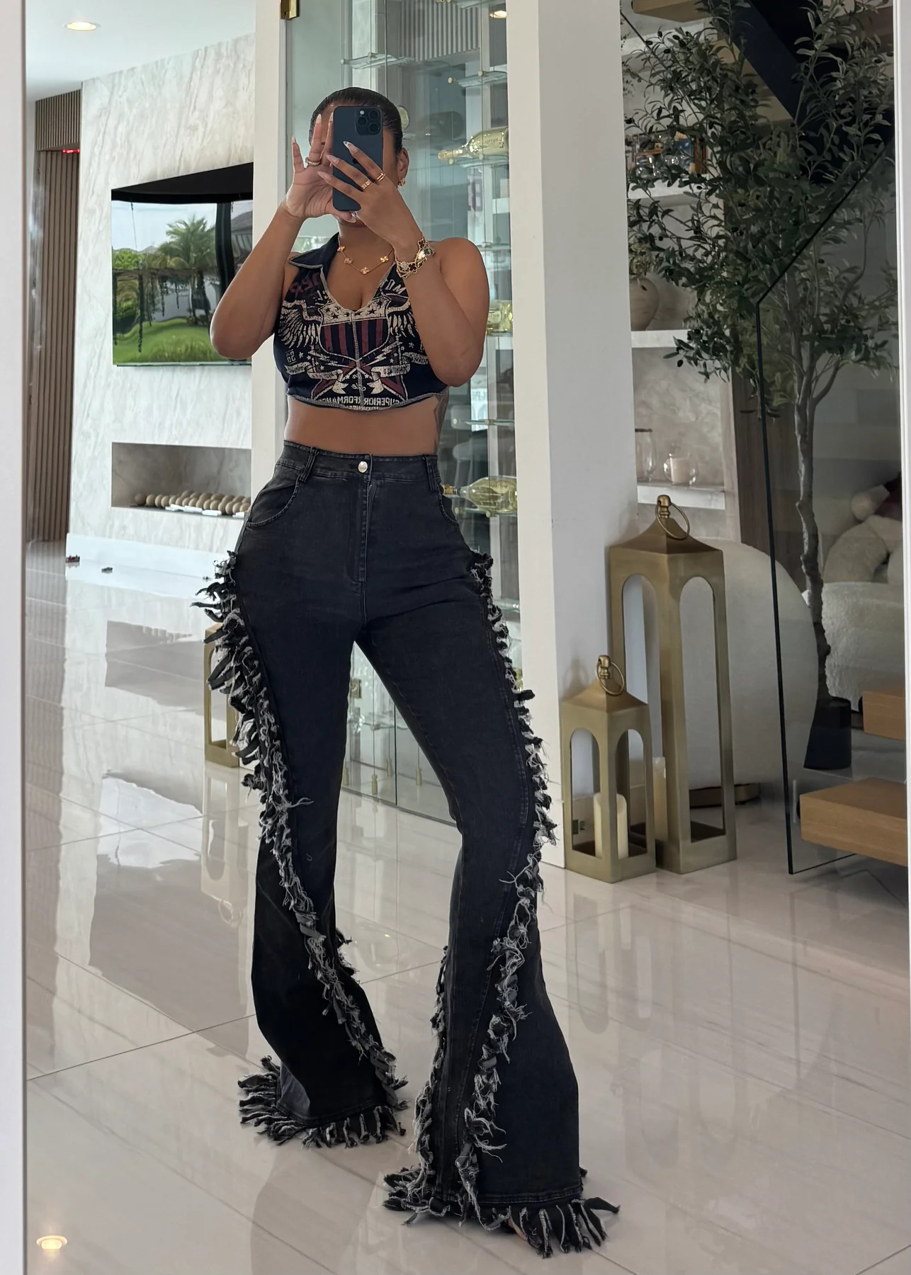 Copy| Product Name | Women Fringed Stretchy Bell Bottom Denim Pants |