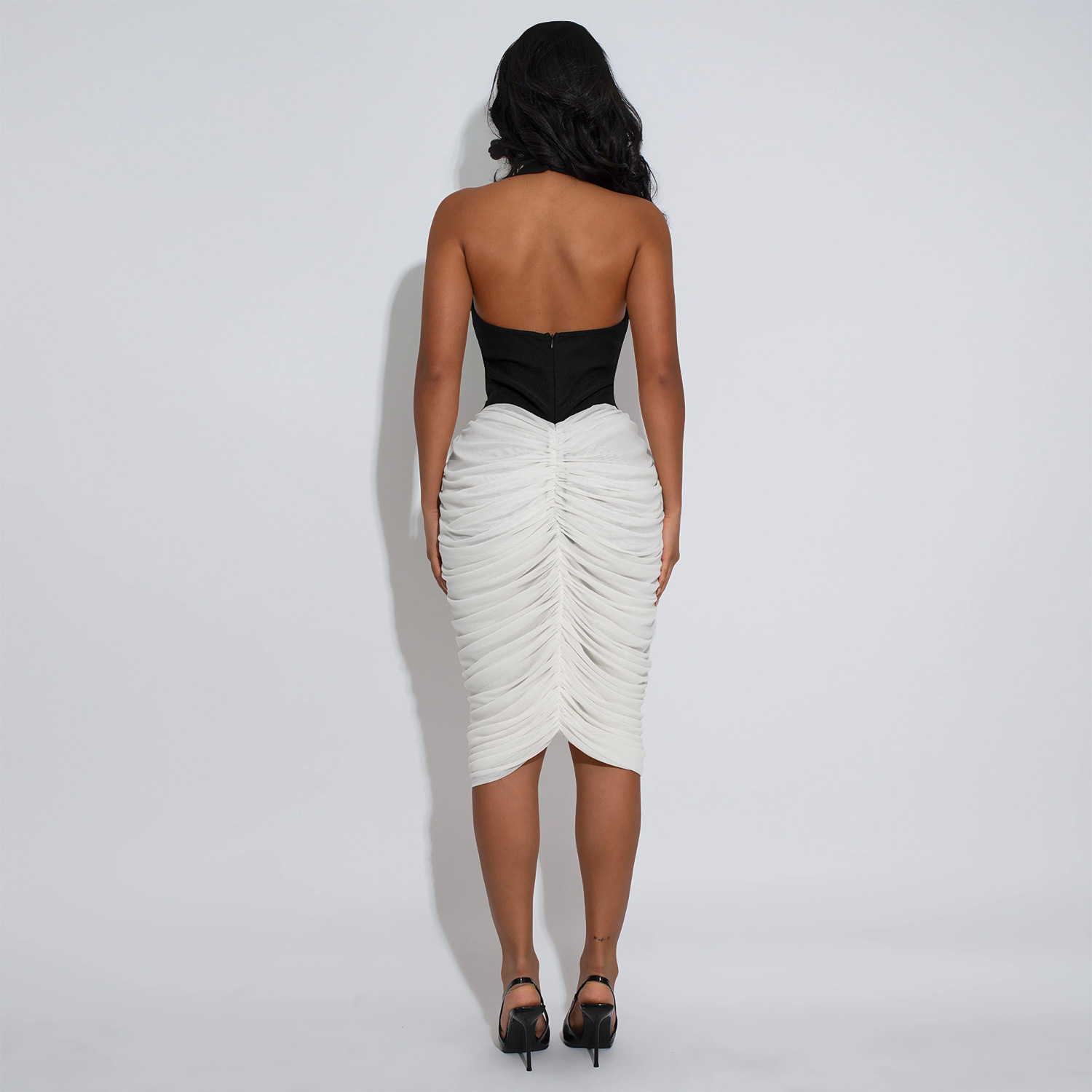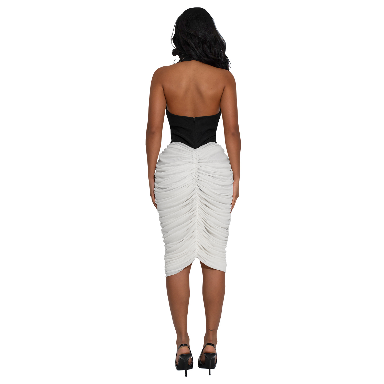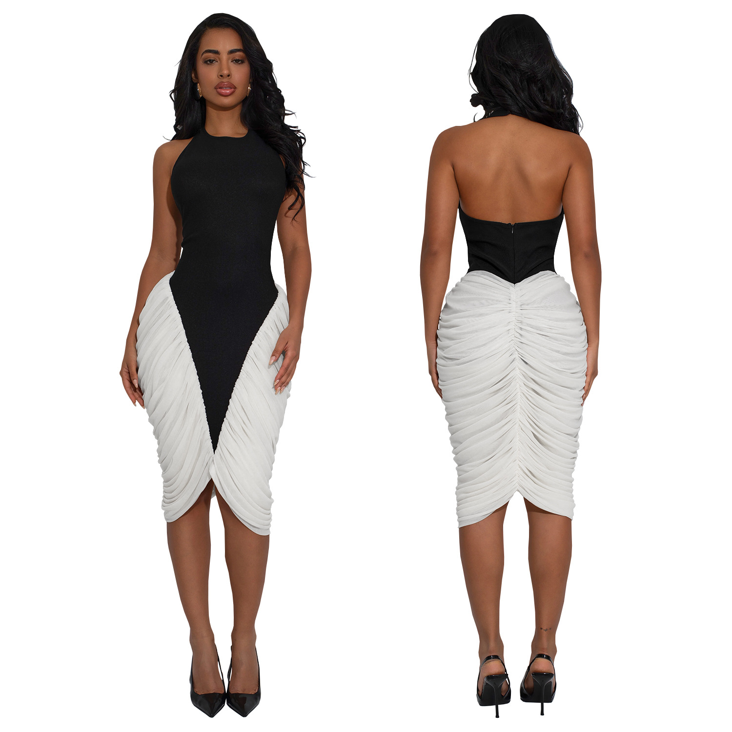 Copy| Product Name | Women Halter Neck Backless Pleated Bodycon Dress |