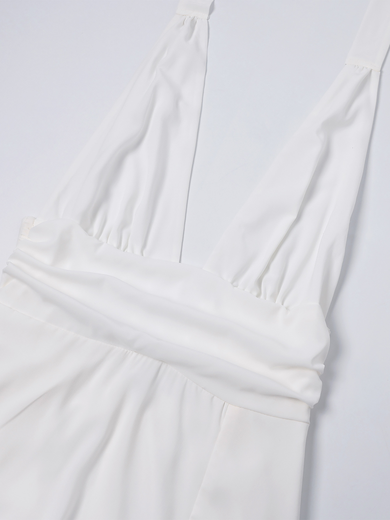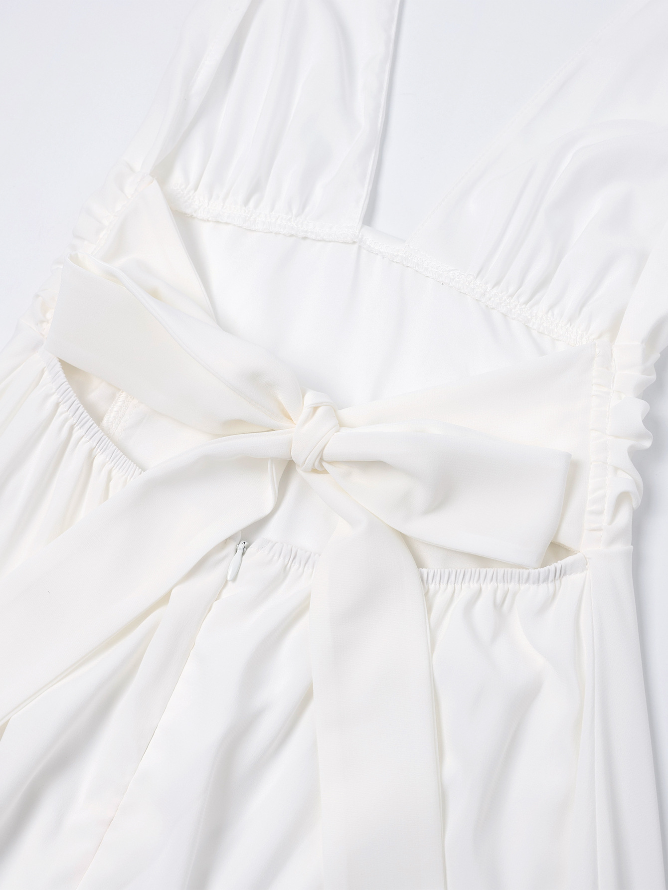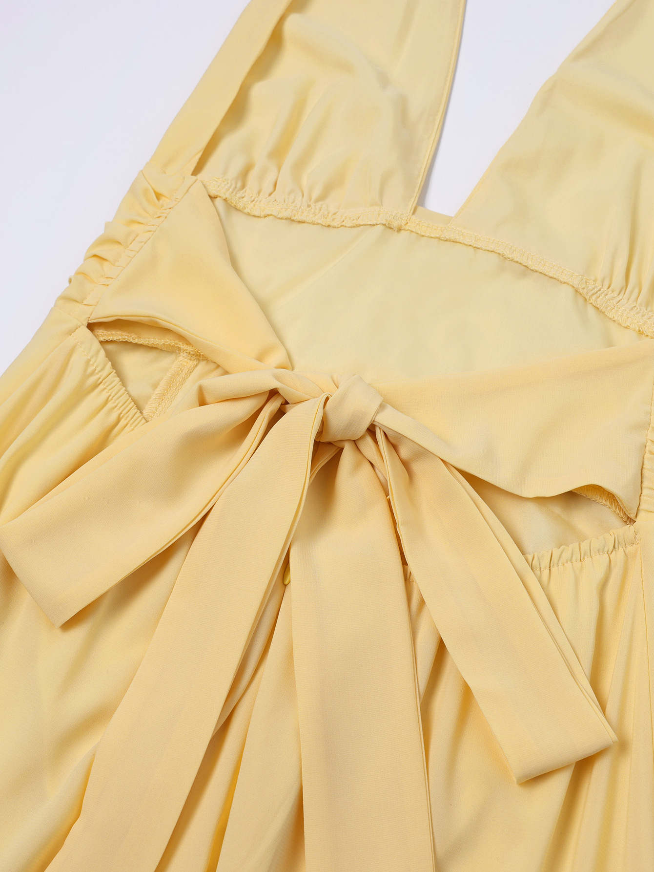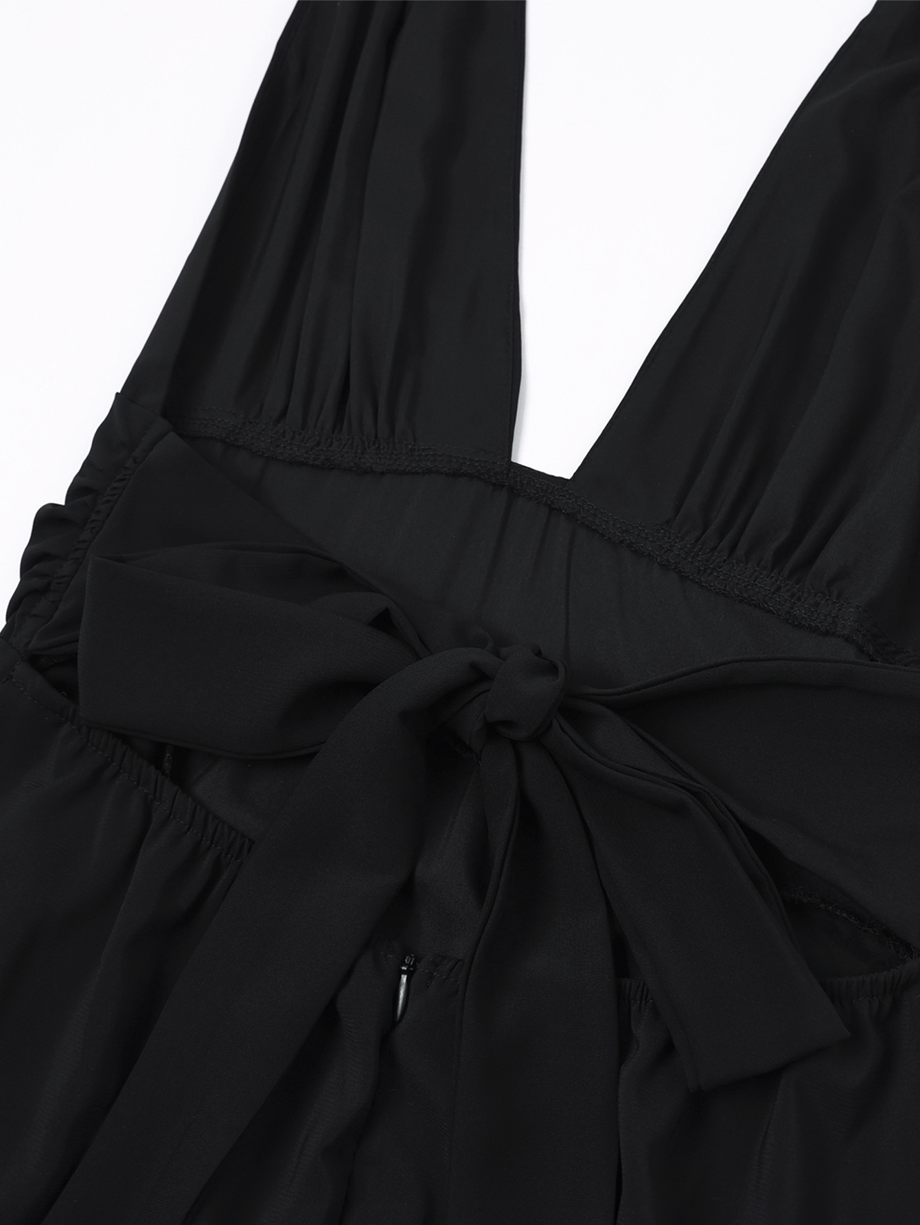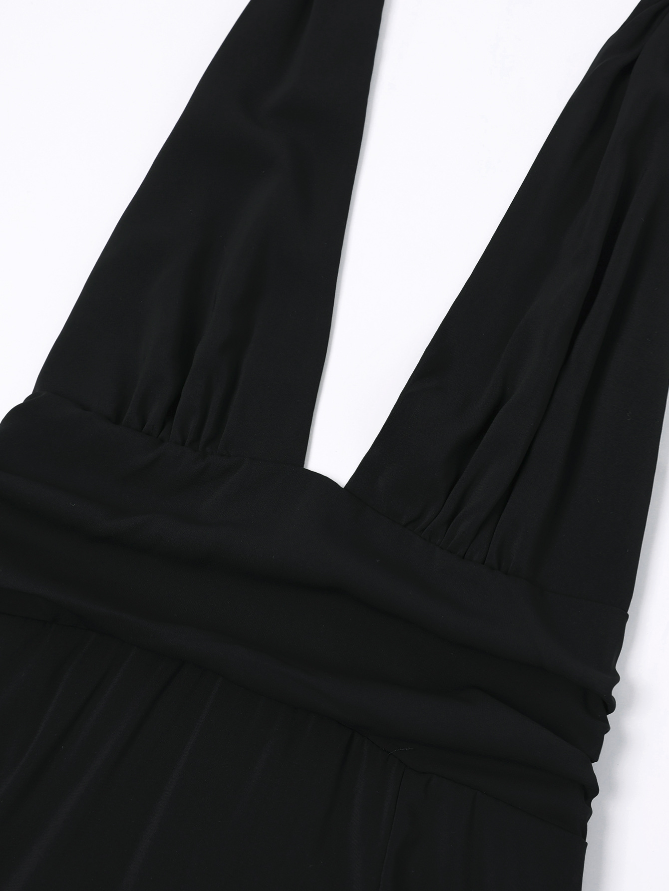 Copy| Product Name | Women Halter Neck Lace-Up Chiffon Sexy V Neck Backless Slit Maxi Dress |