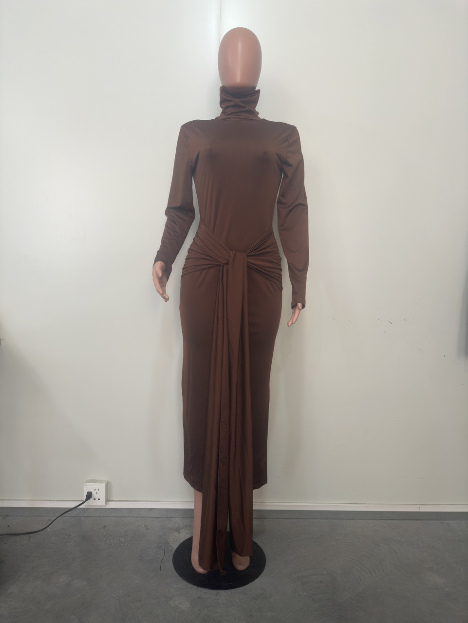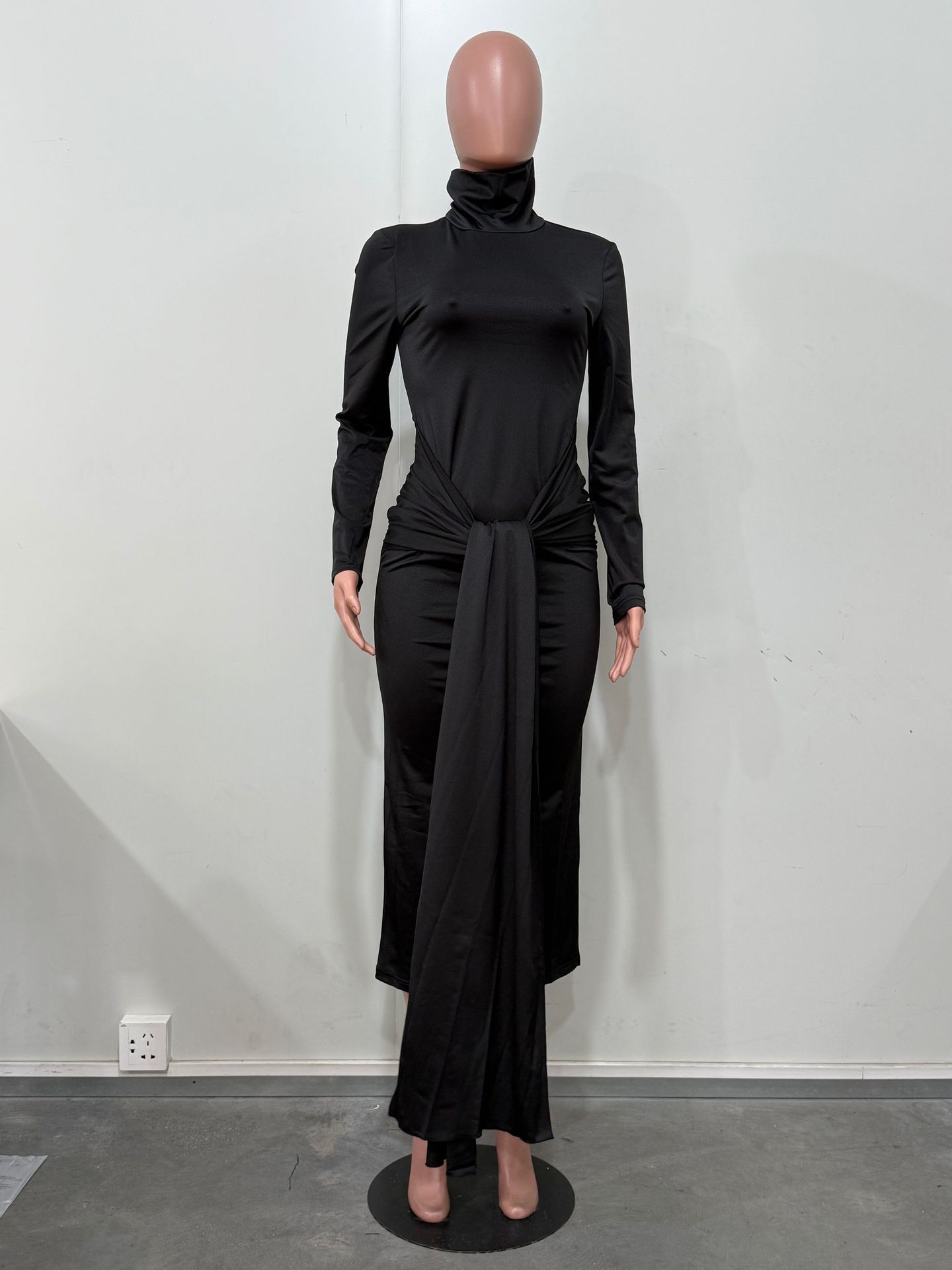 Copy| Product Name | Women High-Neck Belted Long-Sleeved Maxi Dress |