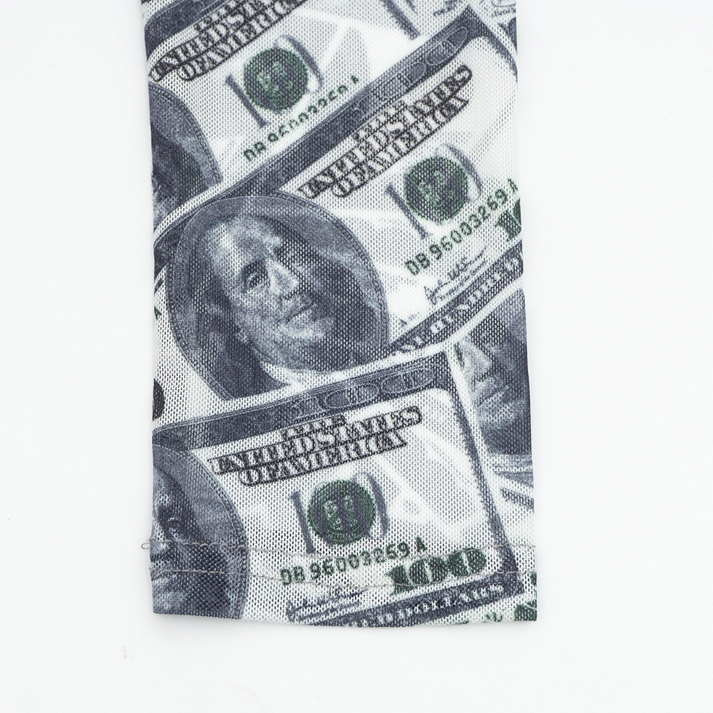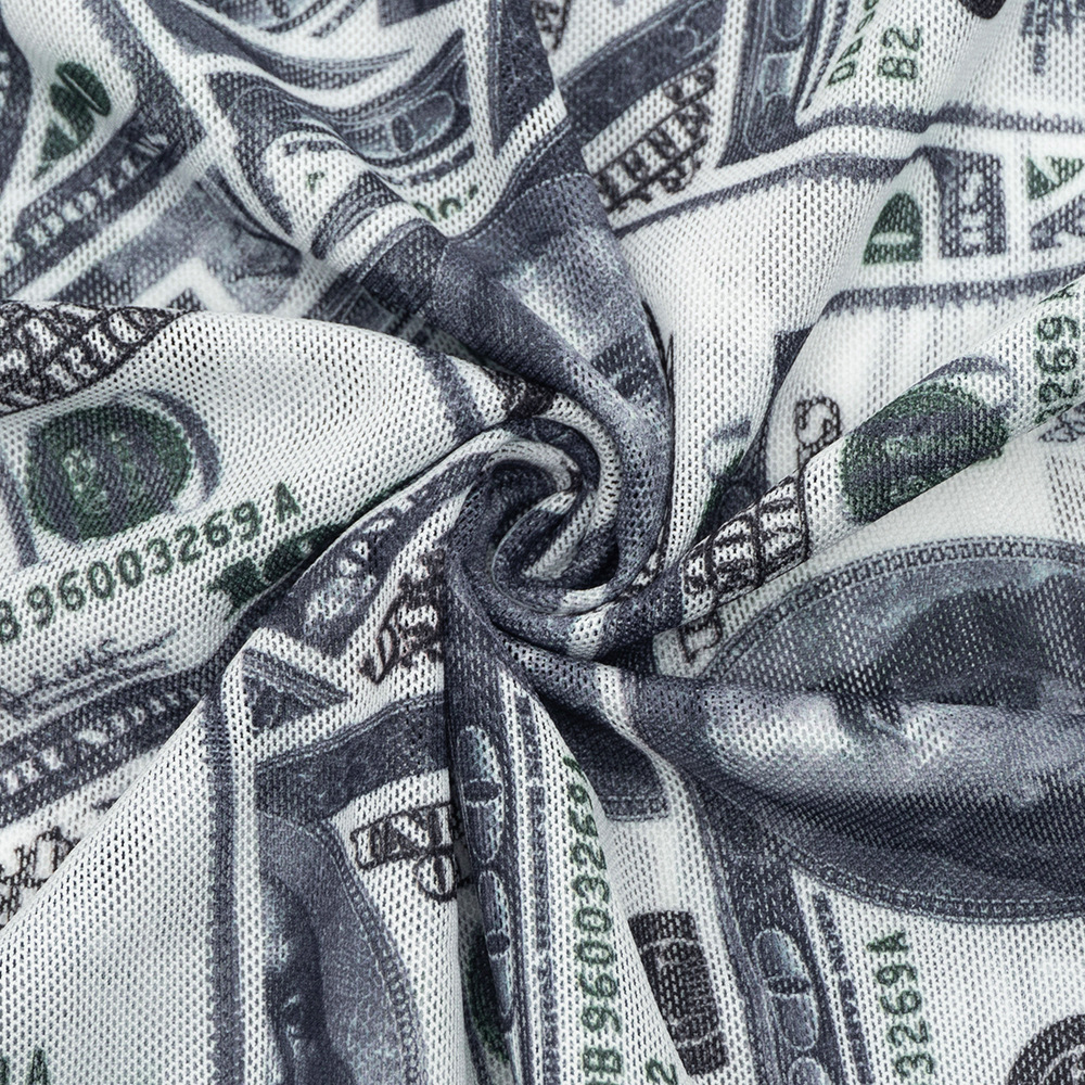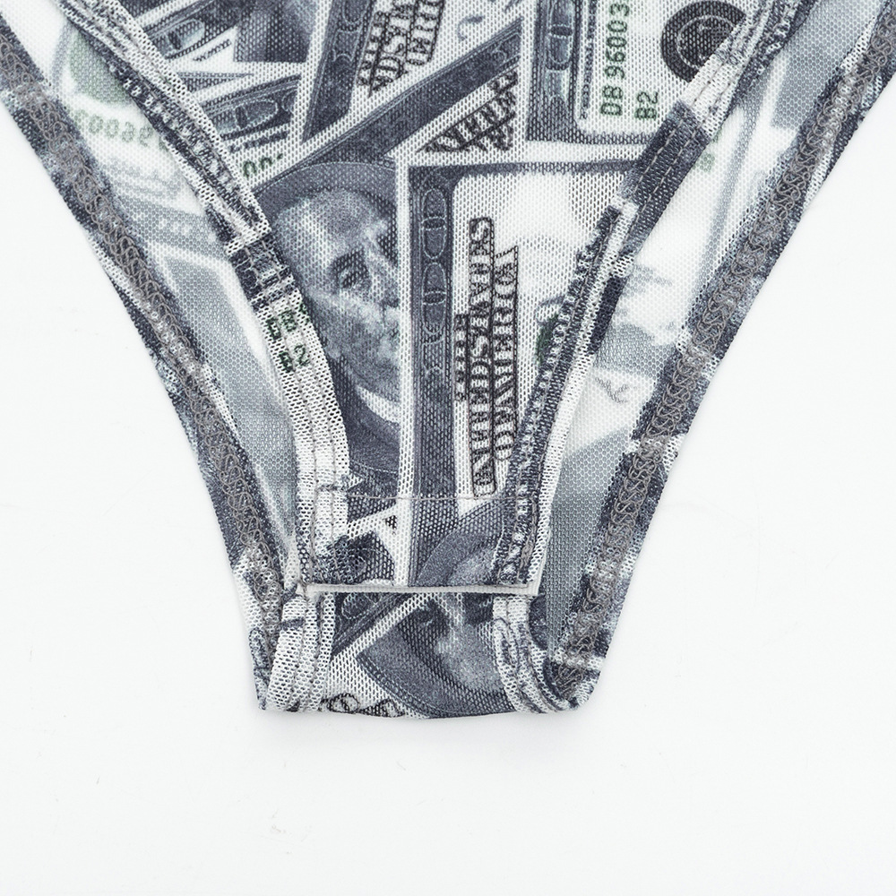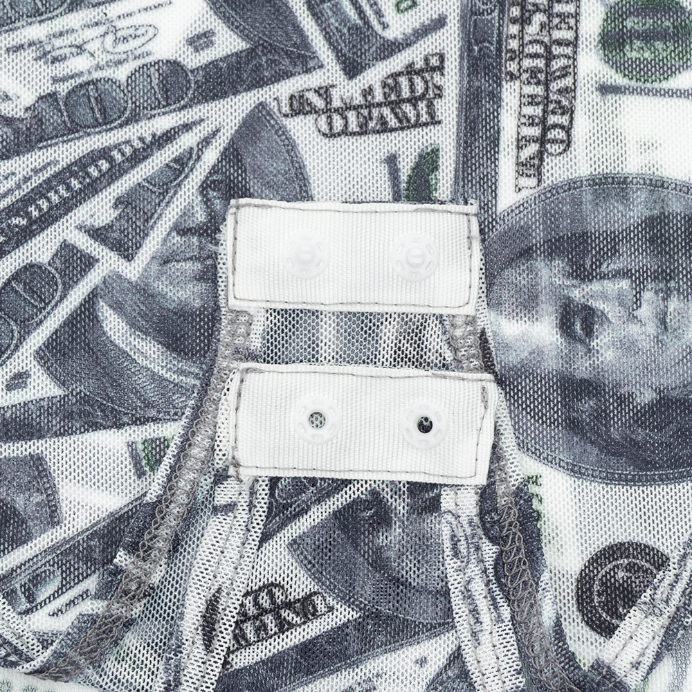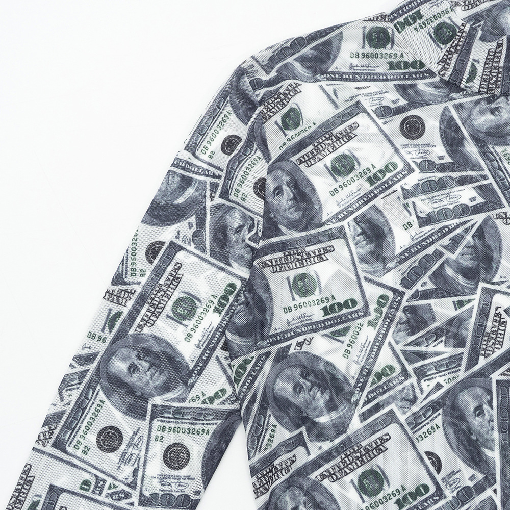 Copy| Product Name | Women High-Neck Long-Sleeve All-Over Dollar Print Mesh See-Through Bodysuit |