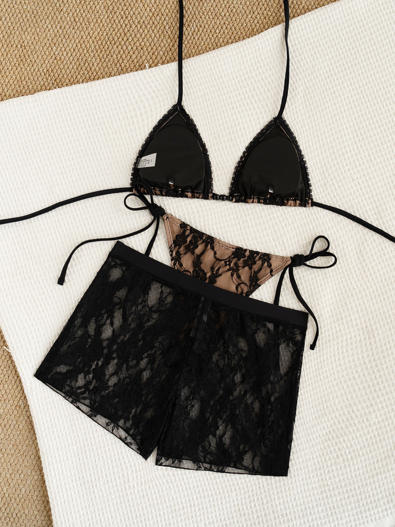 Copy| Product Name | Women Lace Shorts Tie-Waist Sexy Bikini Three-Piece Swimsuit |
