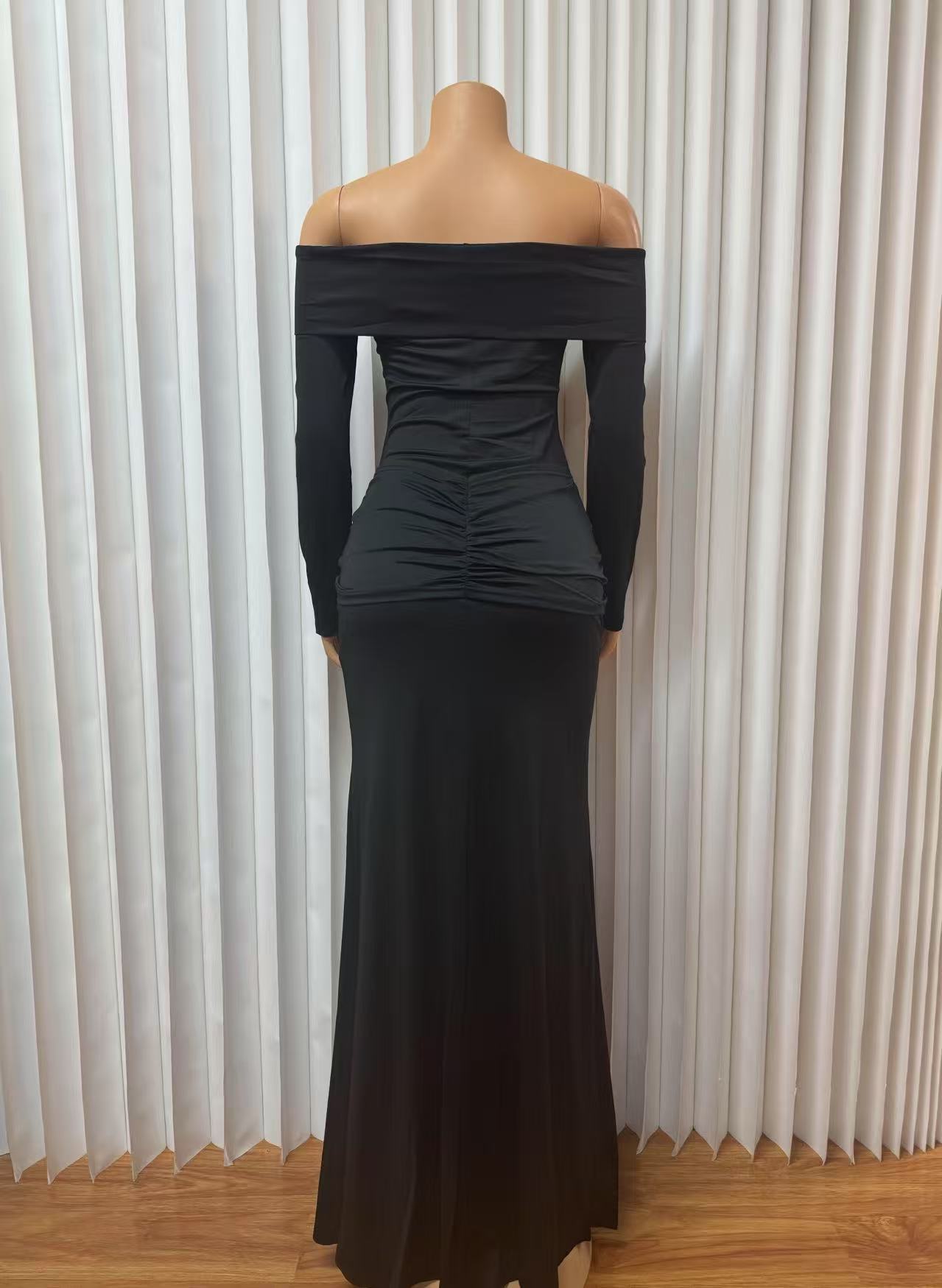 Copy| Product Name | Women Off Shoulder Solid Long Sleeve Sexy Bodycon Dress |