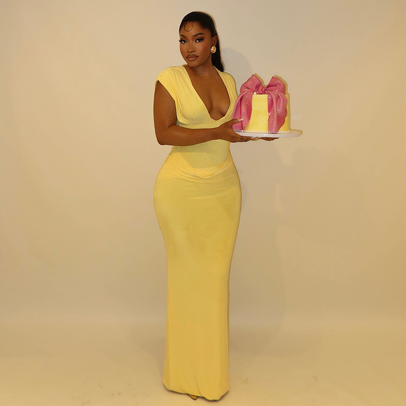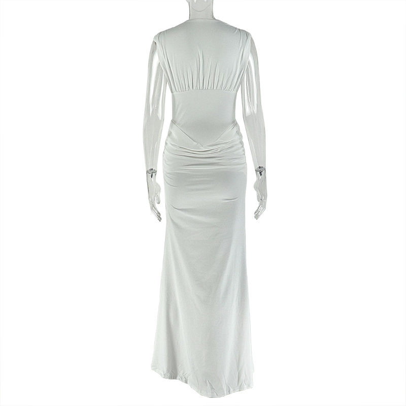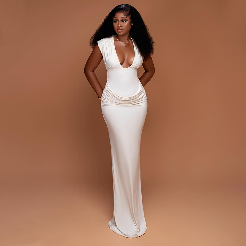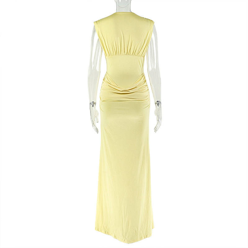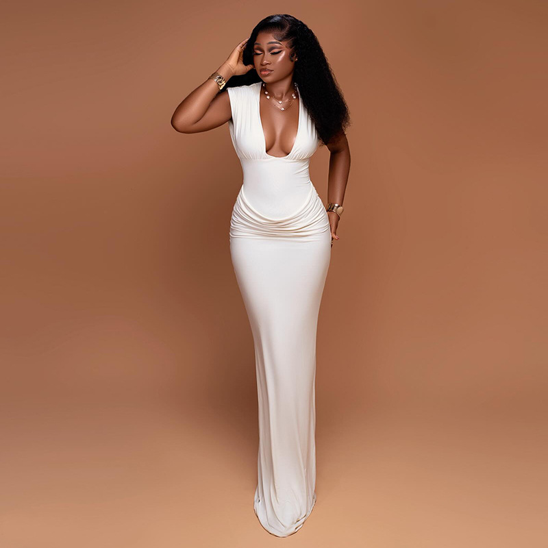 Copy| Product Name | Women Pleated Sexy V-Neck Sleeveless Bodycon Dress |