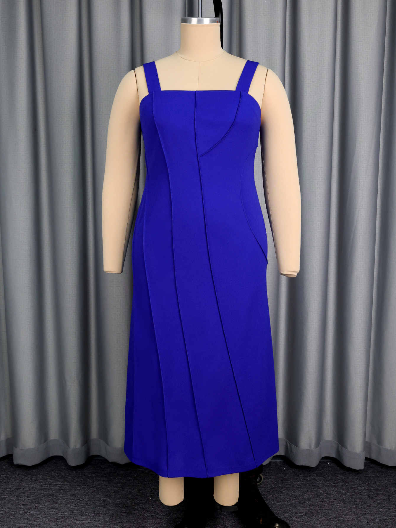 Copy| Product Name | Women Plus Size Square Neck Strap Dress with Jacket Slim-Fit Chic Career Dress |