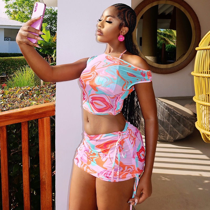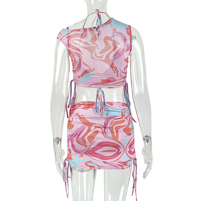 Copy| Product Name | Women Printed Holiday Slash Shoulder Crop Top Two-Piece Skirt Set |