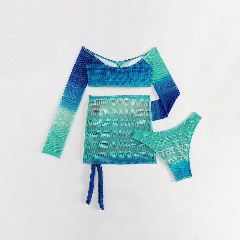 Copy| Product Name | Women Printed Mesh Long-Sleeved Beach Dress Bikini Three-Piece Swimsuit |