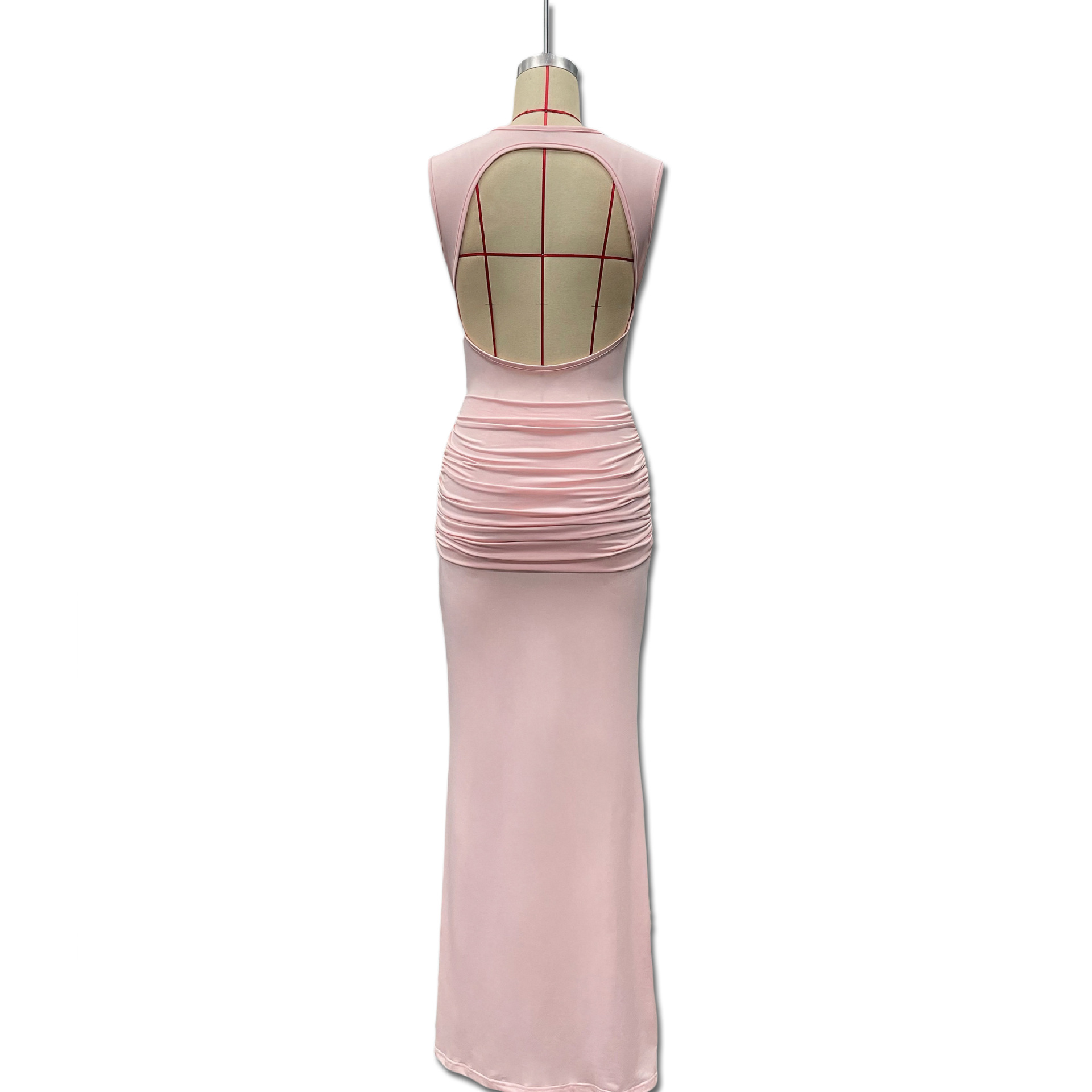 Copy| Product Name | Women Round Neck Sexy Backless Sleeveless Ribbon Bodycon Dress |
