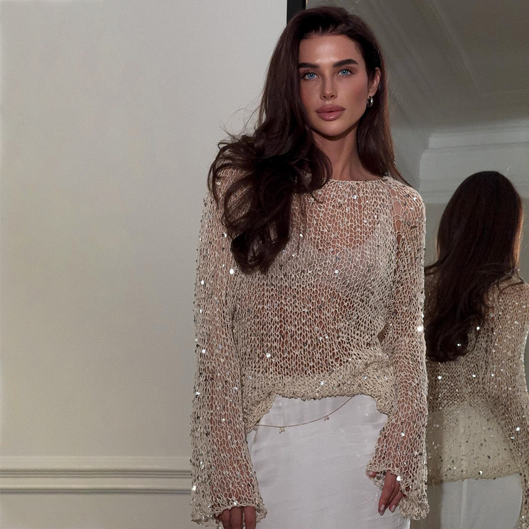 Copy| Product Name | Women Sequined Knitting Long-Sleeved Top |