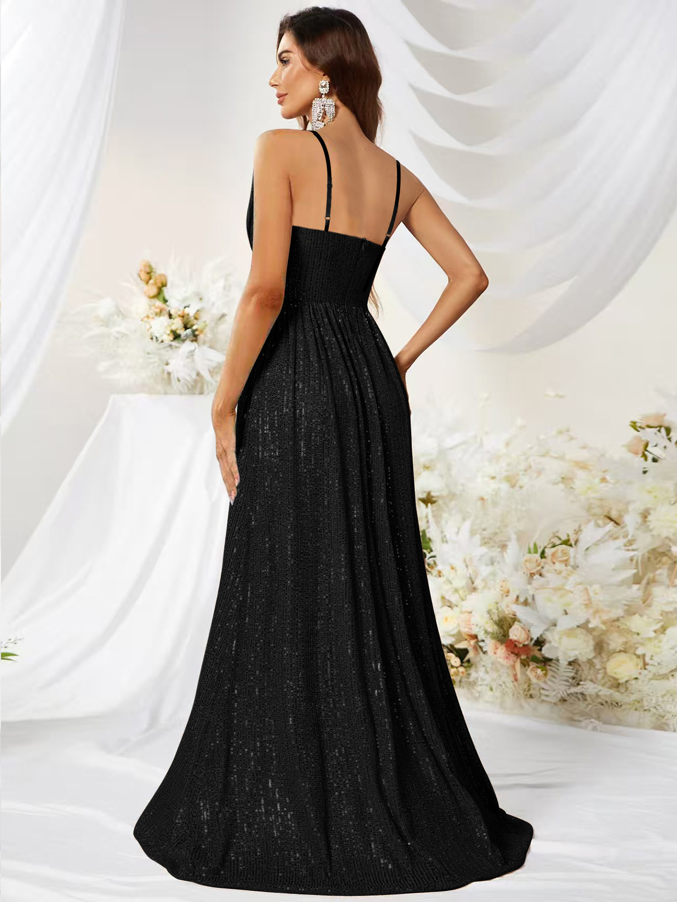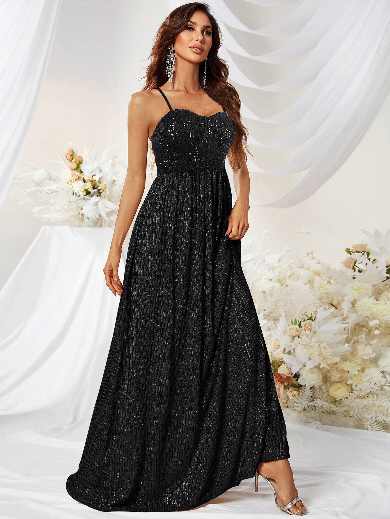 Copy| Product Name | Women Sequined Waist-cinching Backless Dresses |