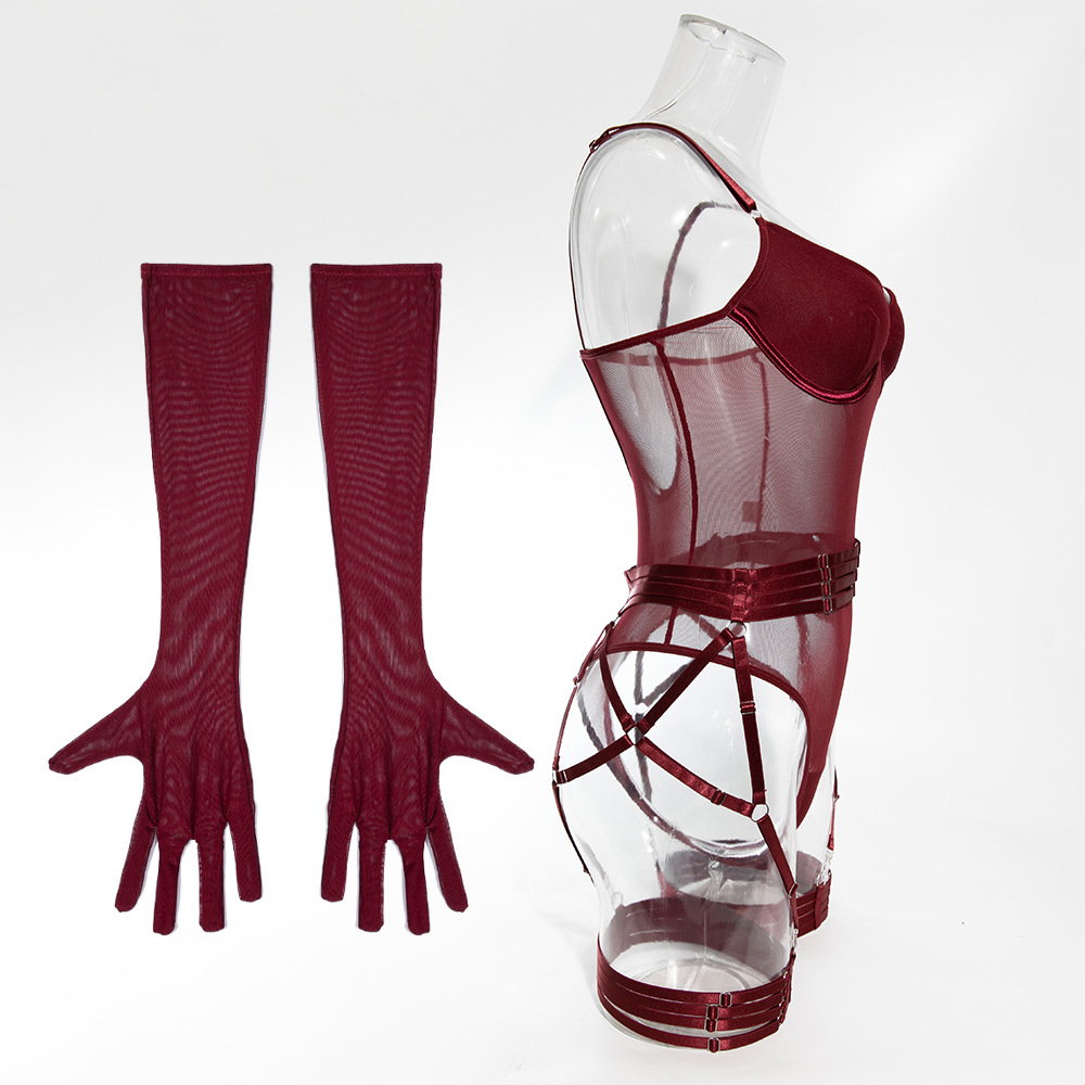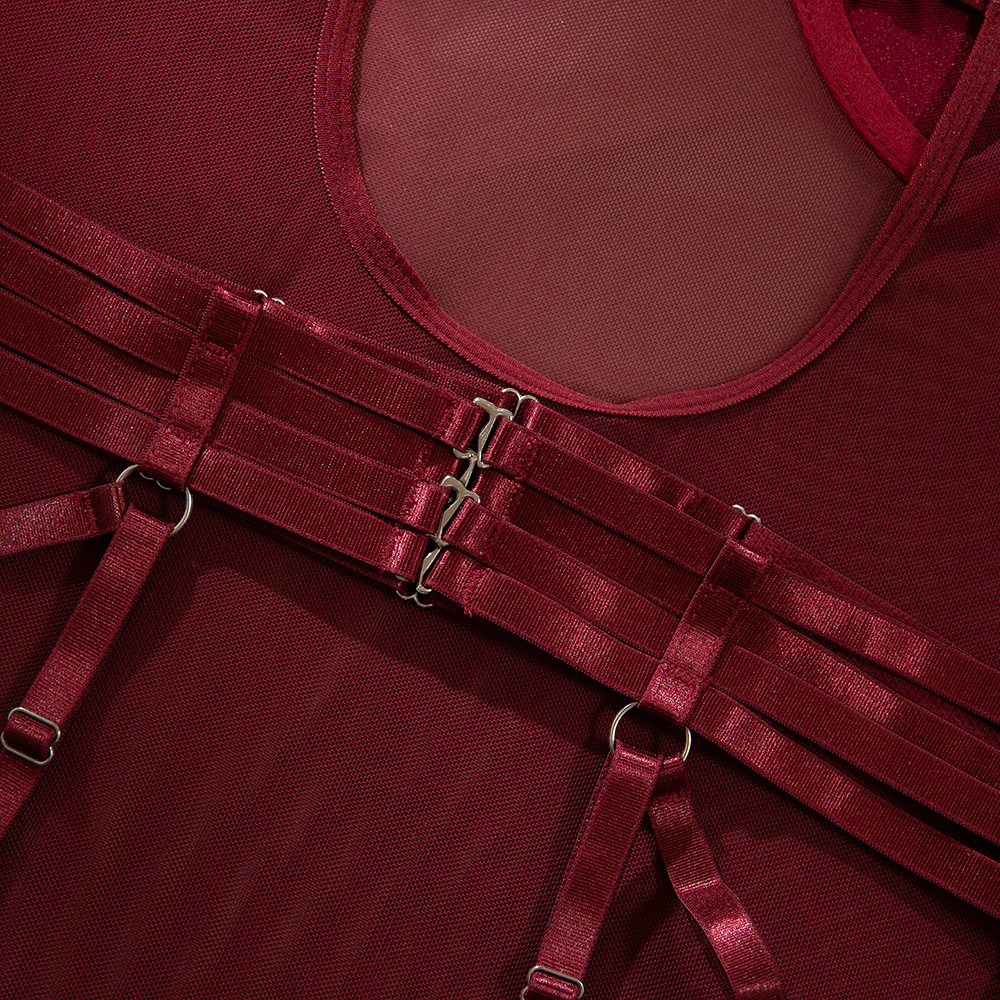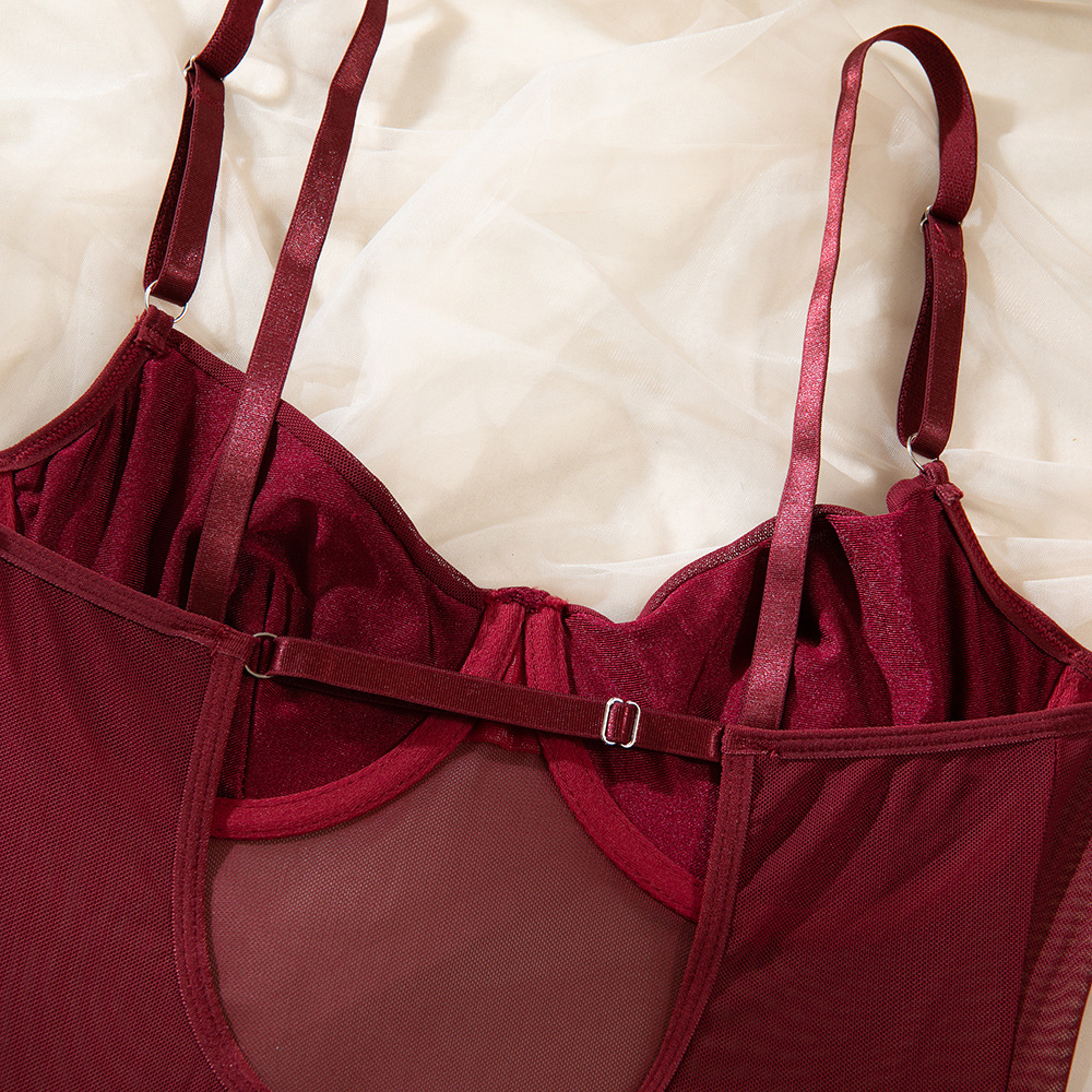 Copy| Product Name | Women Sexy Halter Leg Ring Bodysuit Mesh See-Through Underwire Lingerie |