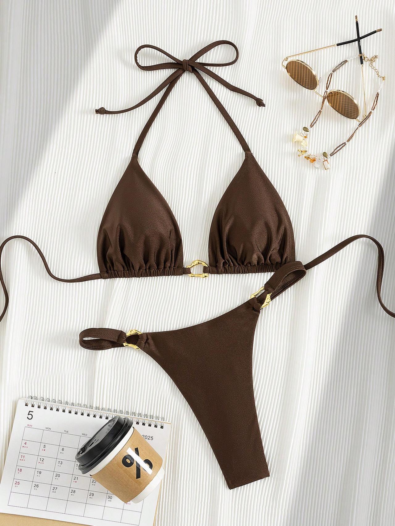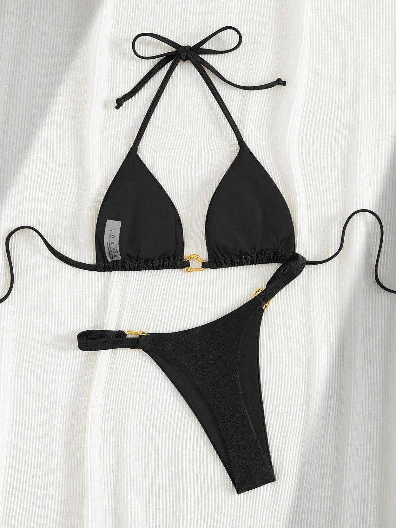 Copy| Product Name | Women Sexy Metal Buckle Bikini Swimsuit |