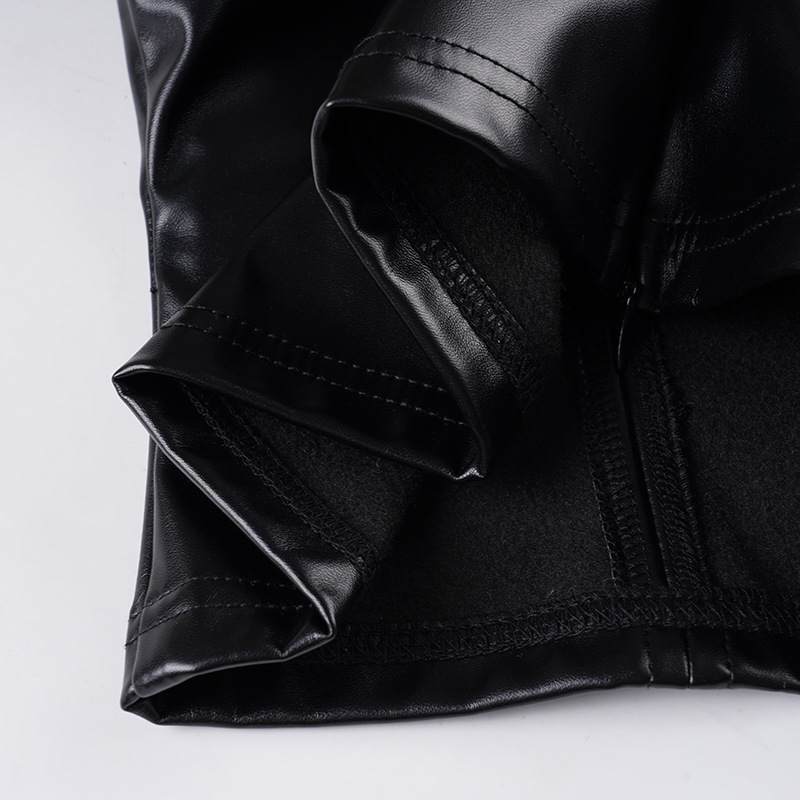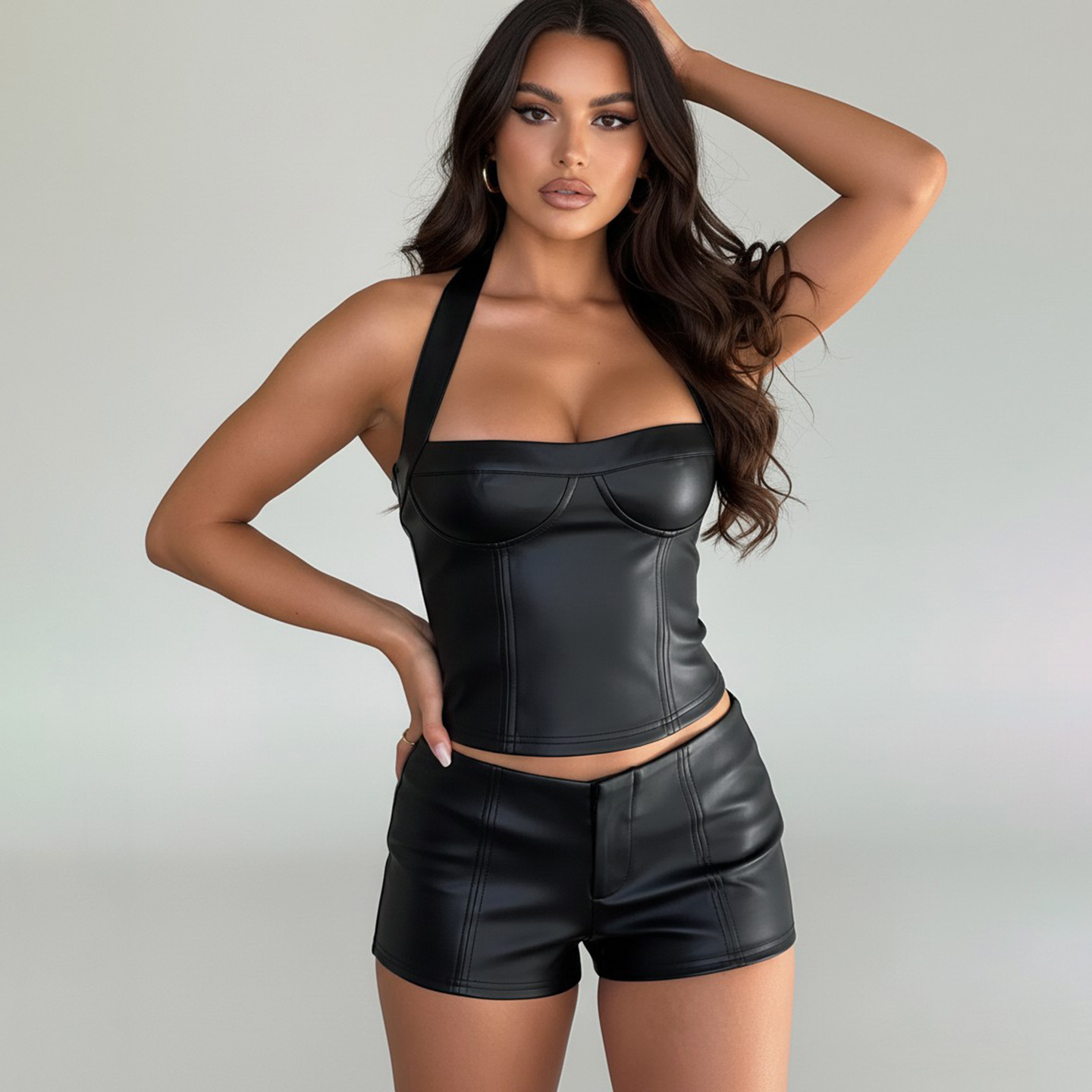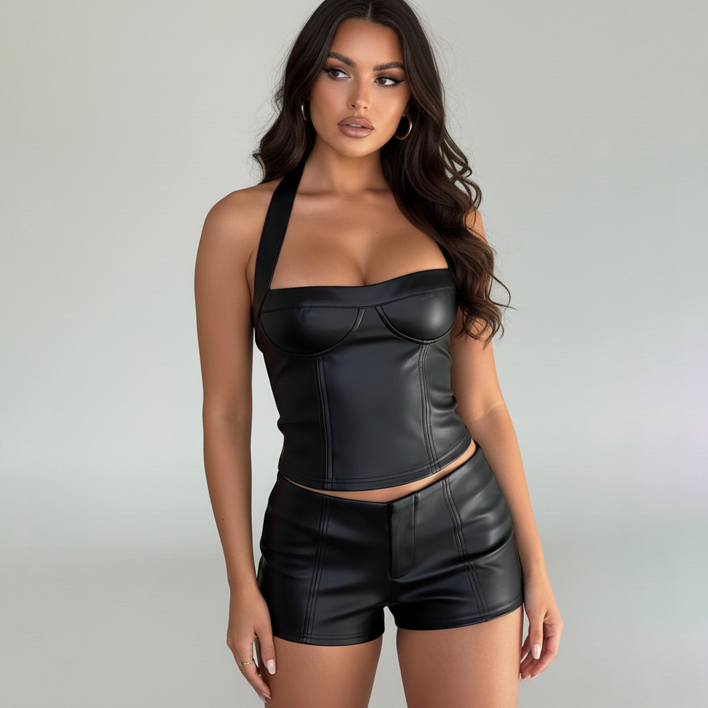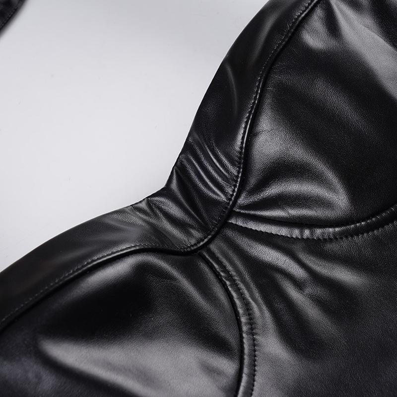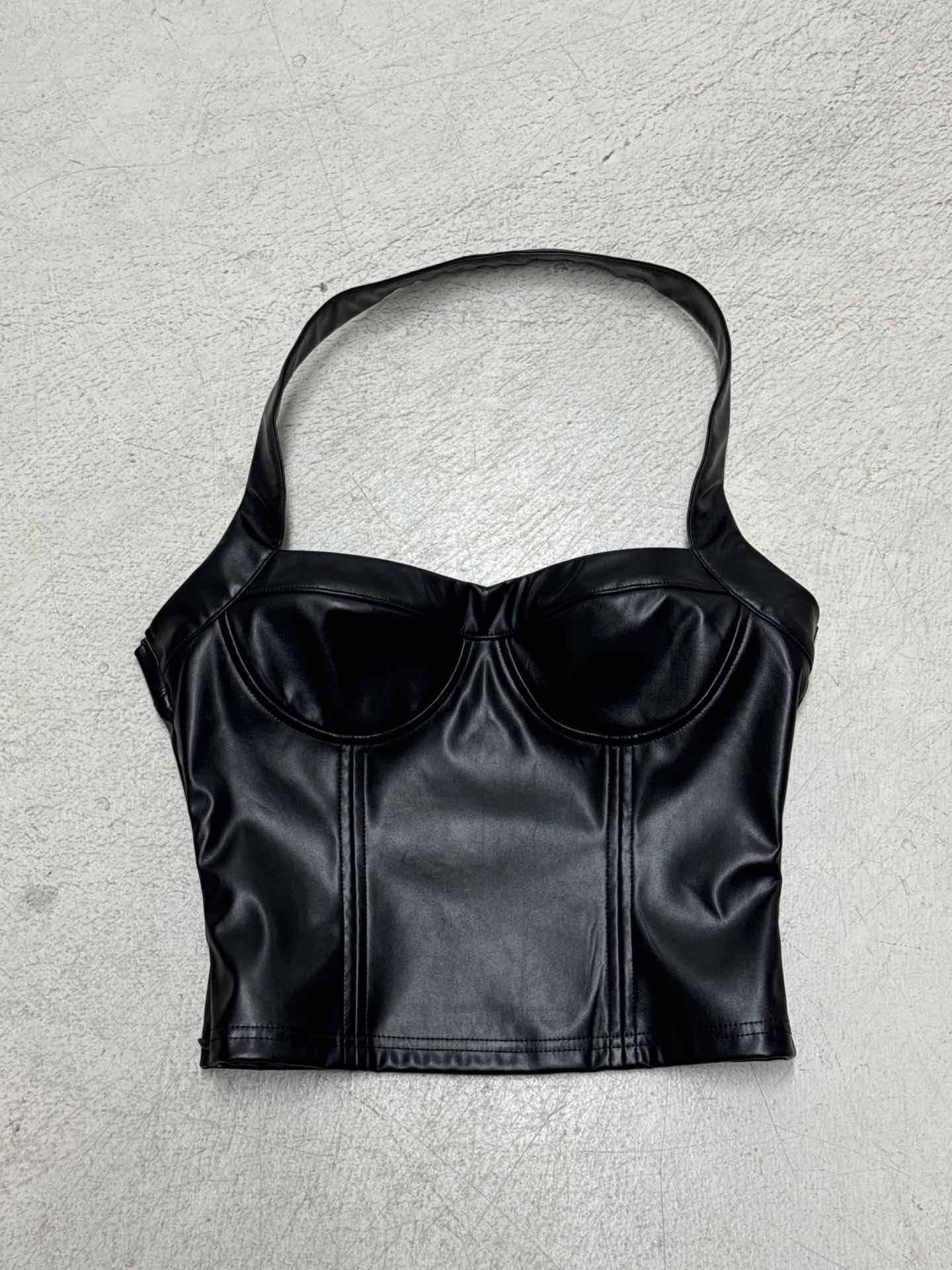 Copy| Product Name | Women Sexy Pu-Leather Solid Basics Halter Neck Top |