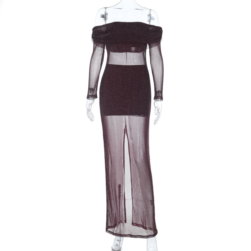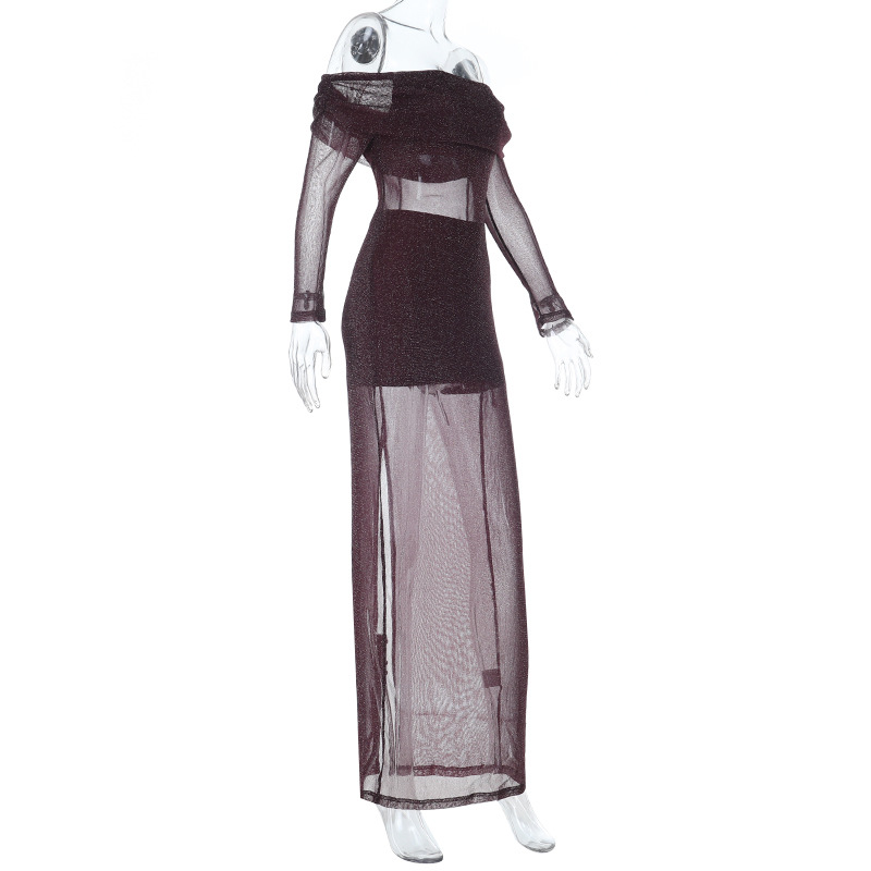 Copy| Product Name | Women Sexy See-Through Off-Shoulder Long Sleeve Autumn Bodycon Dress |