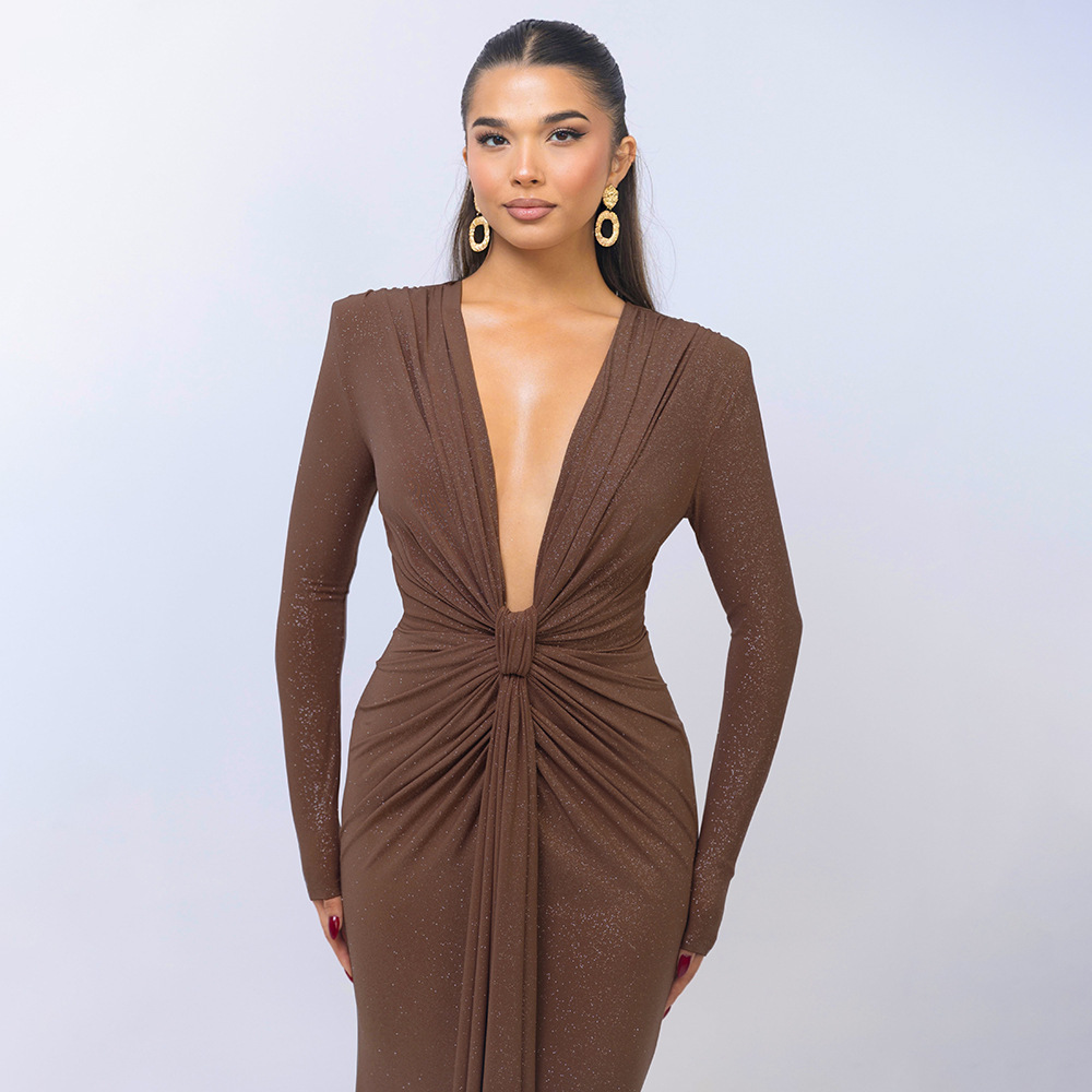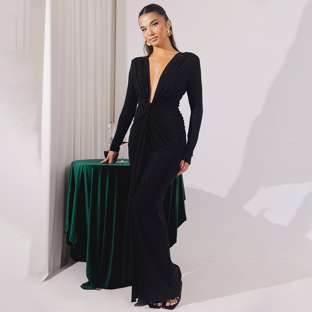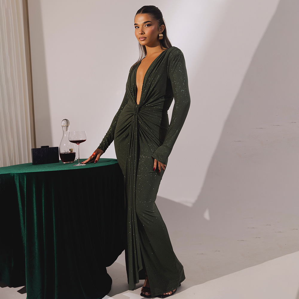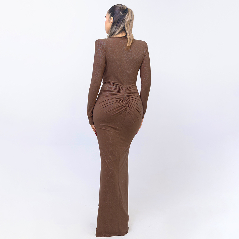 This Women Sexy v-Neck Gathered Lace-Up Long-Sleeved Bodycon Maxi Dress Design Made Of Good Quality Polyster And Spandex Material, Which Is Stretchy, Durable And Comfortable. The Long Evening Dresses And Gowns Is Always The Mainly Choice For All Kinds Of Parties, Cocktail, Prom, Events, And Dating Occasions. Evening Gowns At Global Lover Comes With Huge Selections - Sequins, Beaded, Satin, Velvet, Lace.... When You Need Wholesale Evening Dresses, Global Lover Wholesale Women Garment Online Shop Is Your One-Stop Online Shopping Choice.