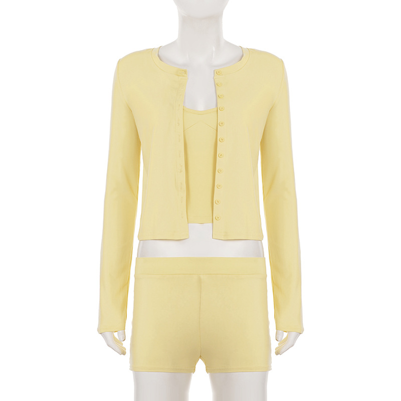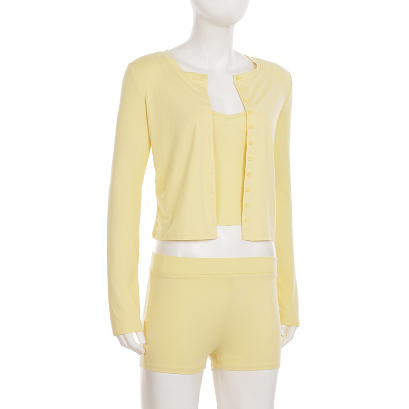 Copy| Product Name | Women Solid Casual American-Style Sweatpants and Shorts Three-Piece Set |