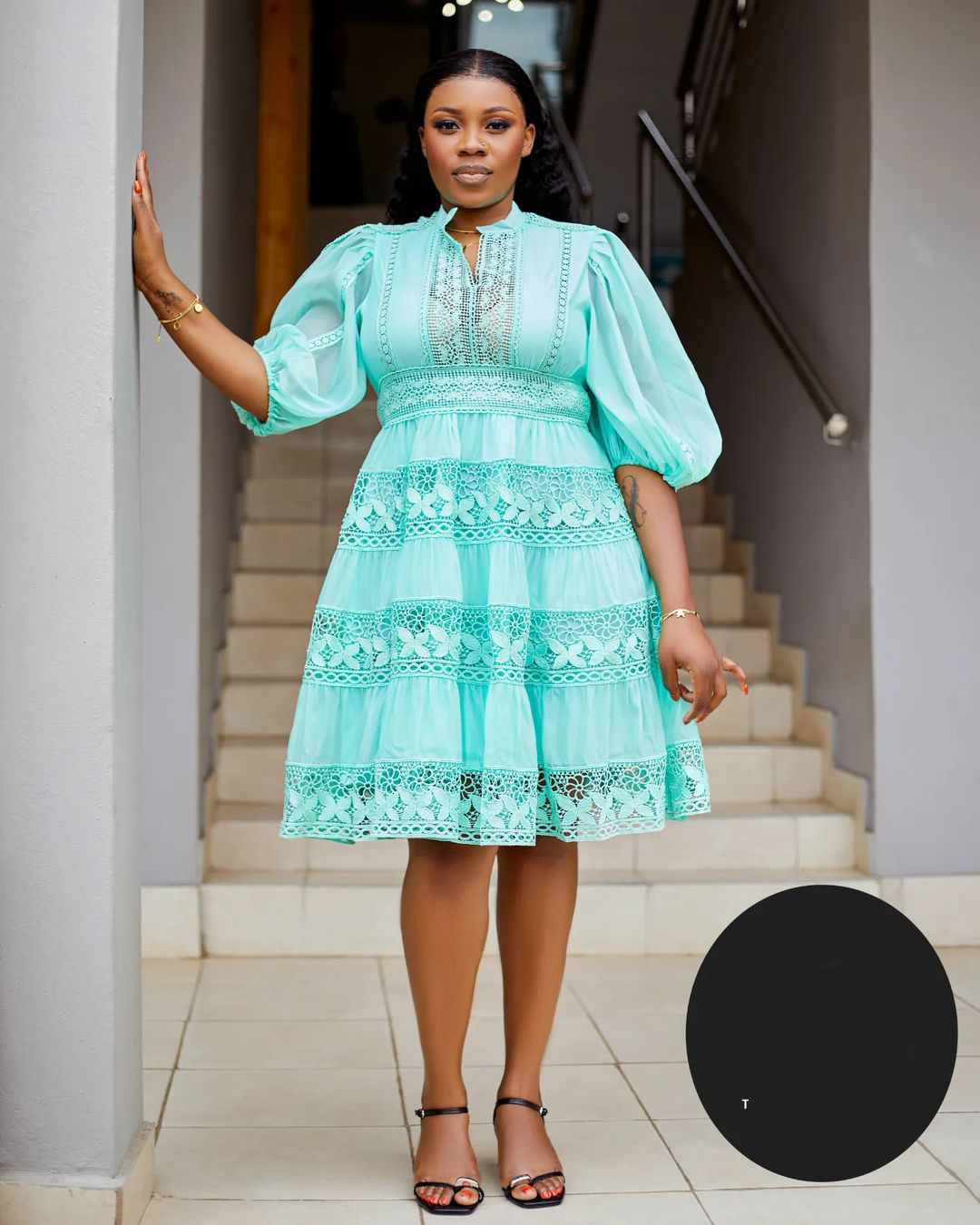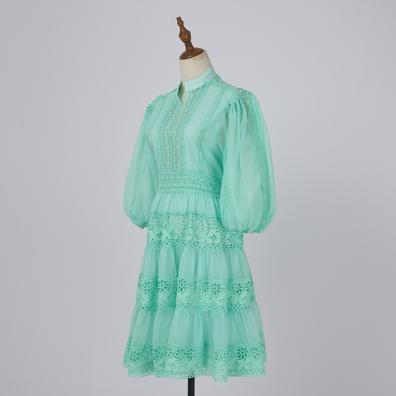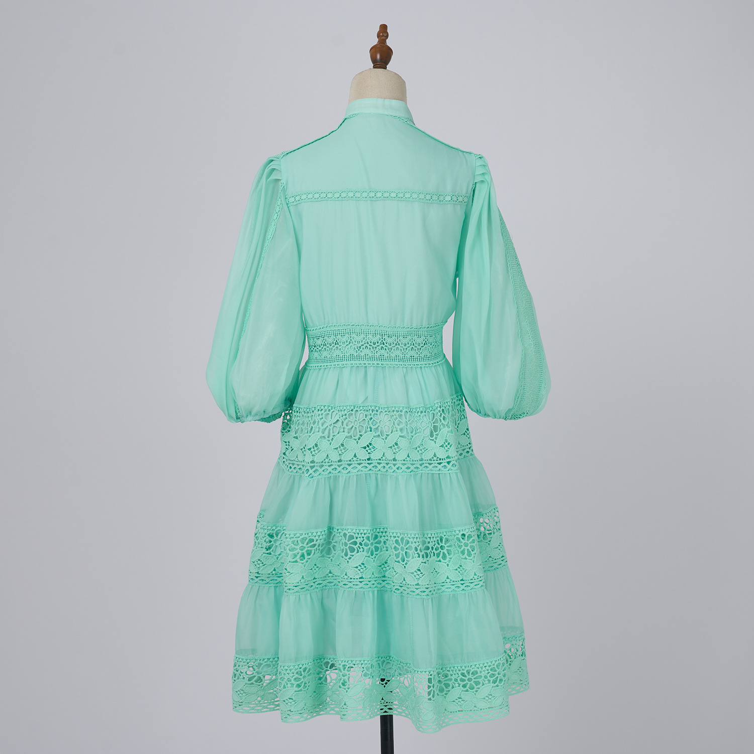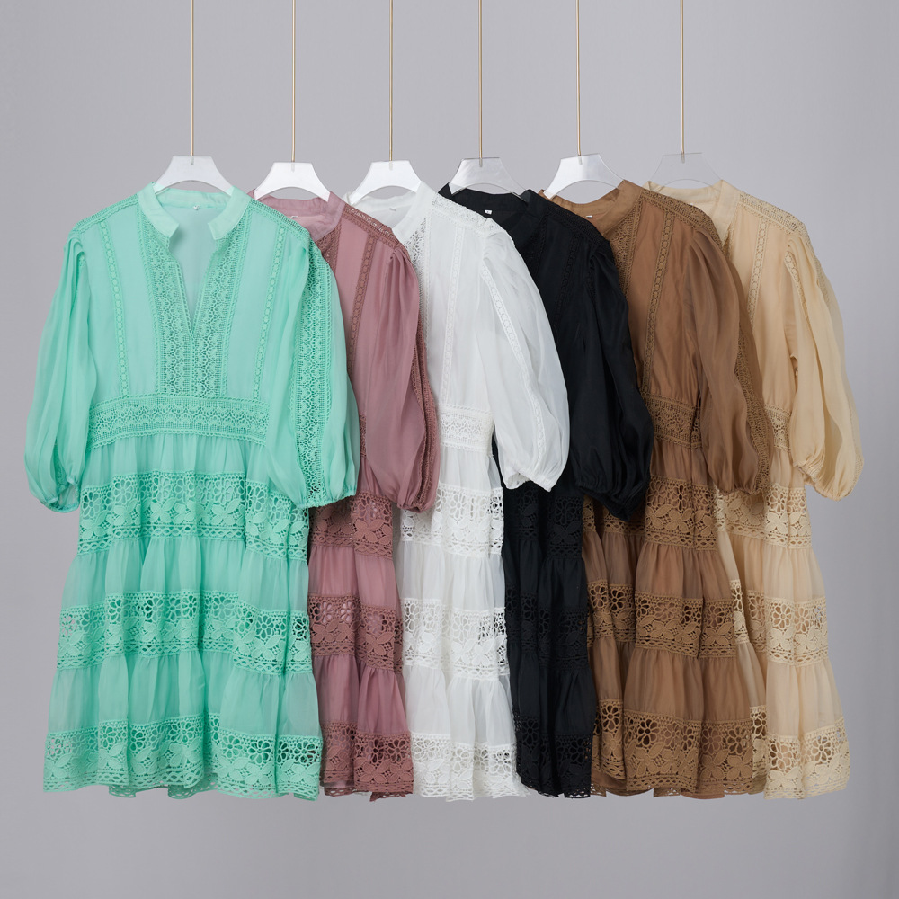 Copy| Product Name | Women Solid Half-Sleeve Lantern Sleeve Patchwork Dress |