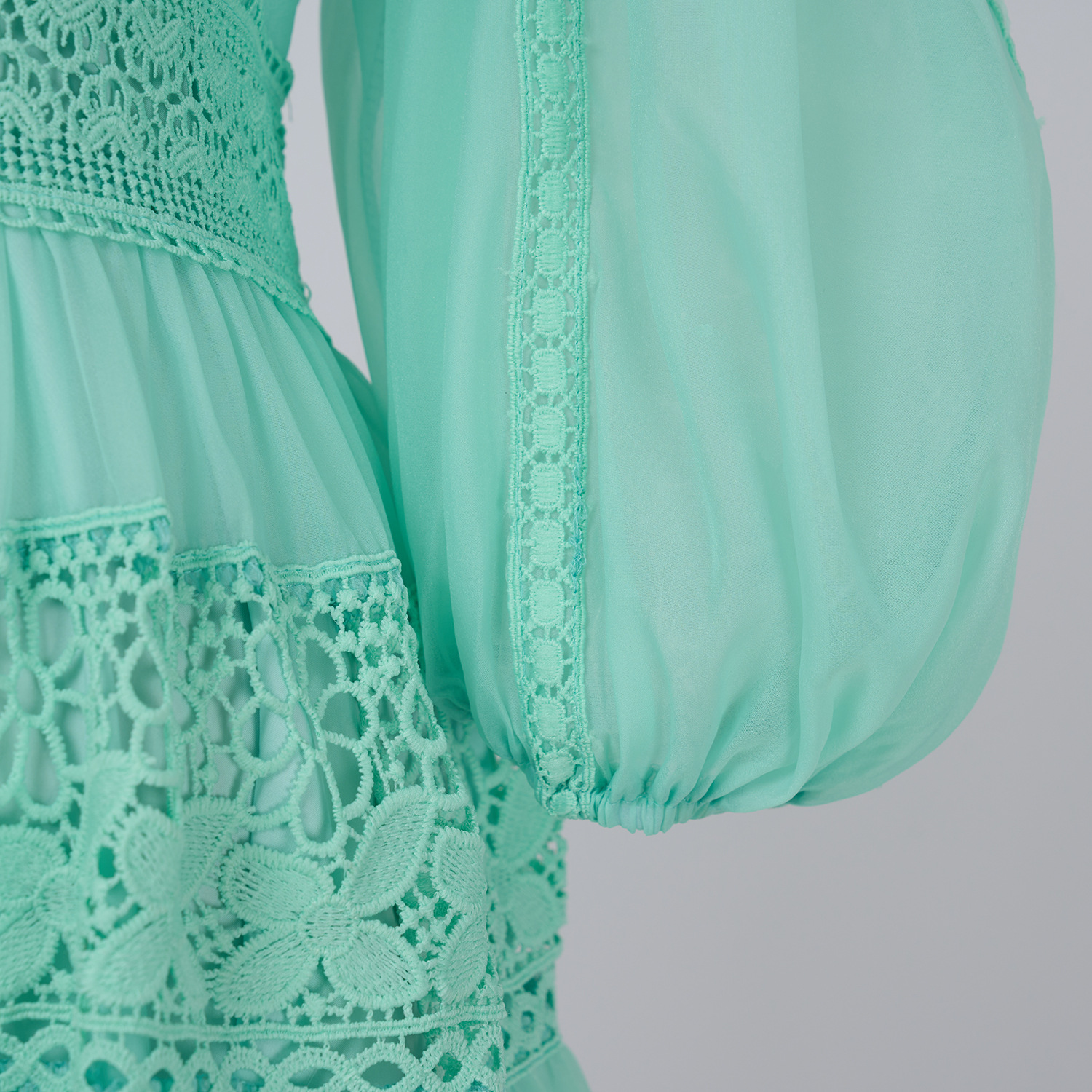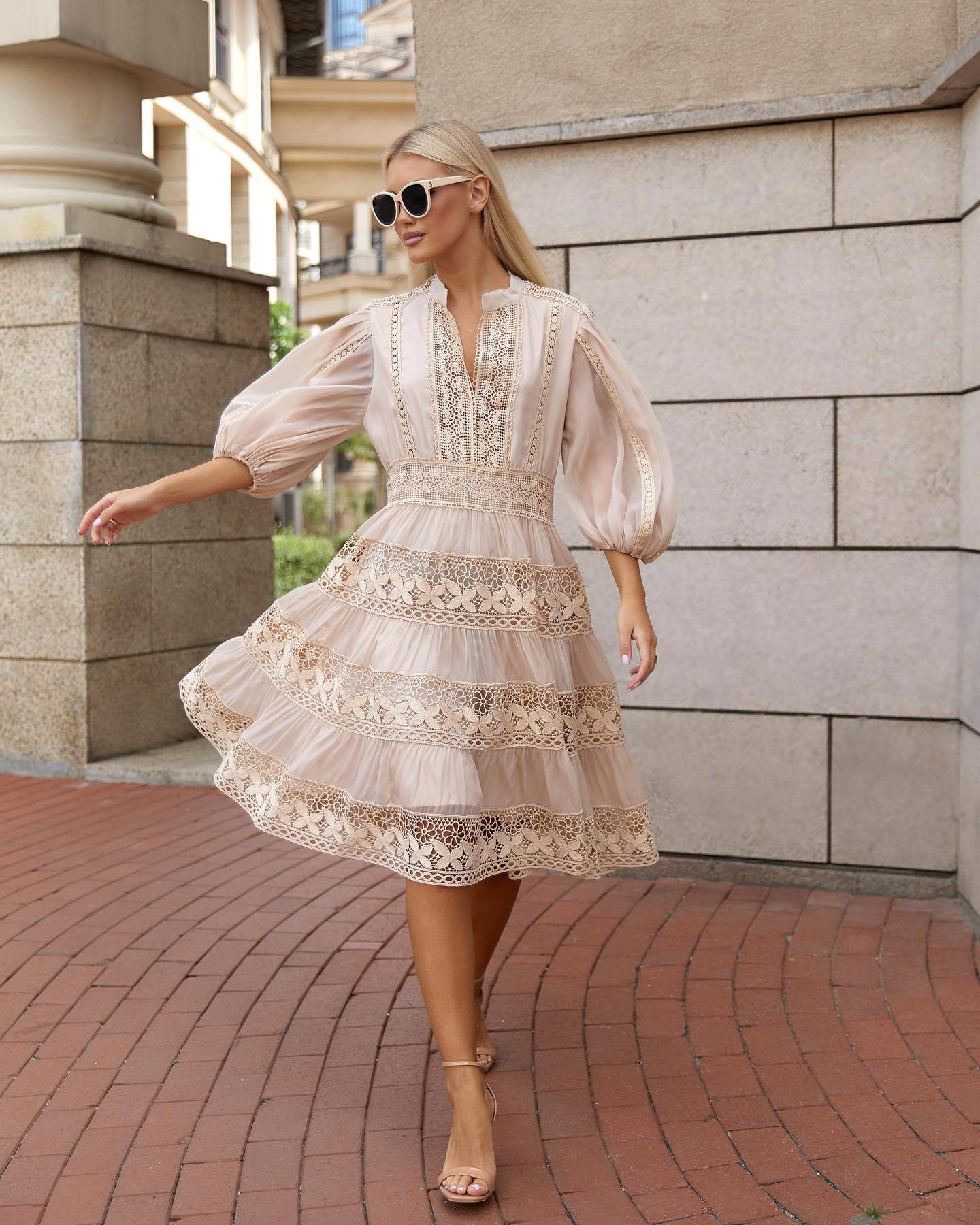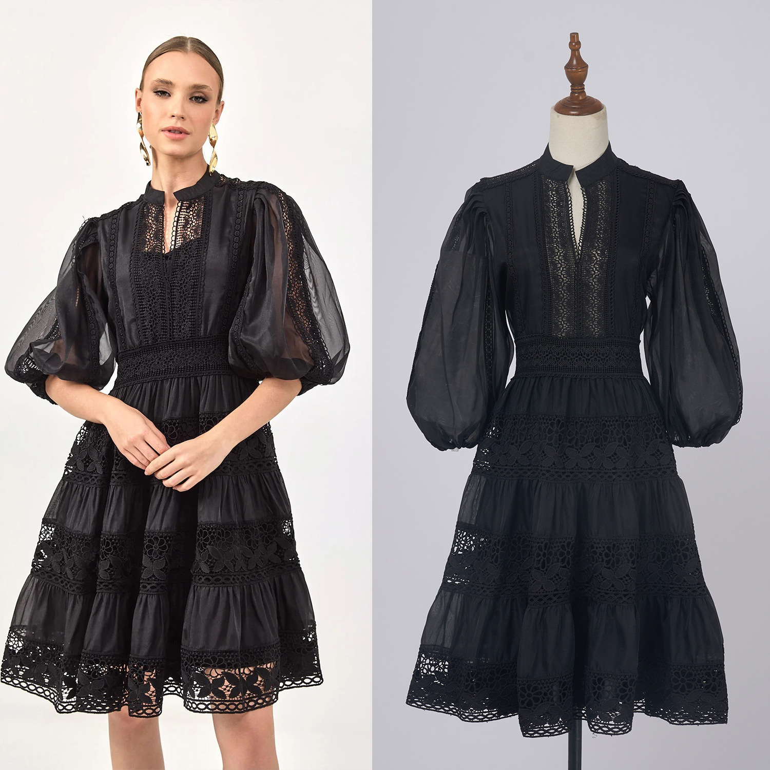 Copy| Product Name | Women Solid Half-Sleeve Lantern Sleeve Patchwork Dress |